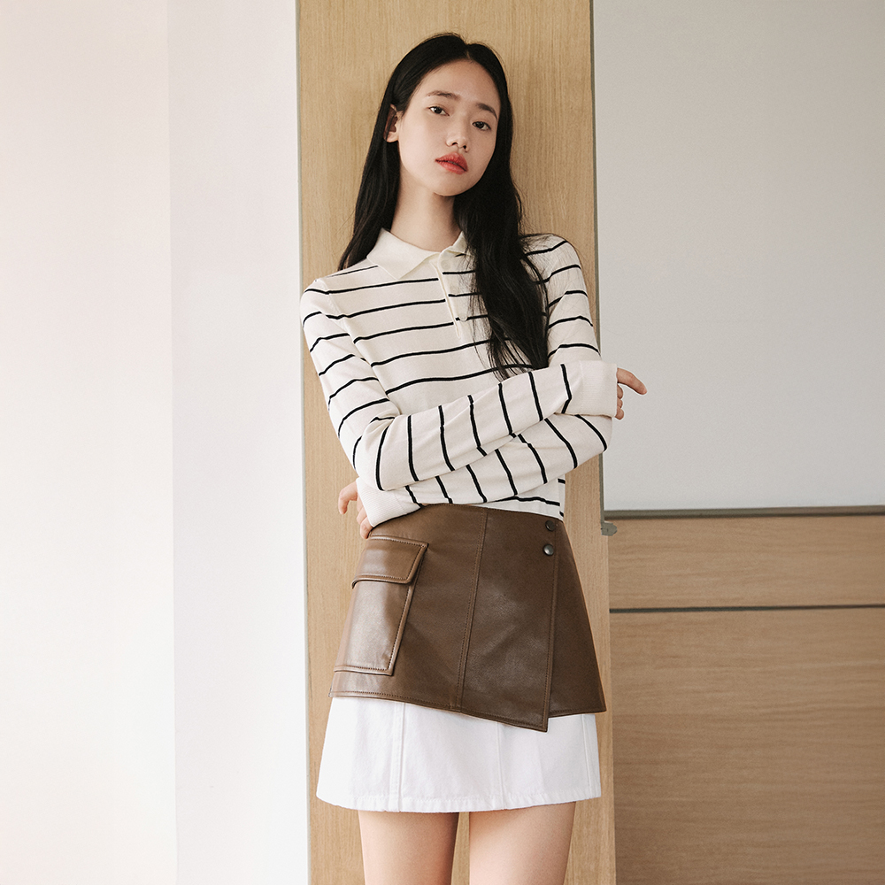 Synthetic Leather Layered Skirt [Brown]