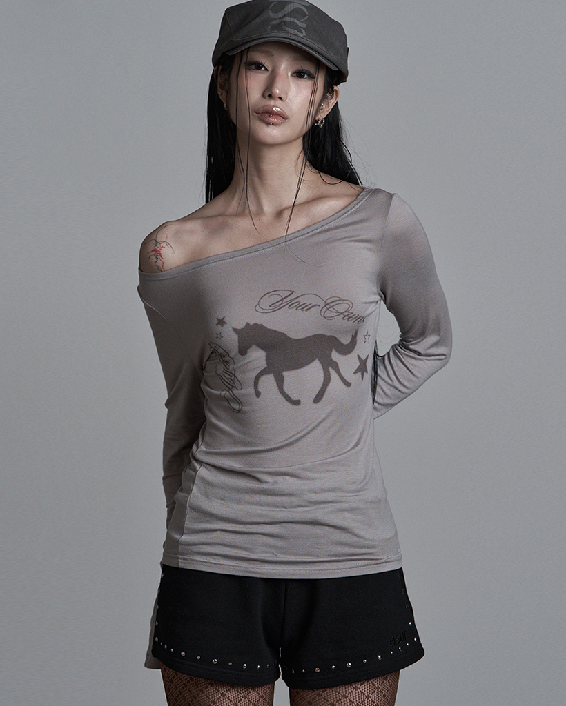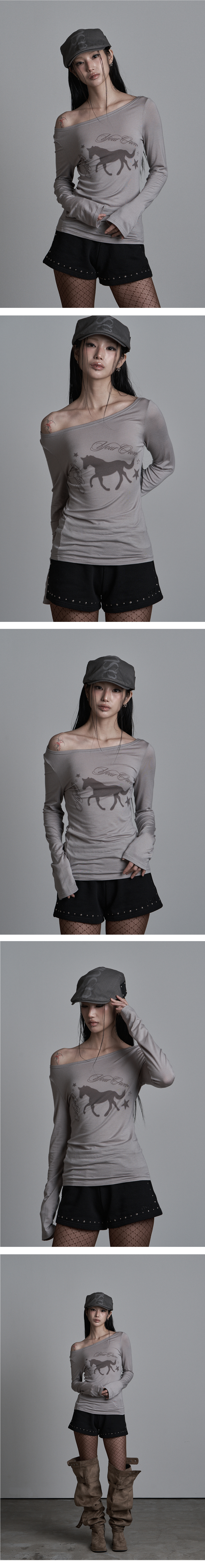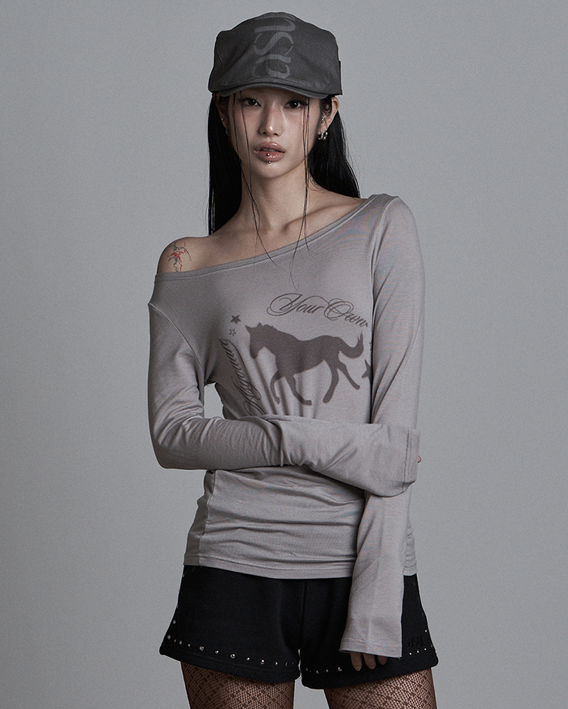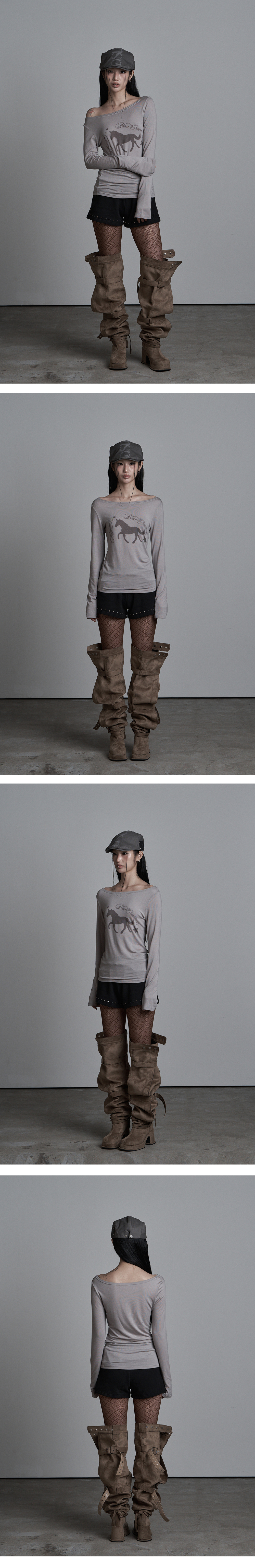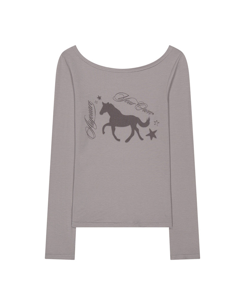 HORSE BOAT NECK LONG SLEEVE DARK GREY