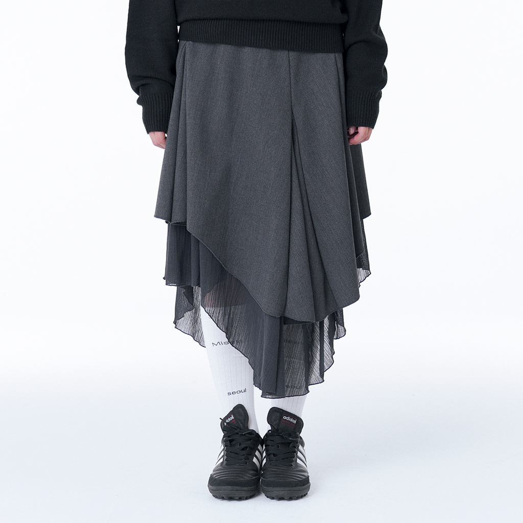Unbalanced layered skirt CHARCOAL