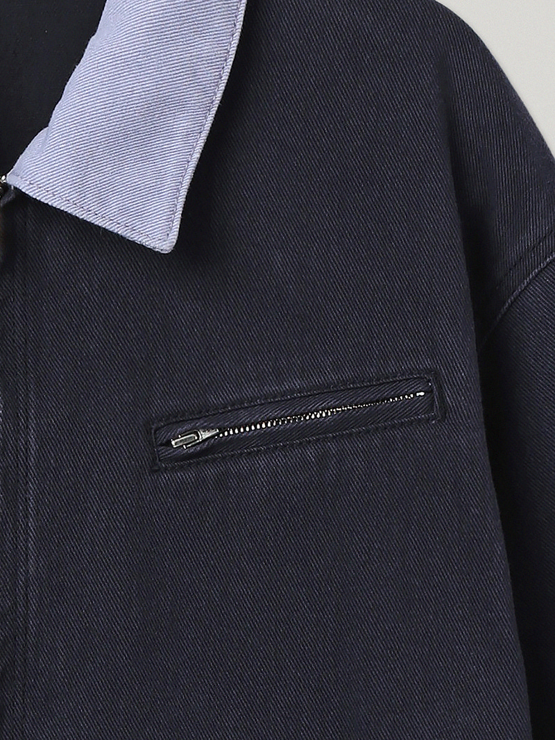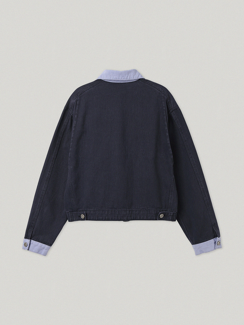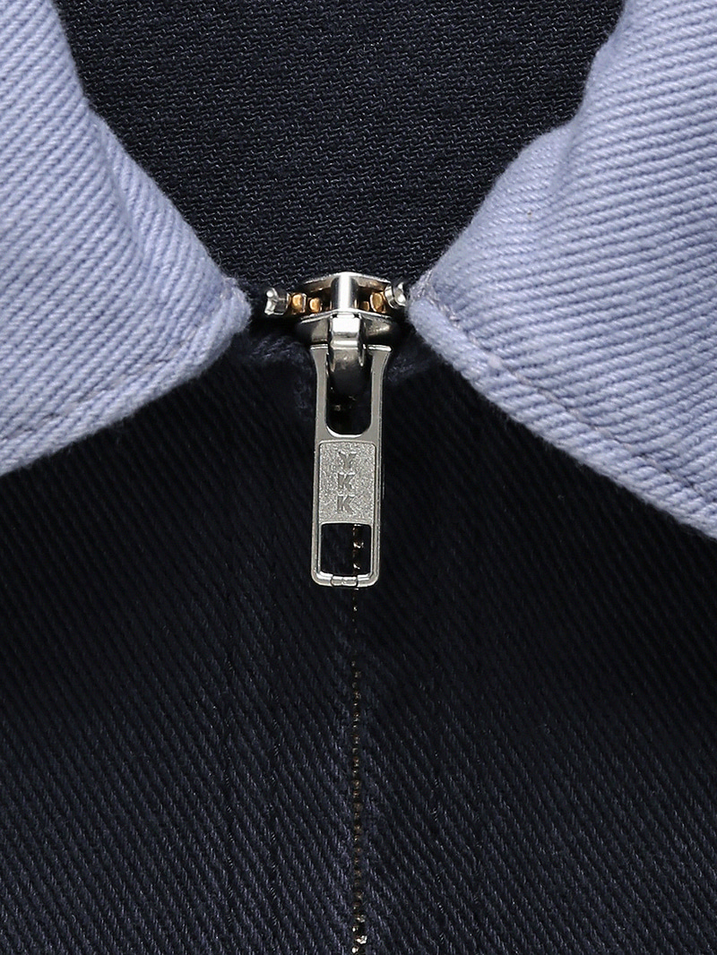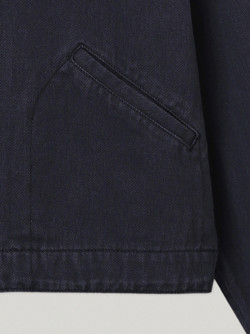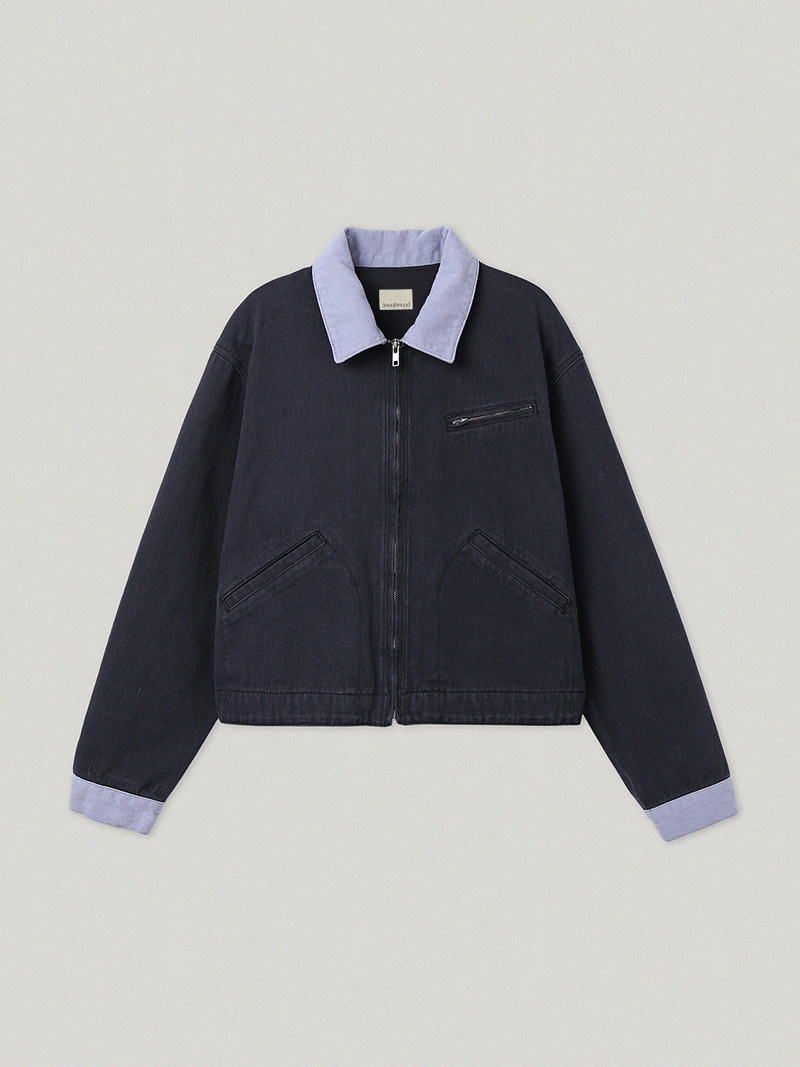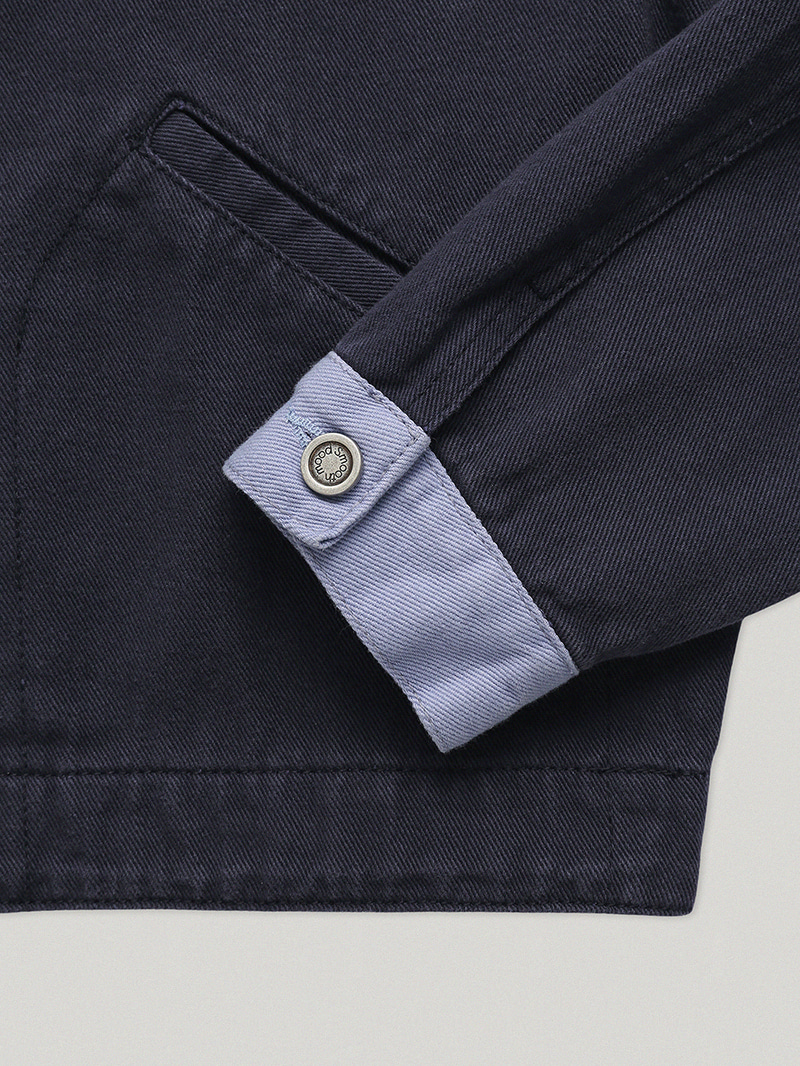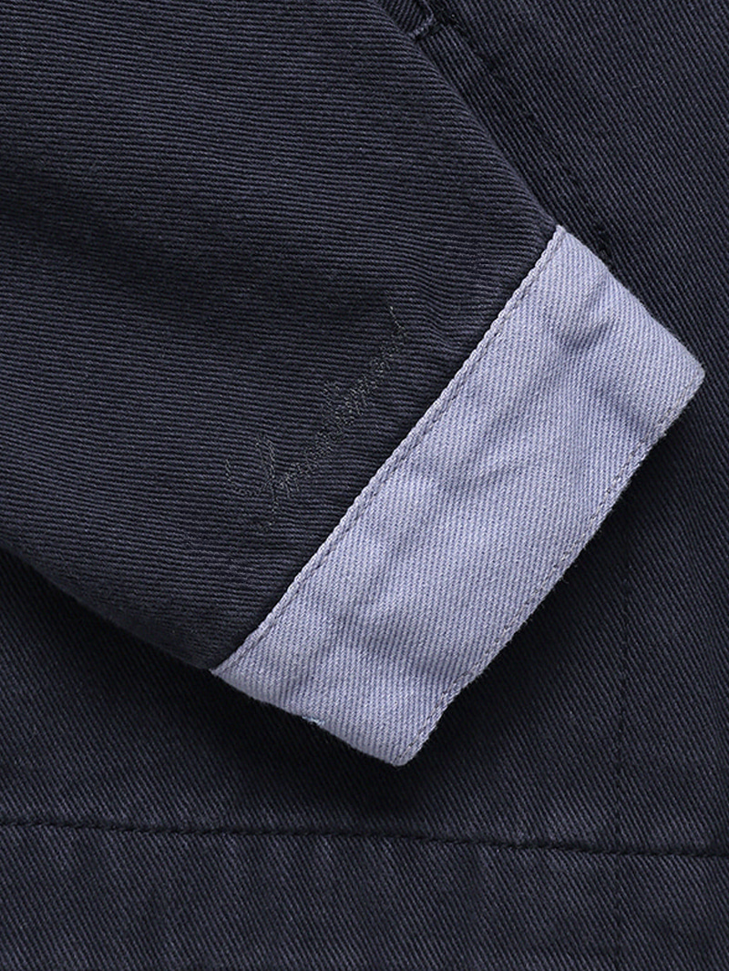 ワークウェアの構築的なムードを素朴に落とし込んだネイビー テイクス ワークジャケットです。奥行きのある色味と感覚的な配色ディテールが目を引く...ナチュラルなネイビートーンのベースに、ほのかなラベンダーブルートーンの配色カラー&カフスを加え、奥行きのある感覚的なカラーコントラストが特徴です。Navy Takes Work Pants とセットアップで着用しても素敵です。トレンドを超えるワークジャケットの魅力を楽しんでください