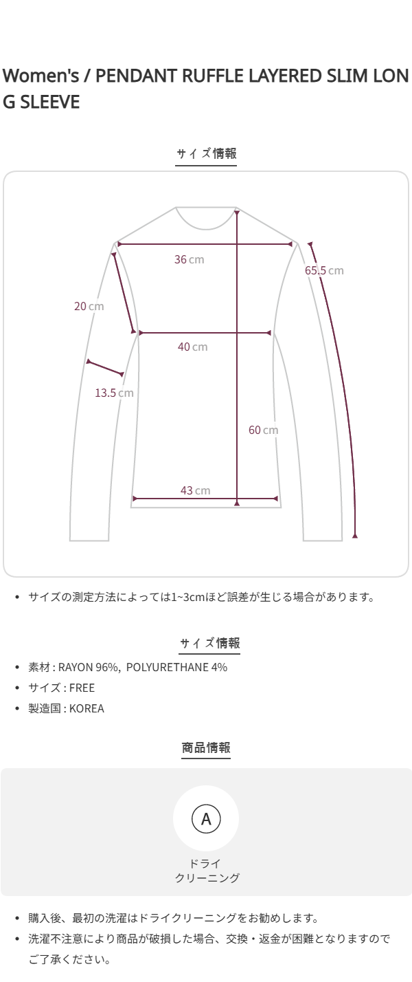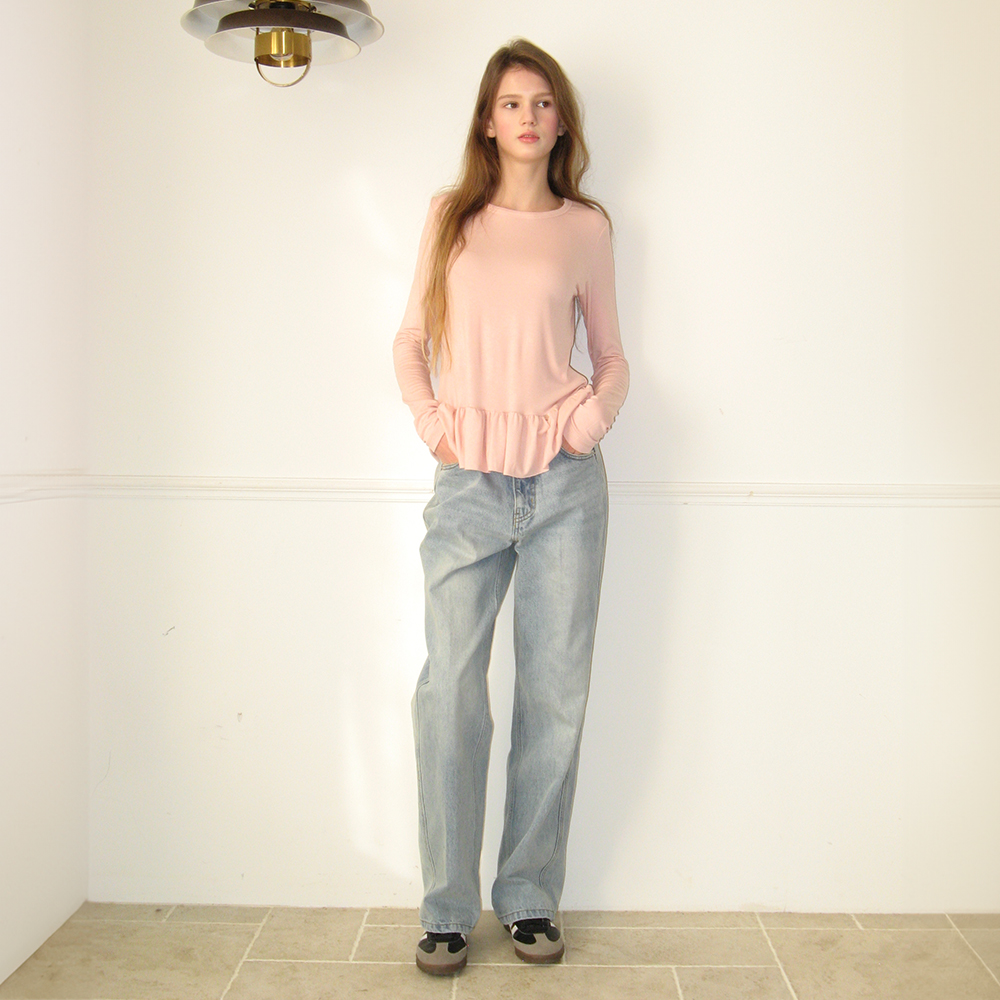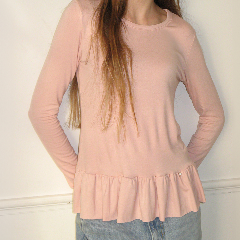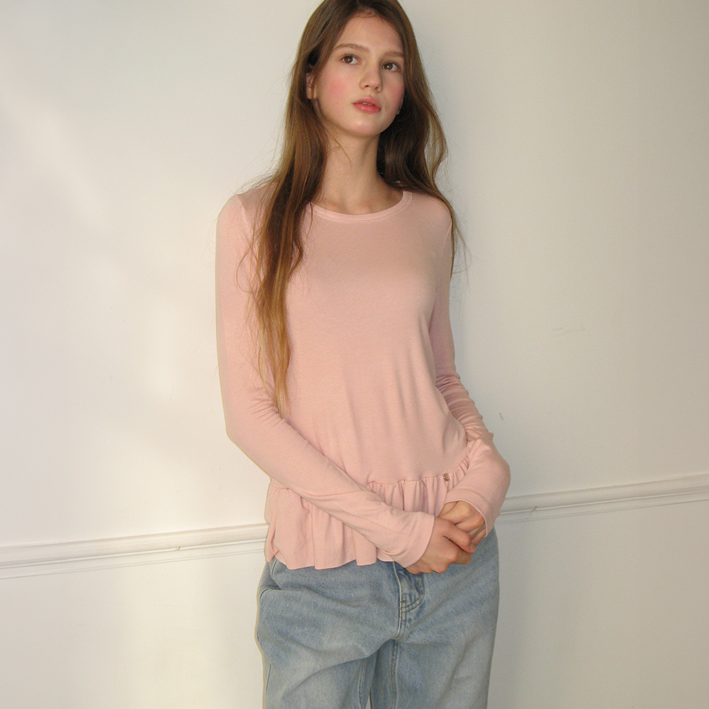 PENDANT RUFFLE LAYERED SLIM LONG SLEEVE PINK
