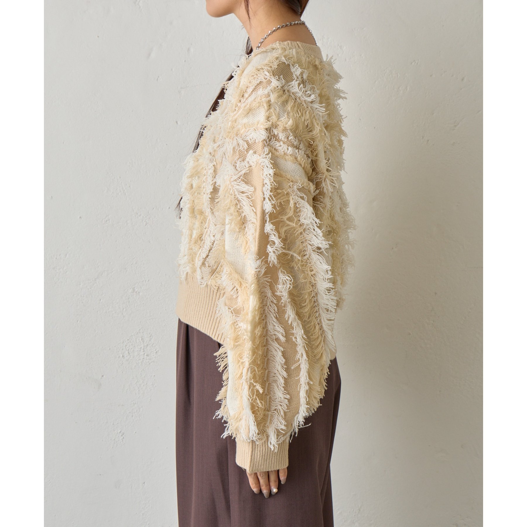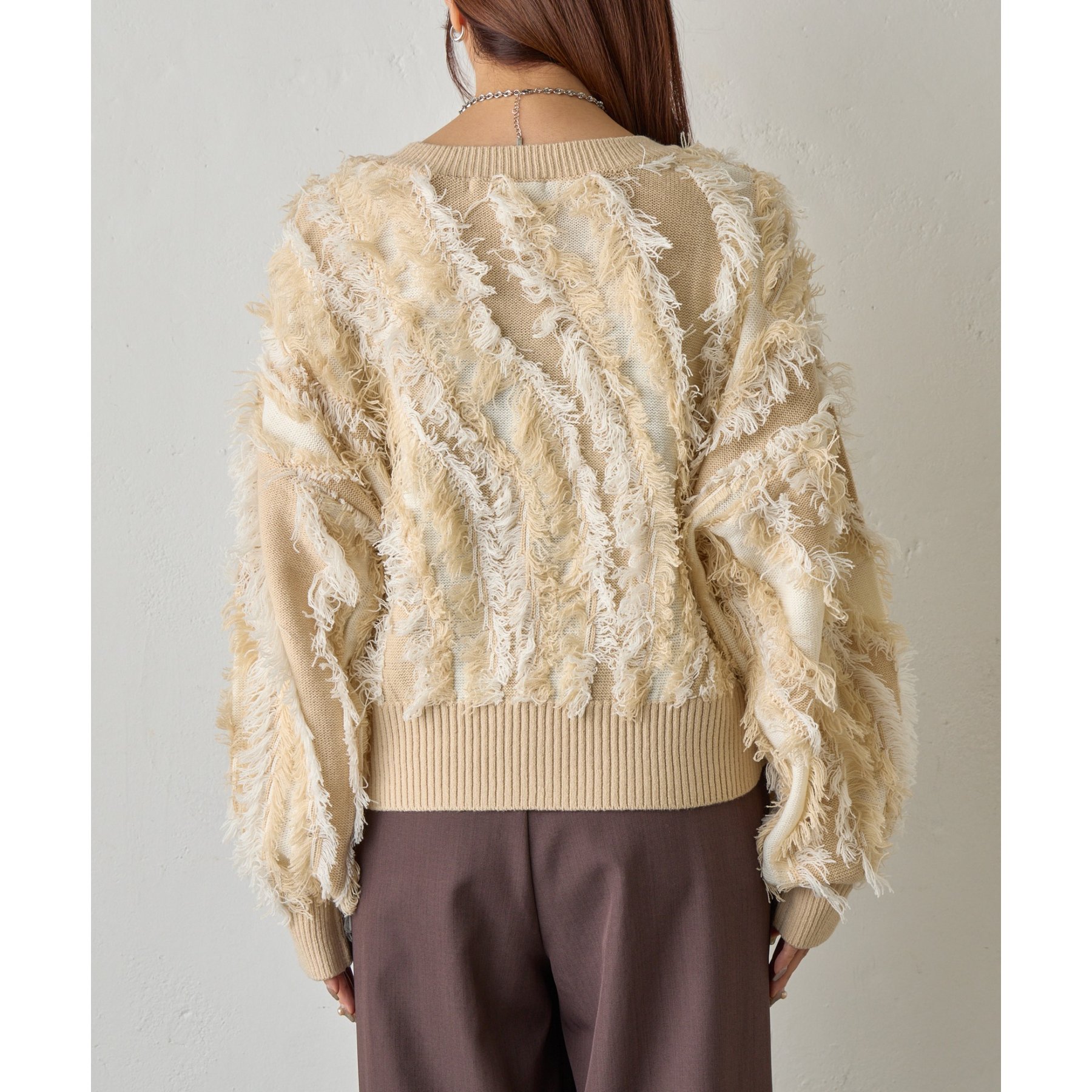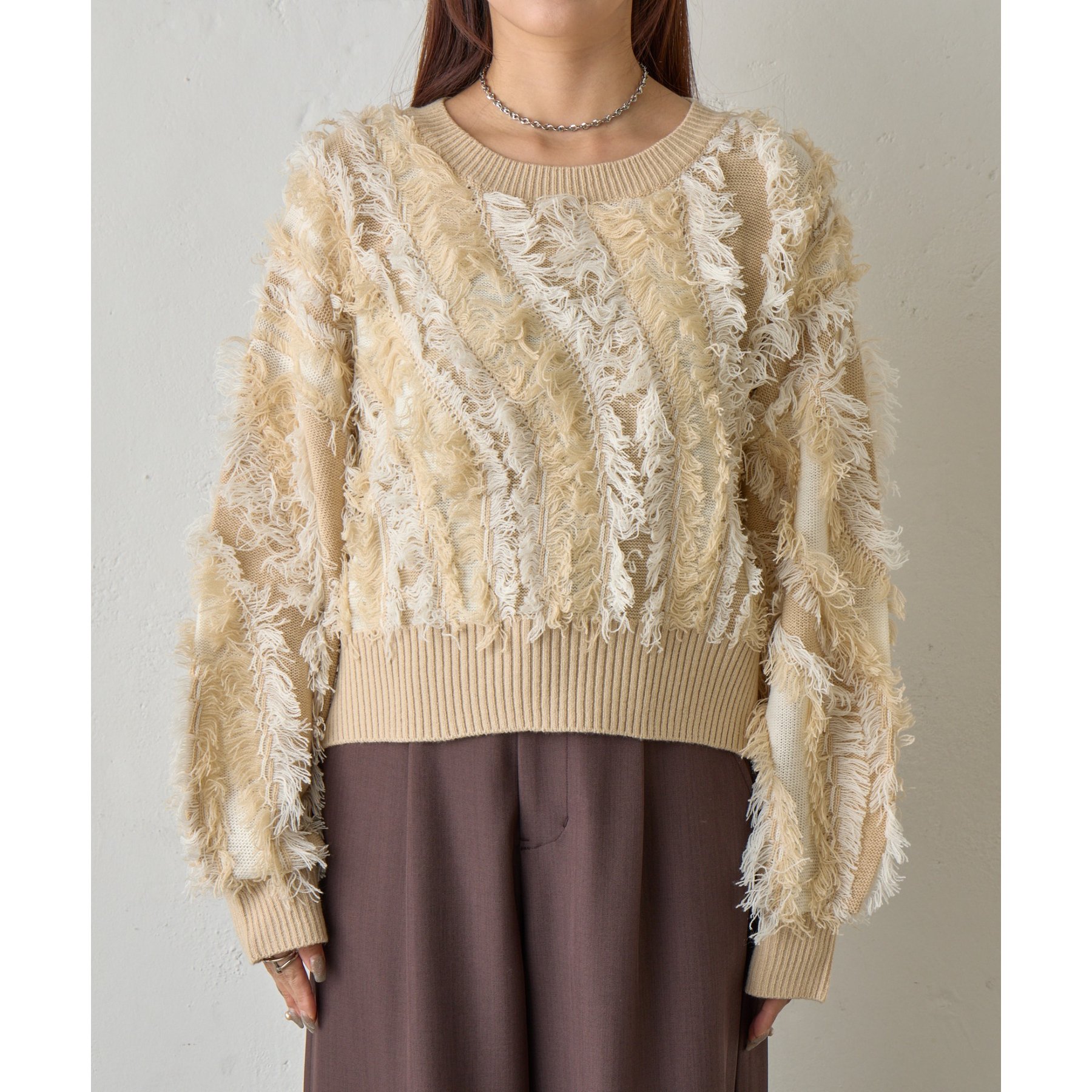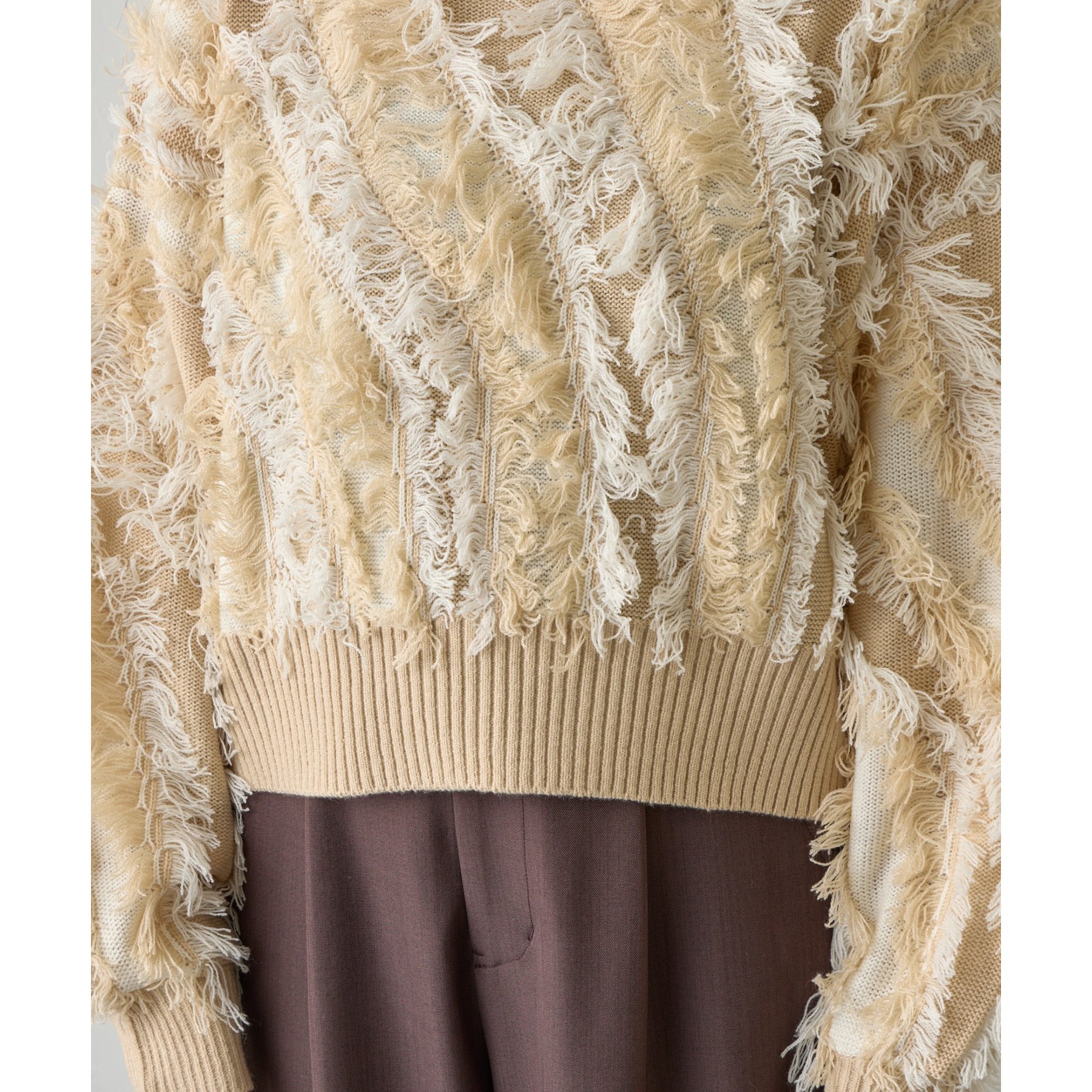 フリンジジャガードニットプルオーバー