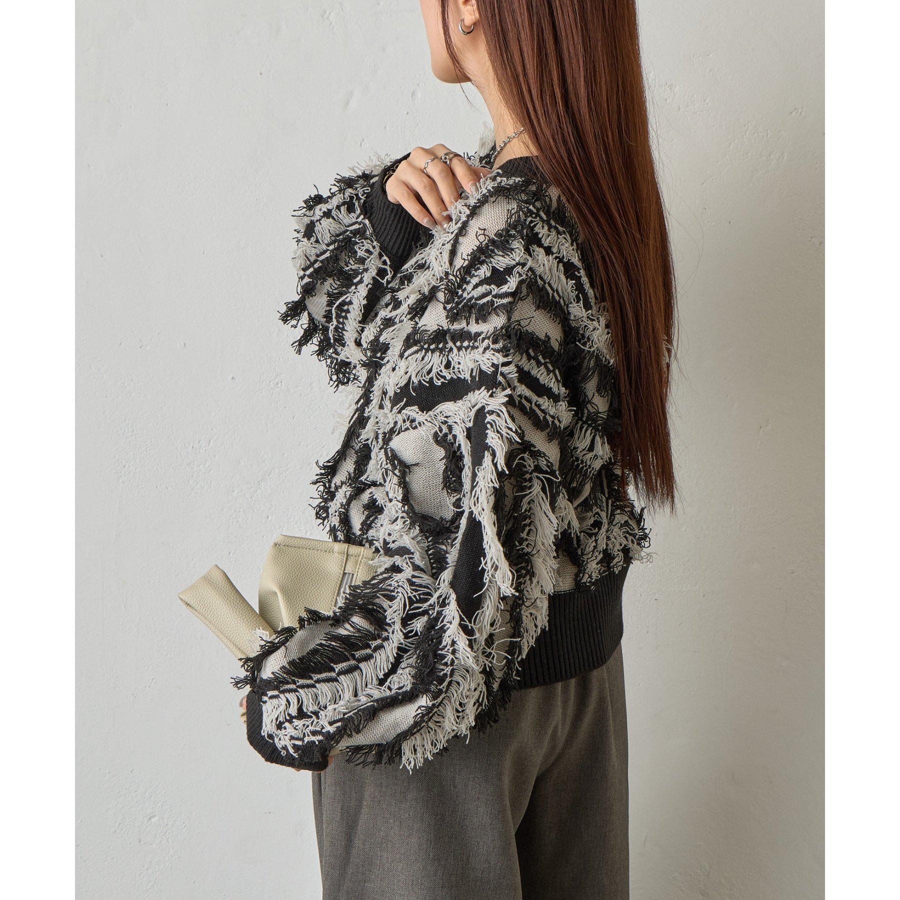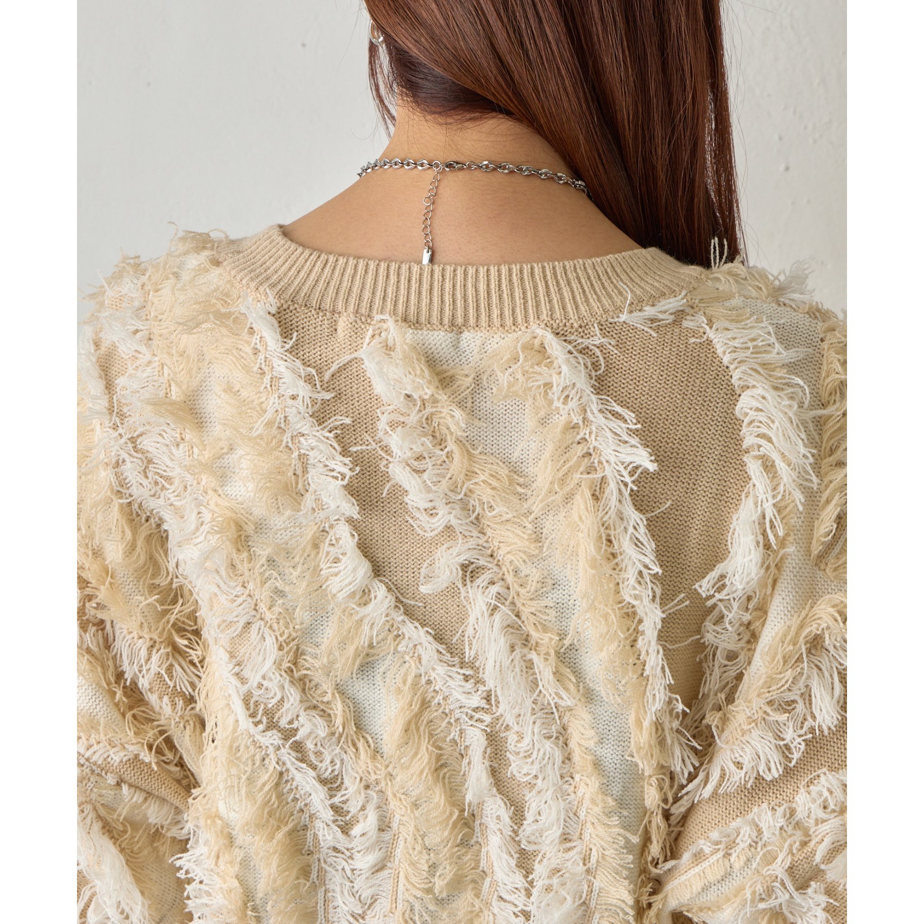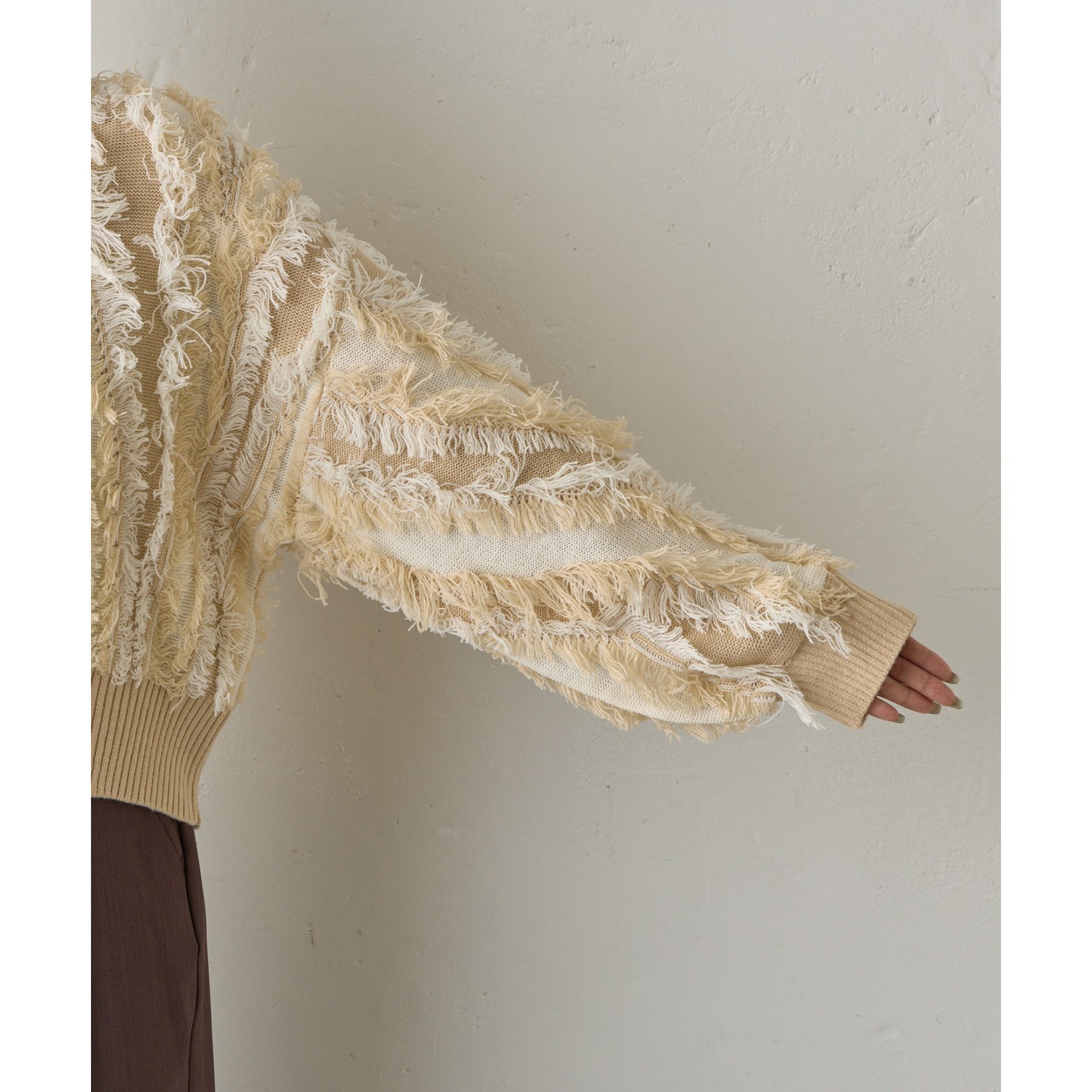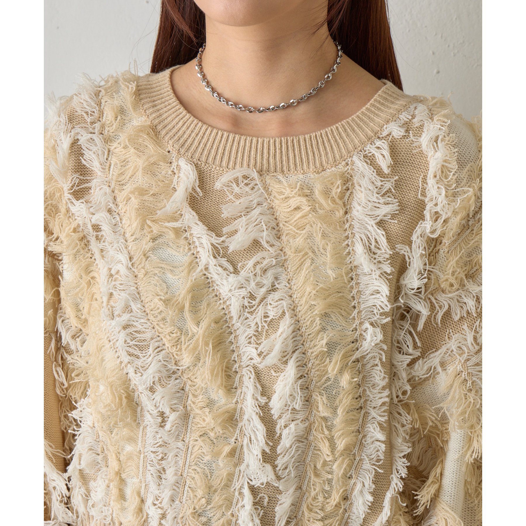 フリンジジャガードニットプルオーバー