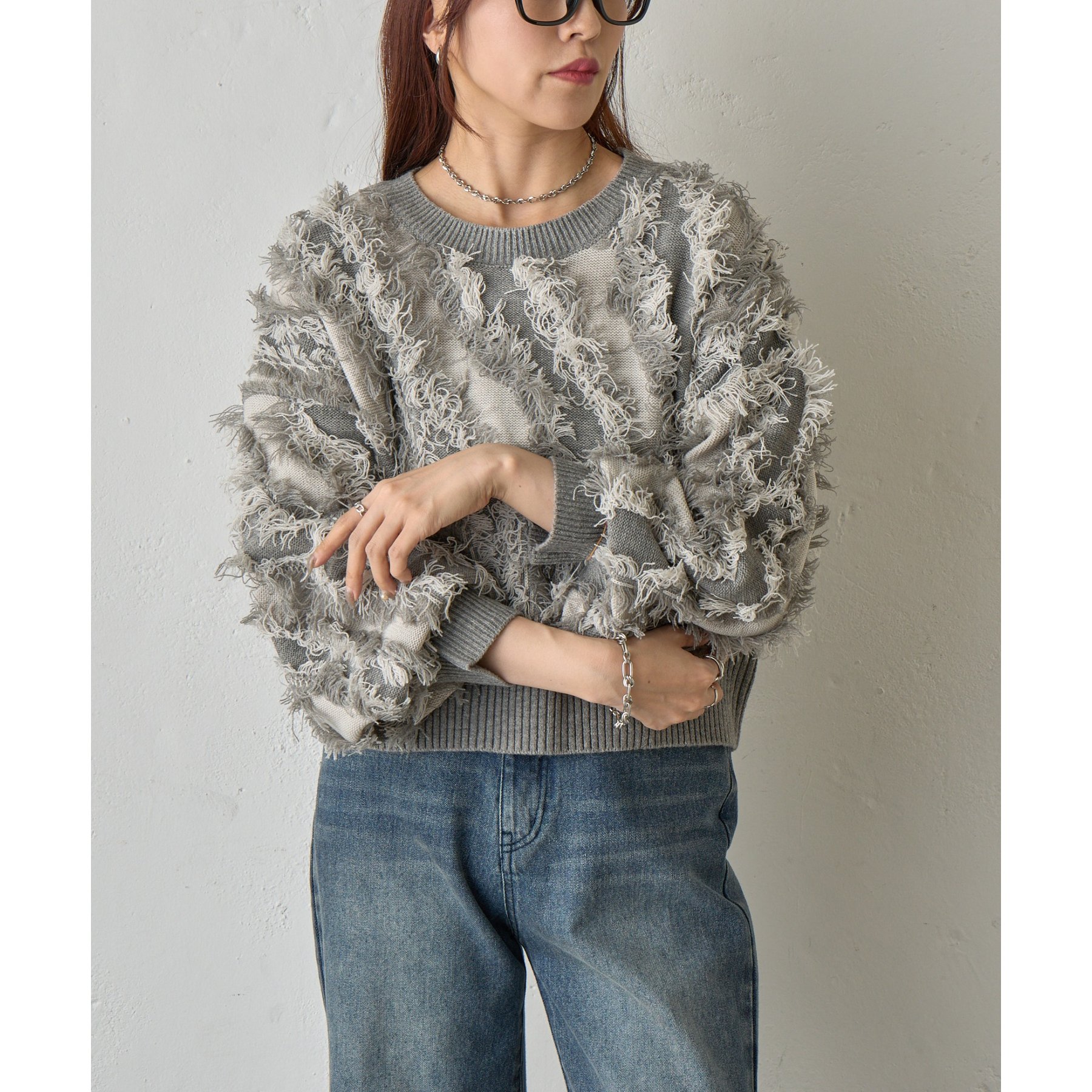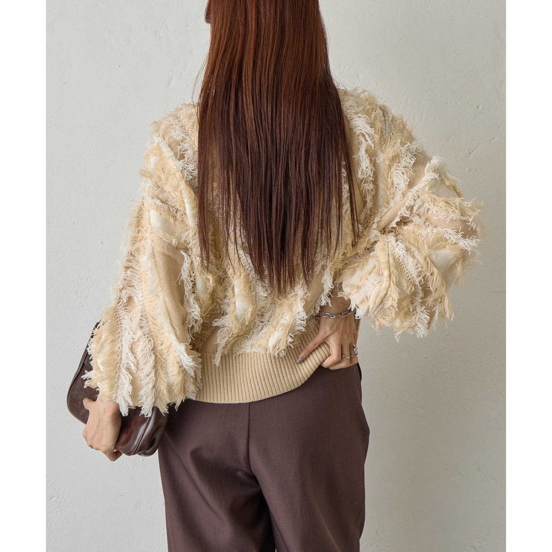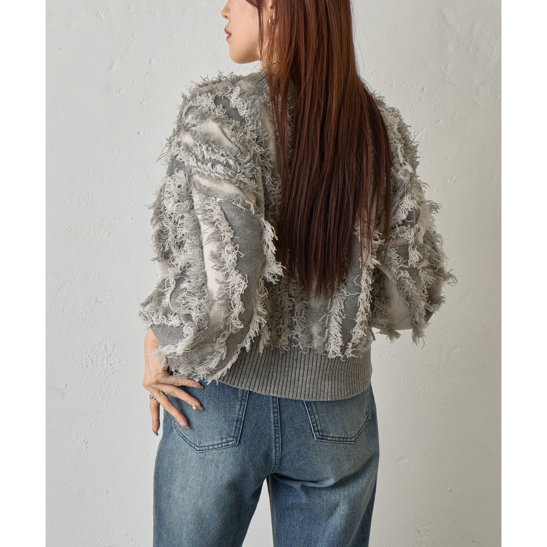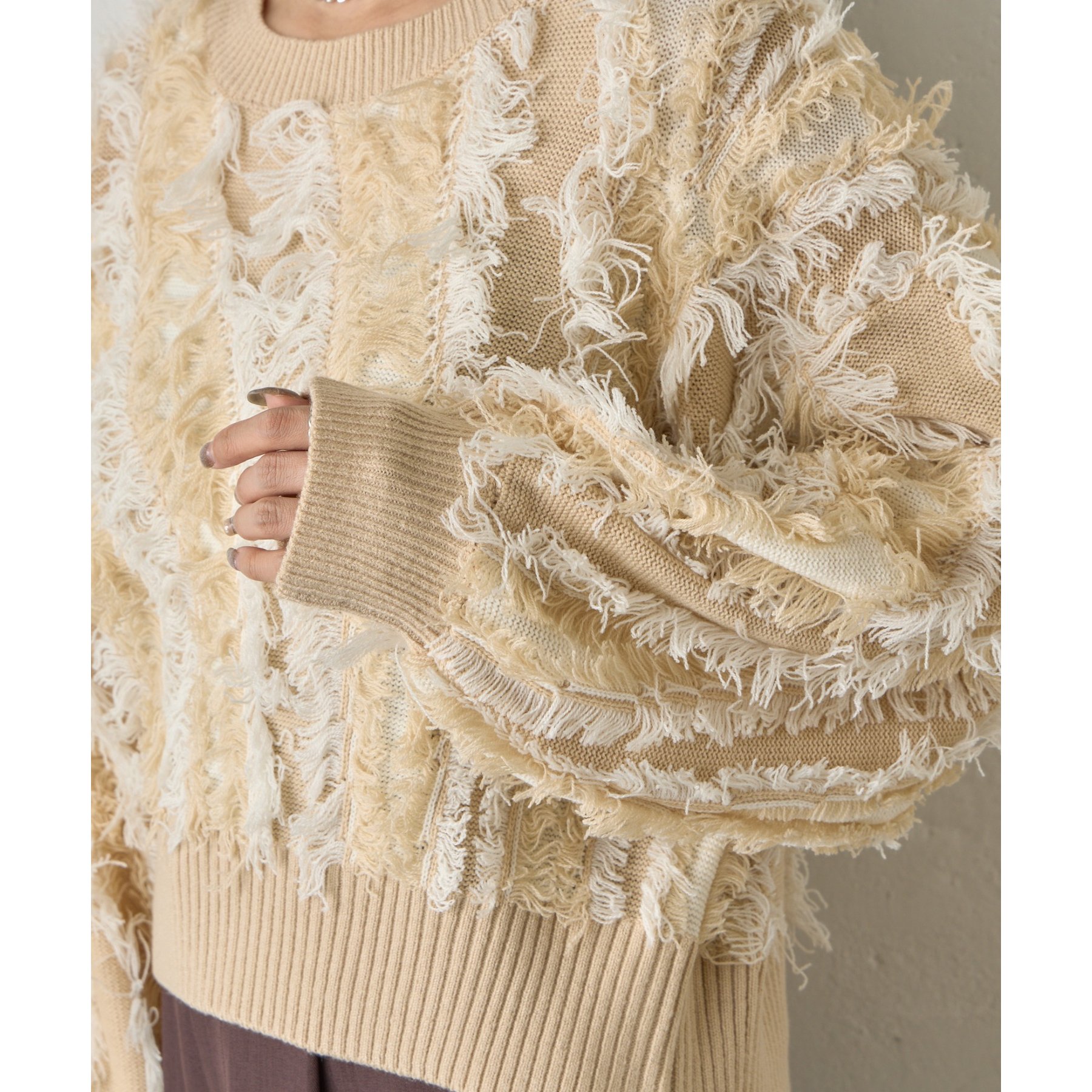 フリンジジャガードニットプルオーバー