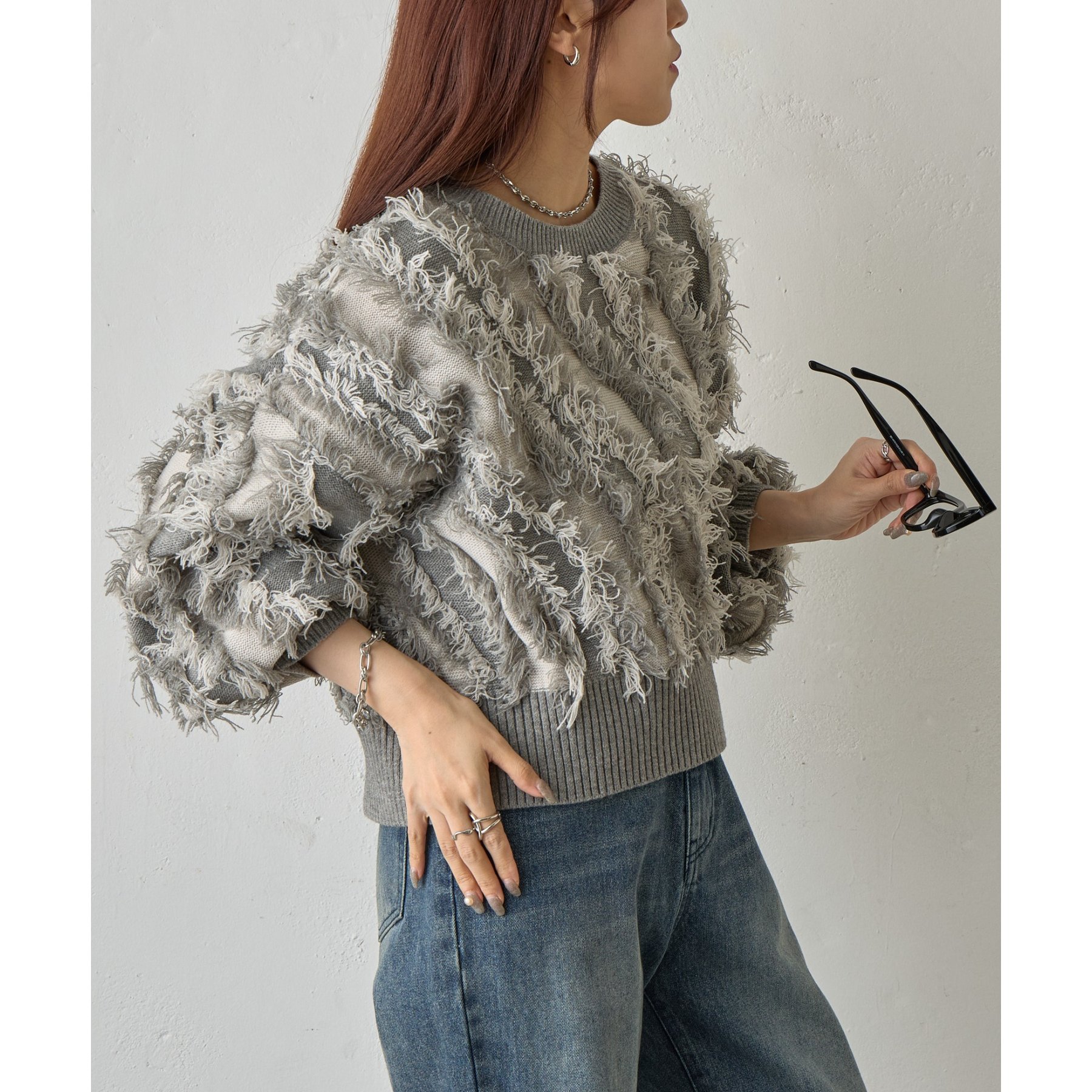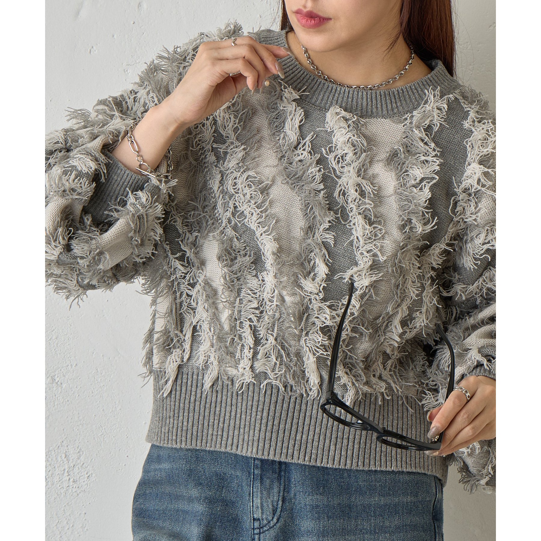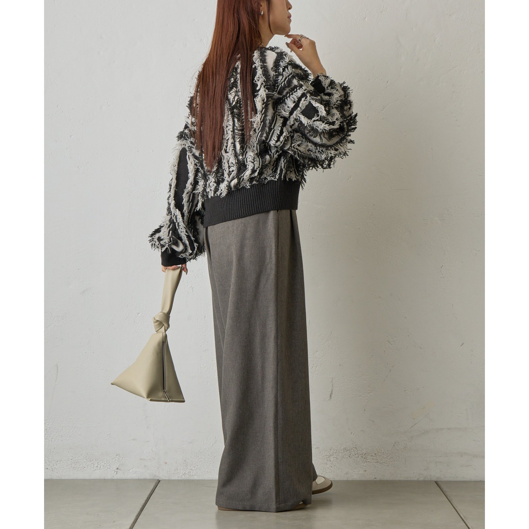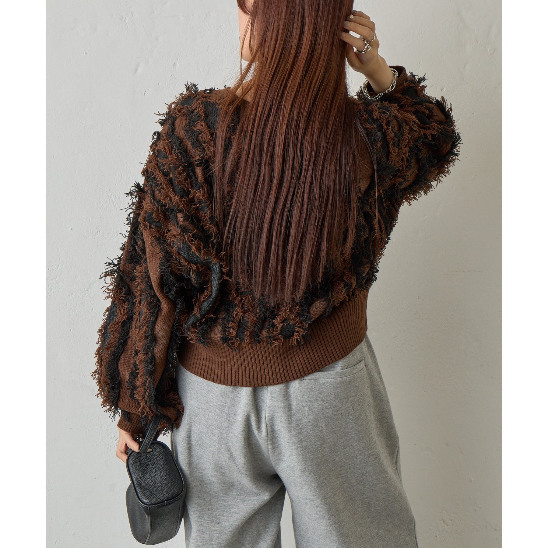 フリンジジャガードニットプルオーバー