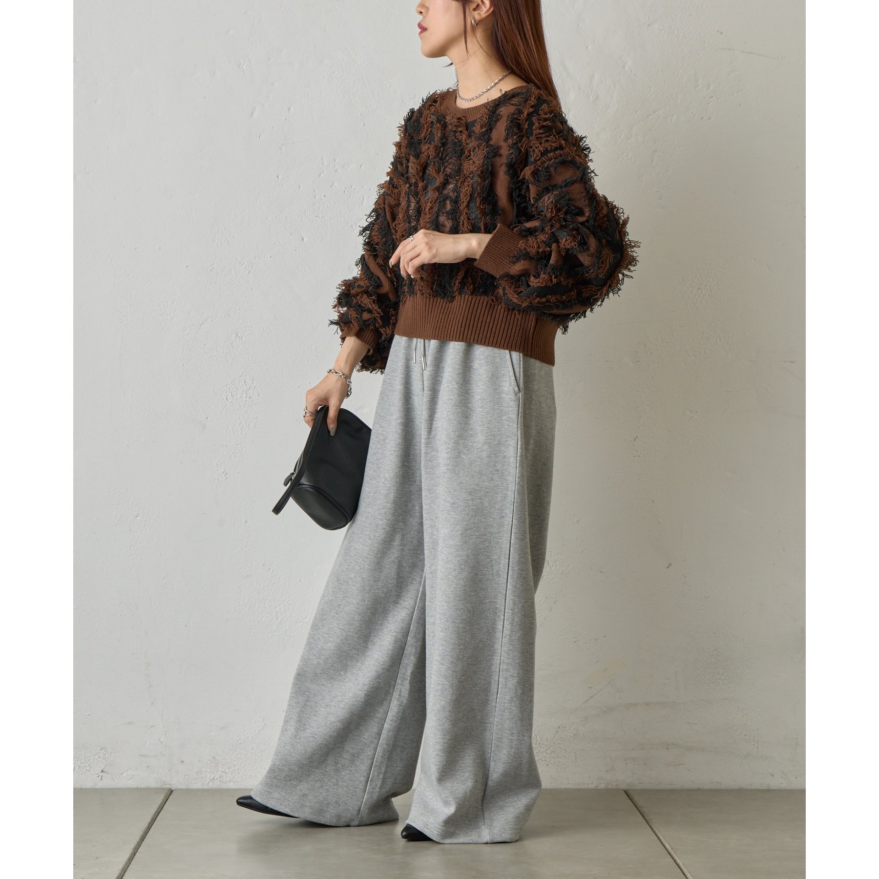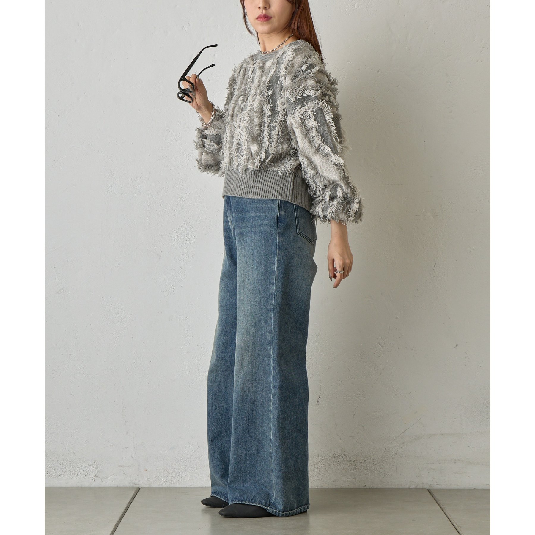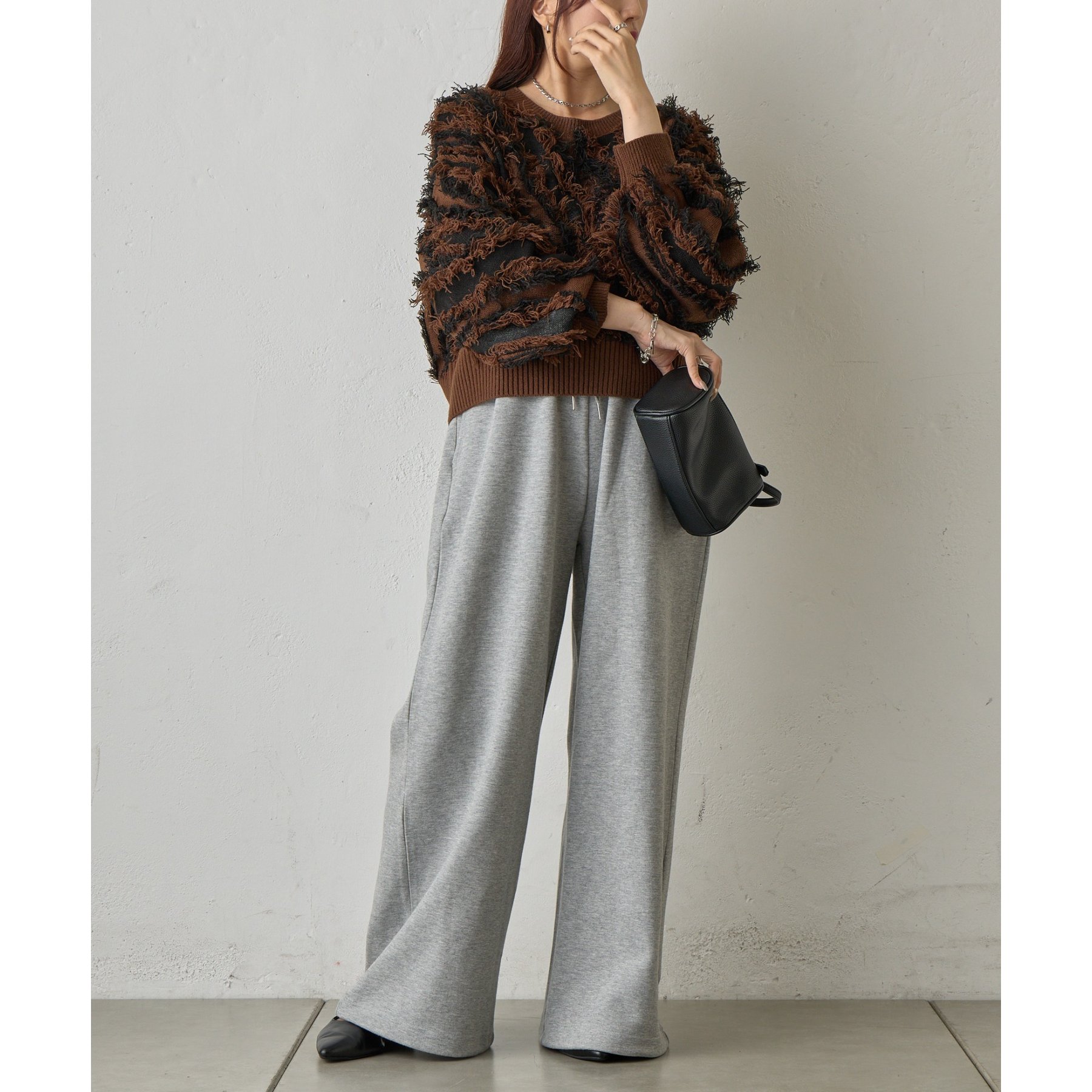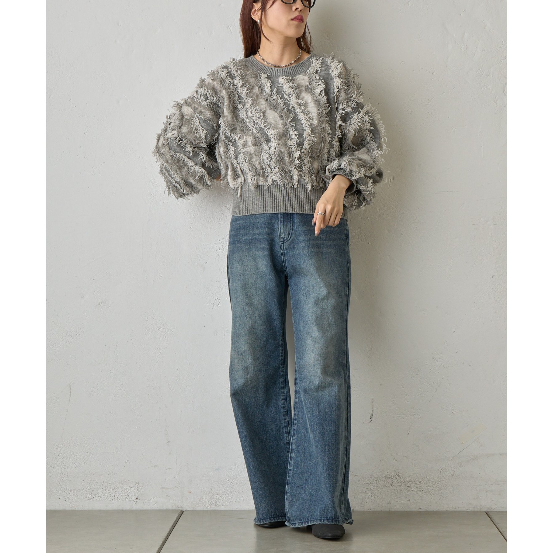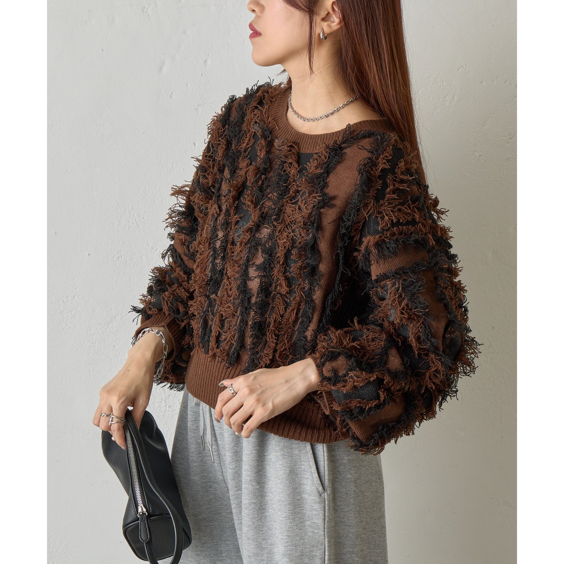 フリンジデザインで顔周りが華やかになり1枚でコーデが決まるアイテムです。