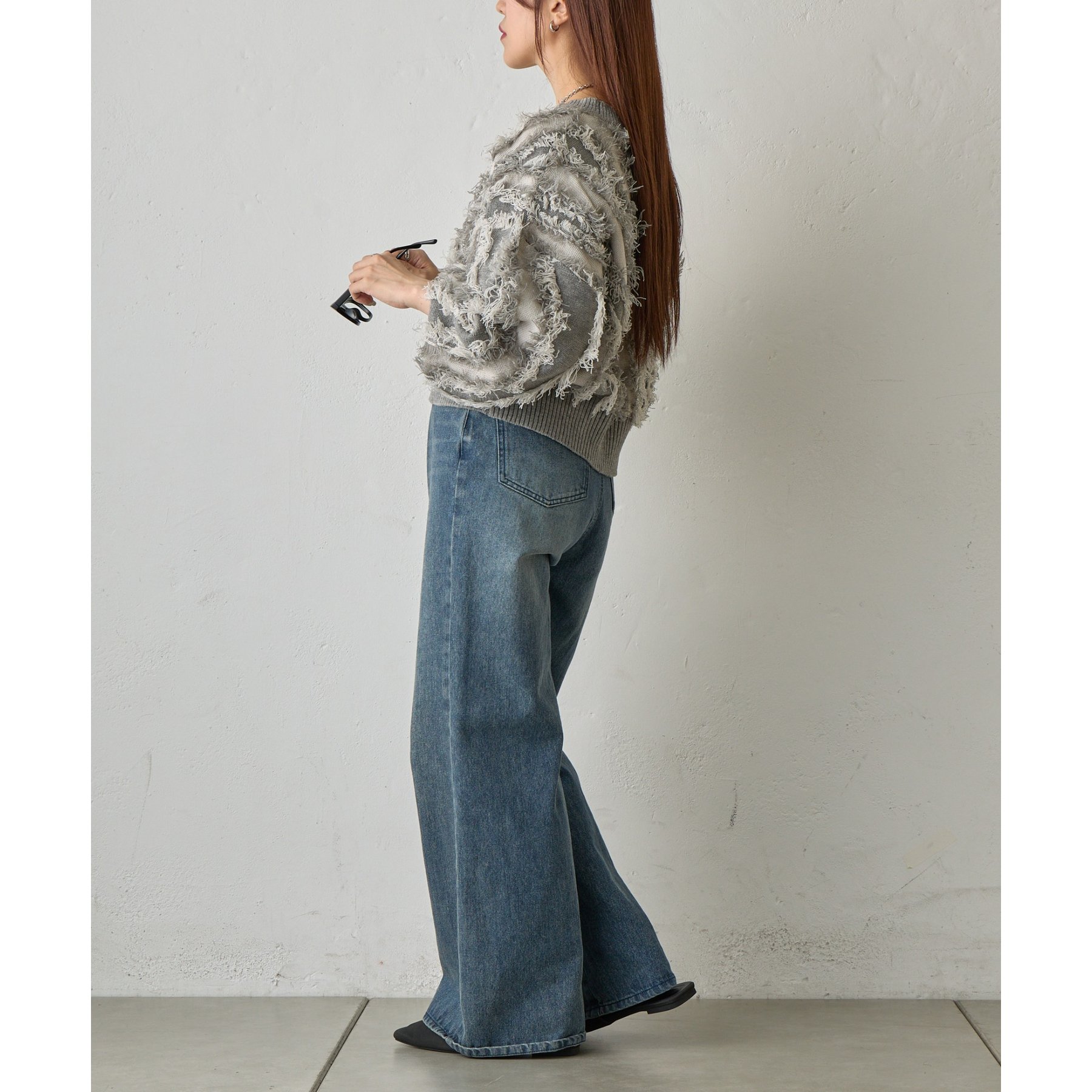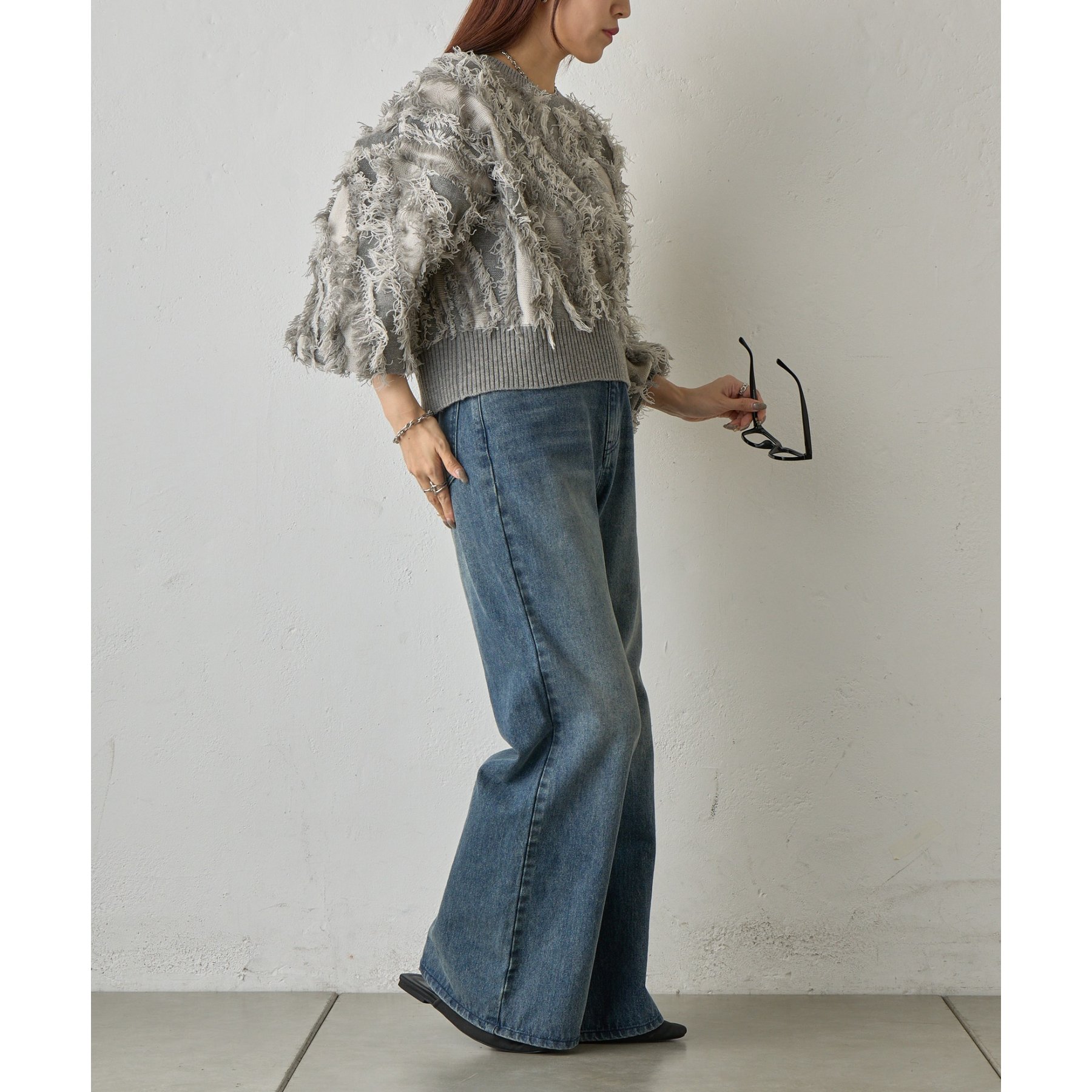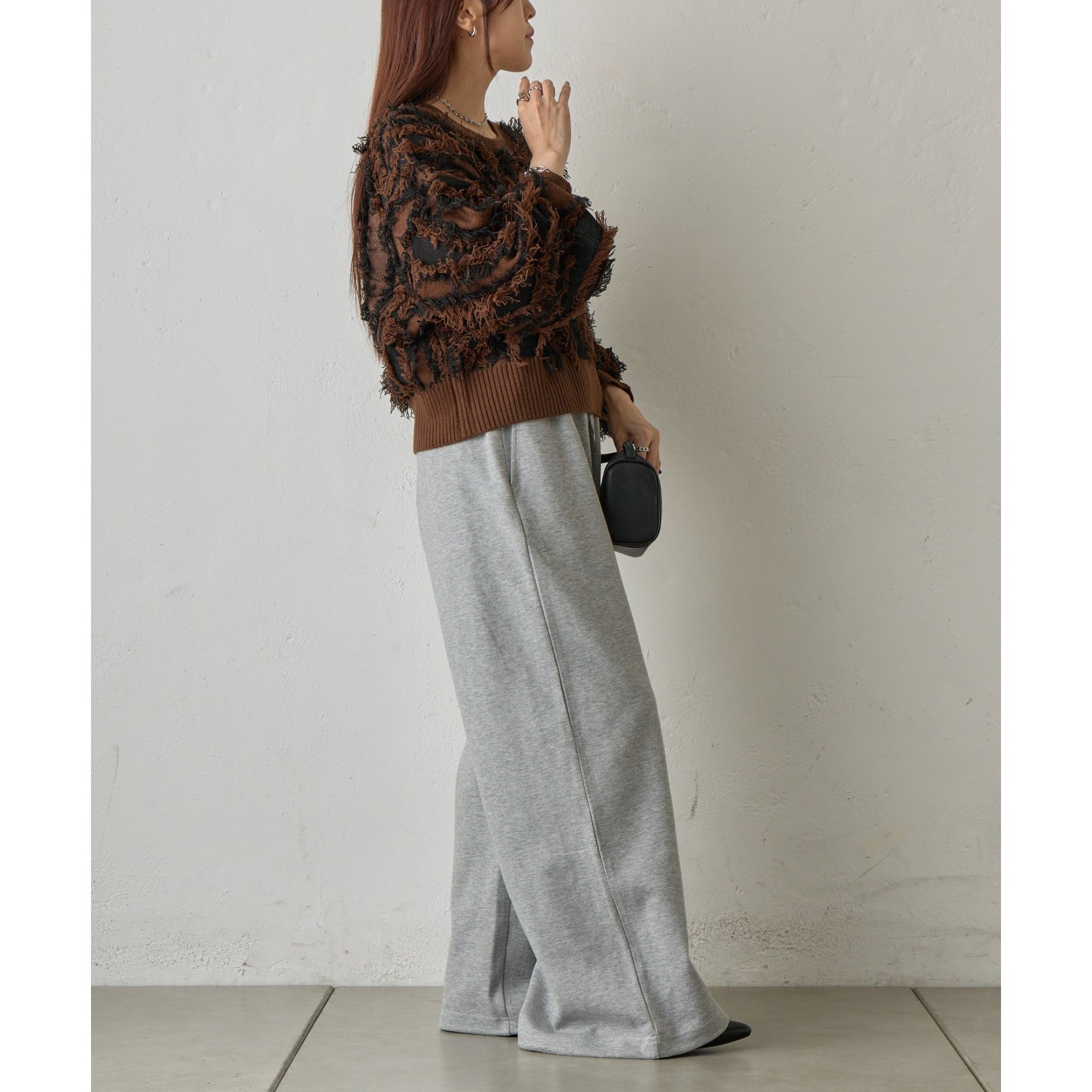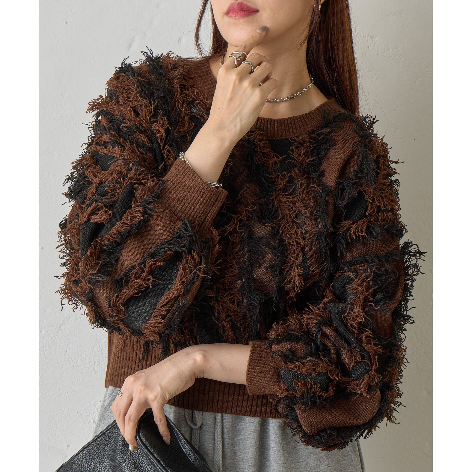 フリンジデザインで顔周りが華やかになり1枚でコーデが決まるアイテムです。