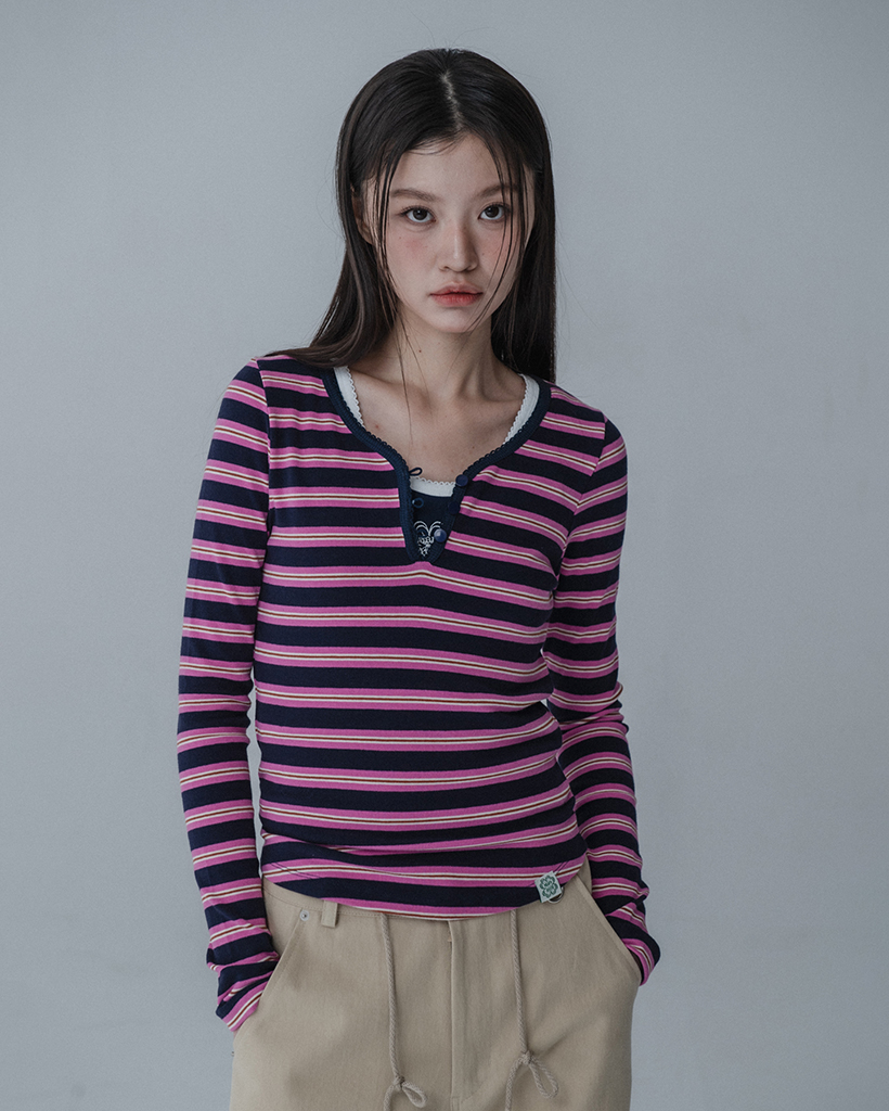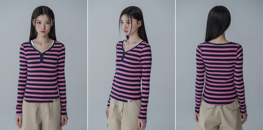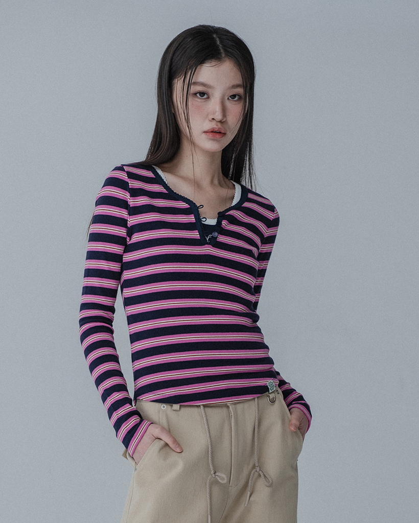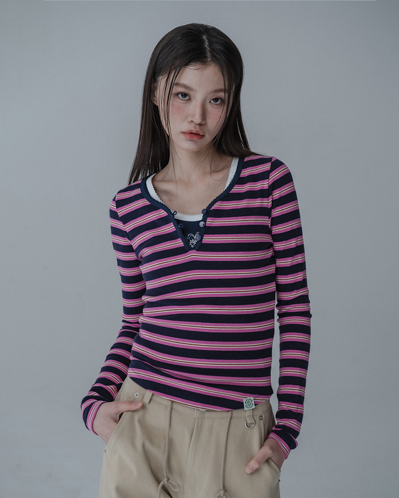MULTI PINCOAT SLIM TSHIRT_NAVY PINK