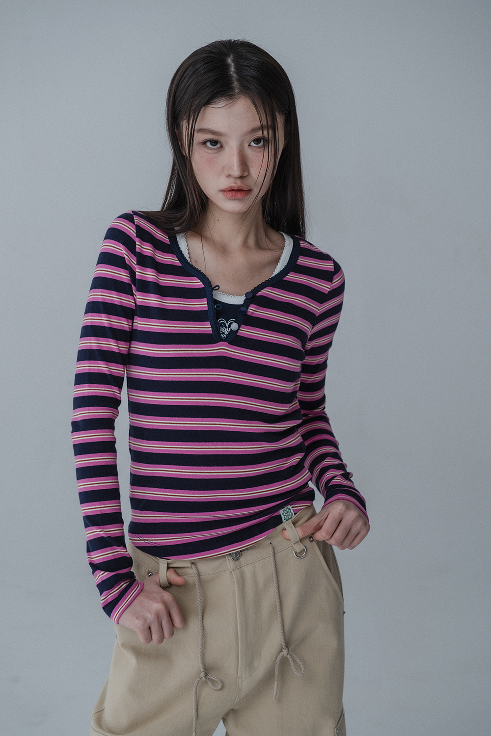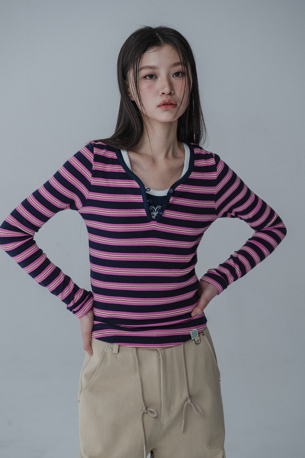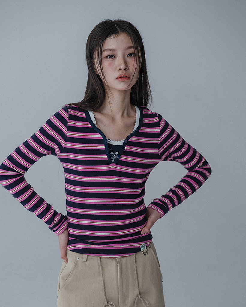 MULTI PINCOAT SLIM TSHIRT_NAVY PINK