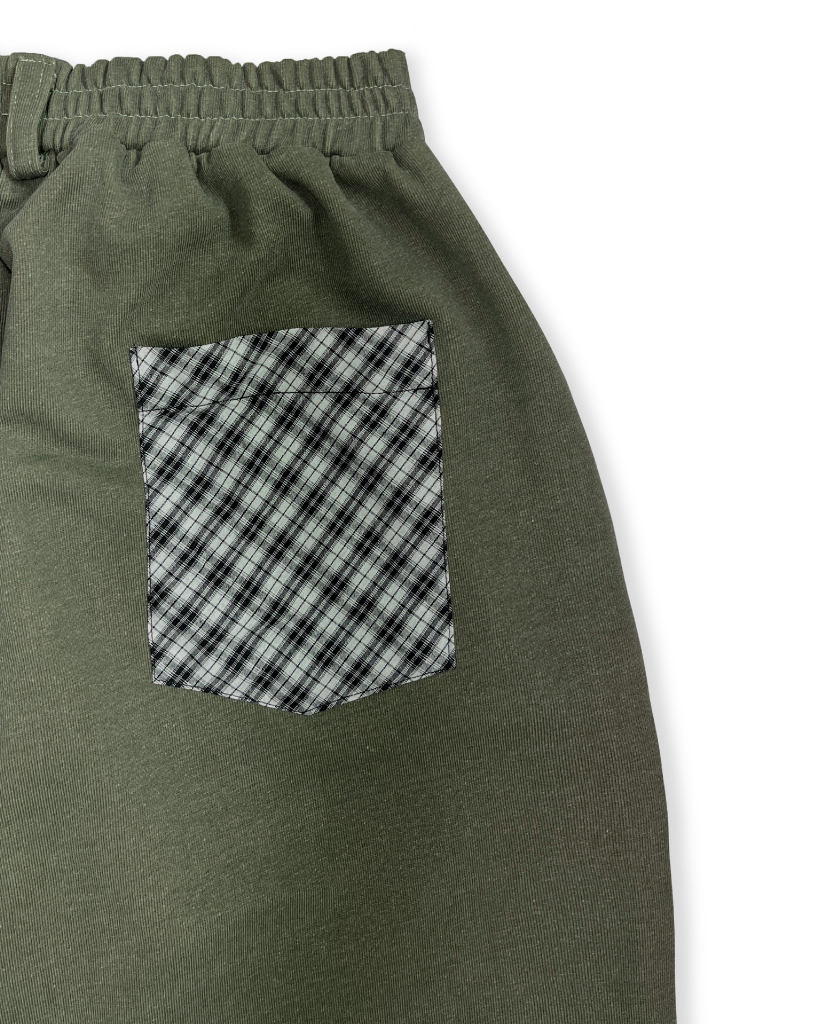 KHAKI CHECK SWEAT PANTS