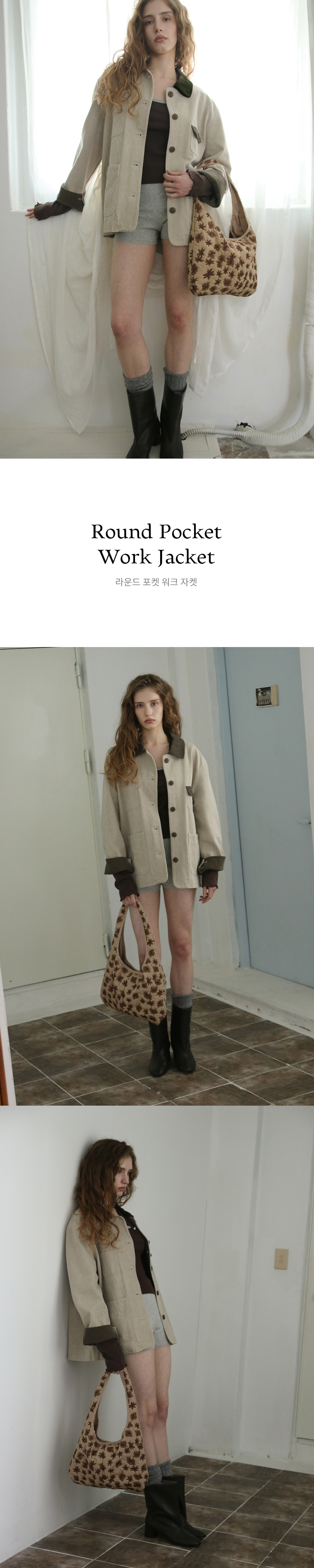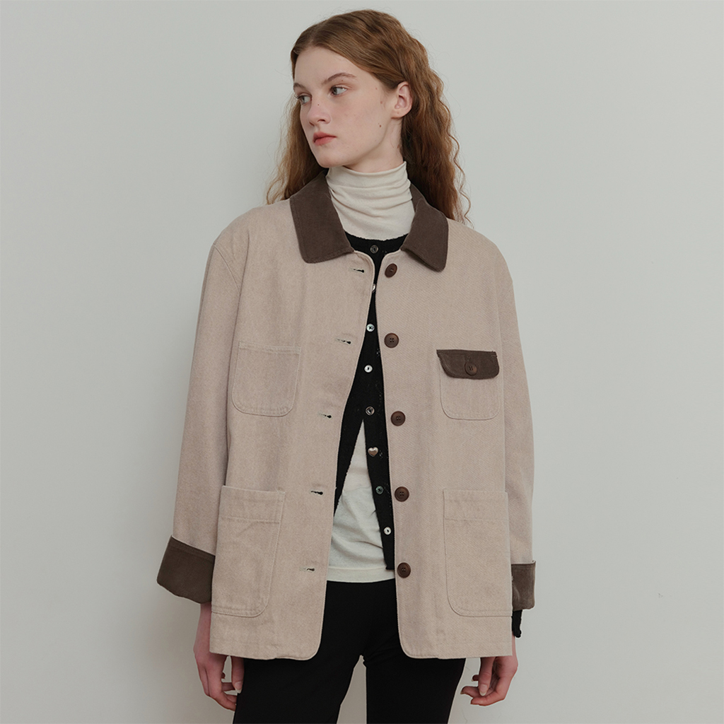 Round Pocket Work Jacket - Beige