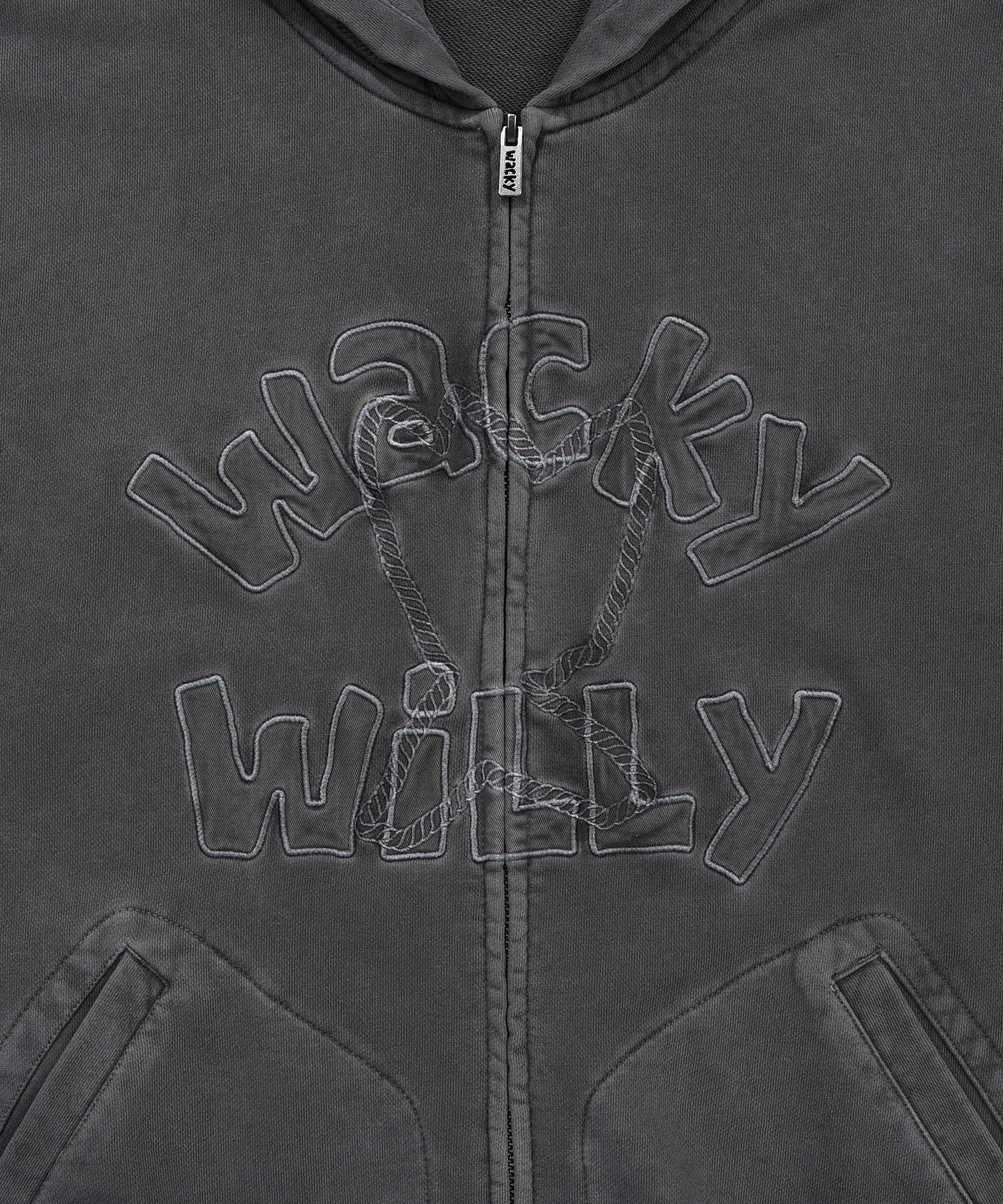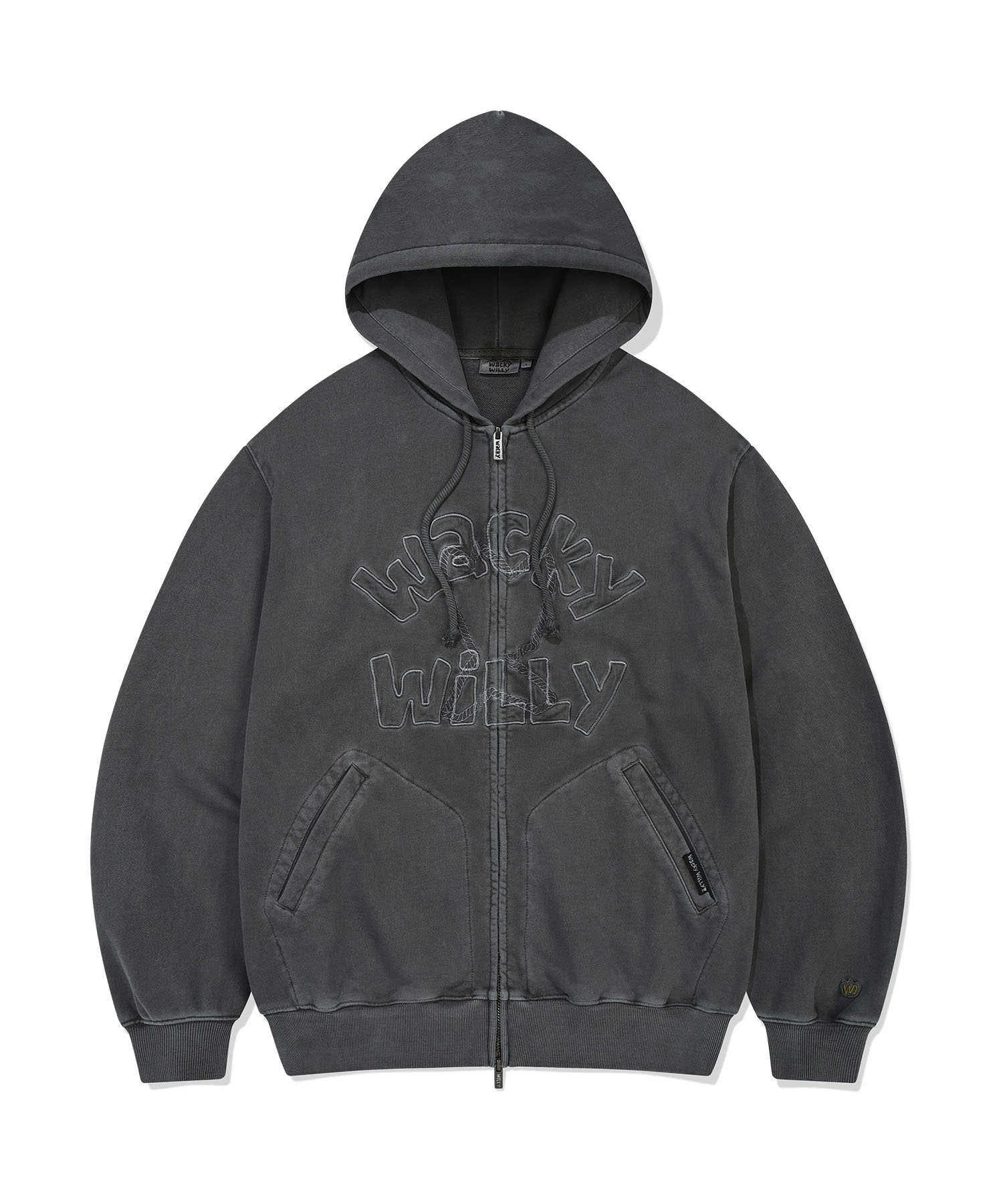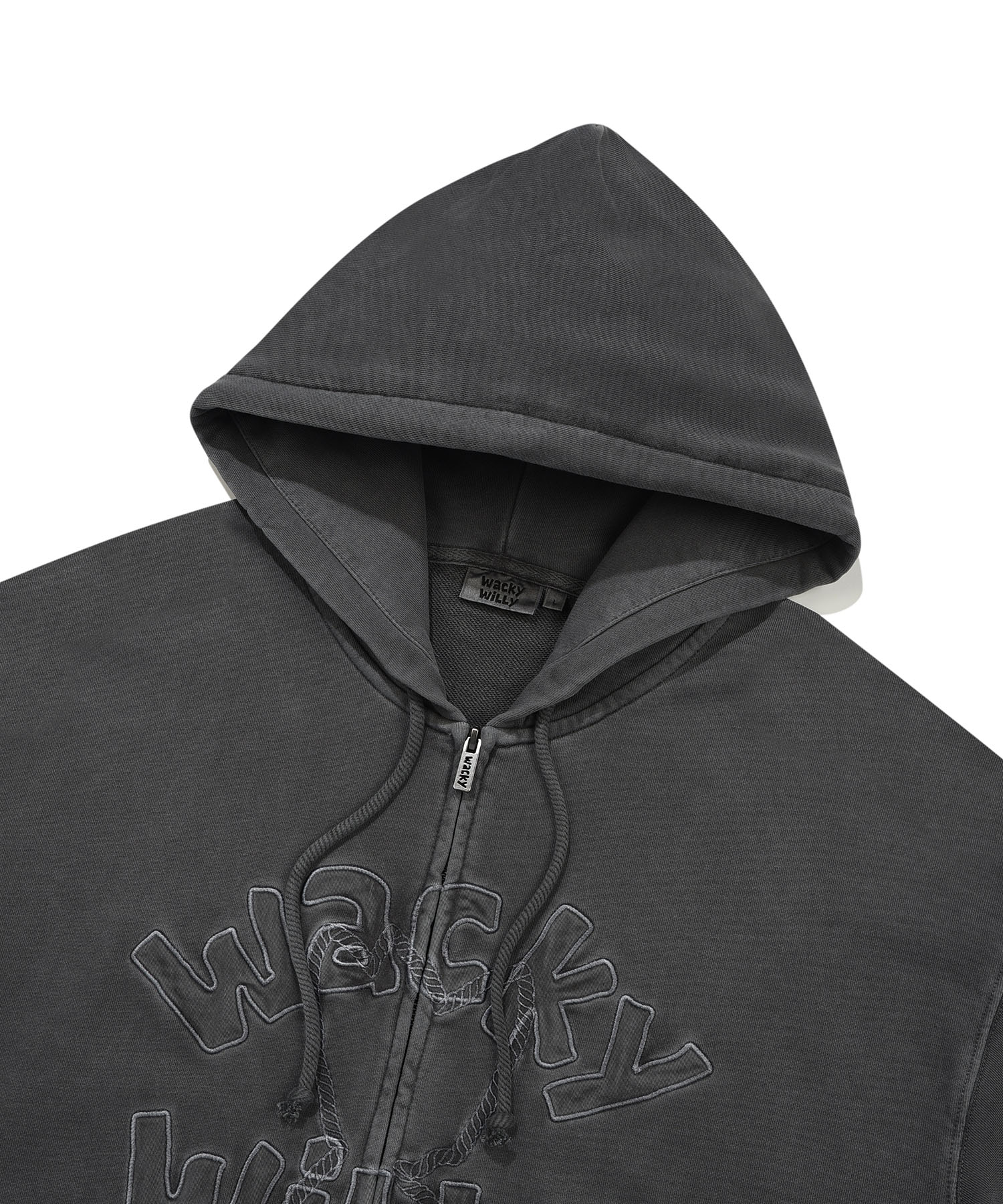 Pigment Vintage Hooded Zip-Up in Charcoal