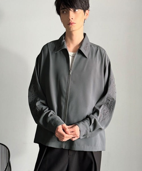繊細な刺繍が目を引くジップアップシャツジャケット。