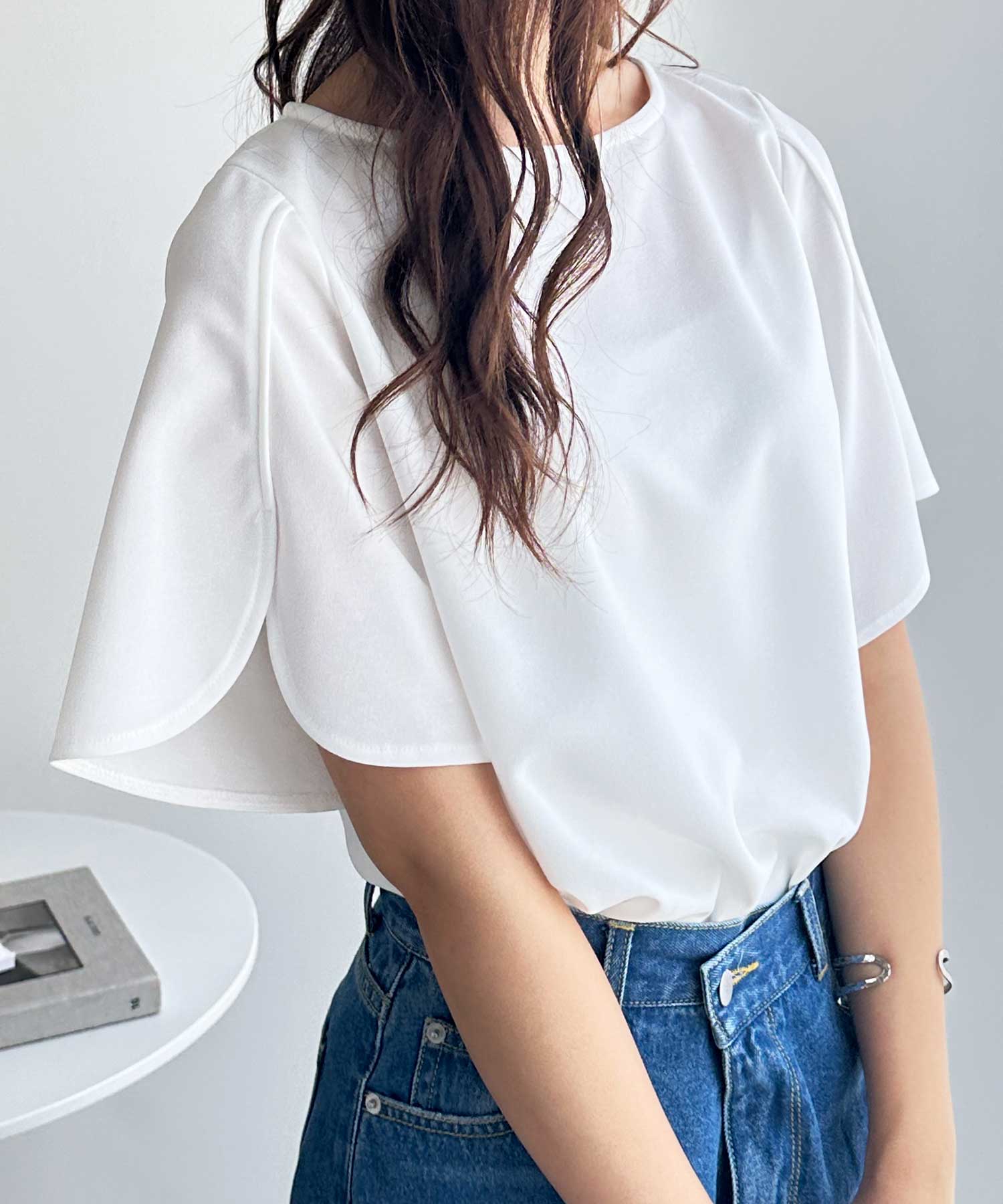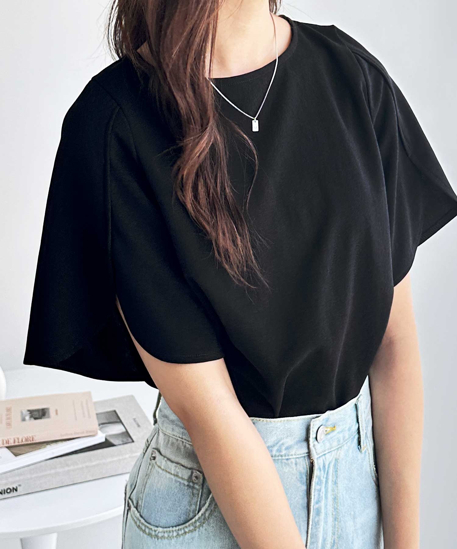 夏にぴったり!ひんやりスリット入りフレアースリーブTブラウス