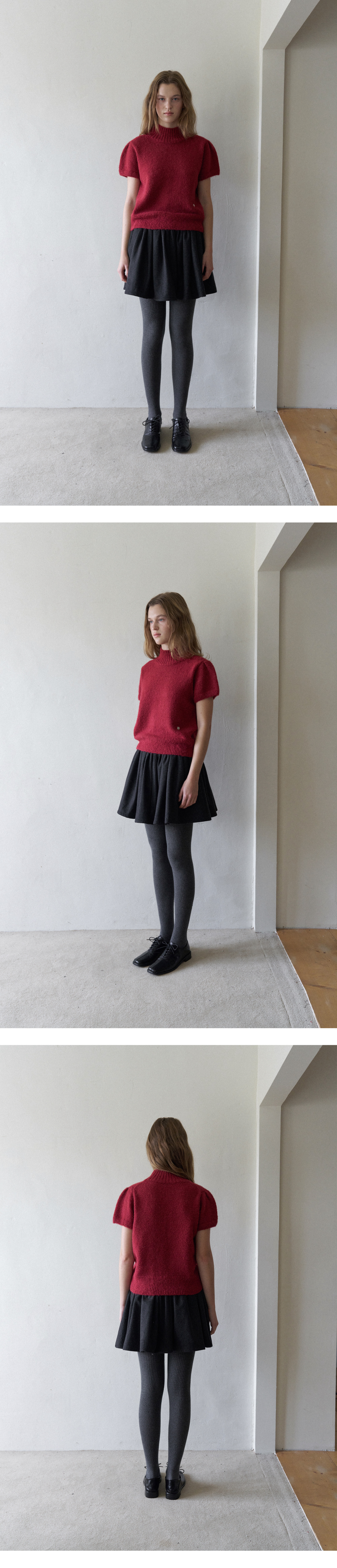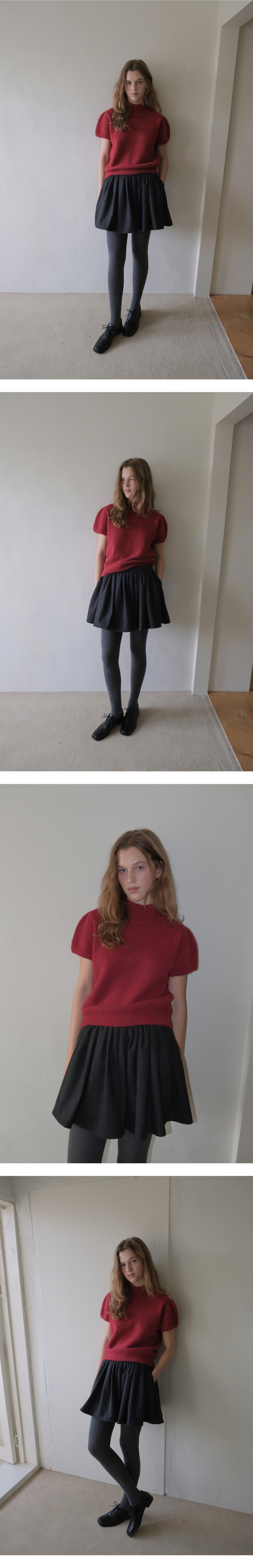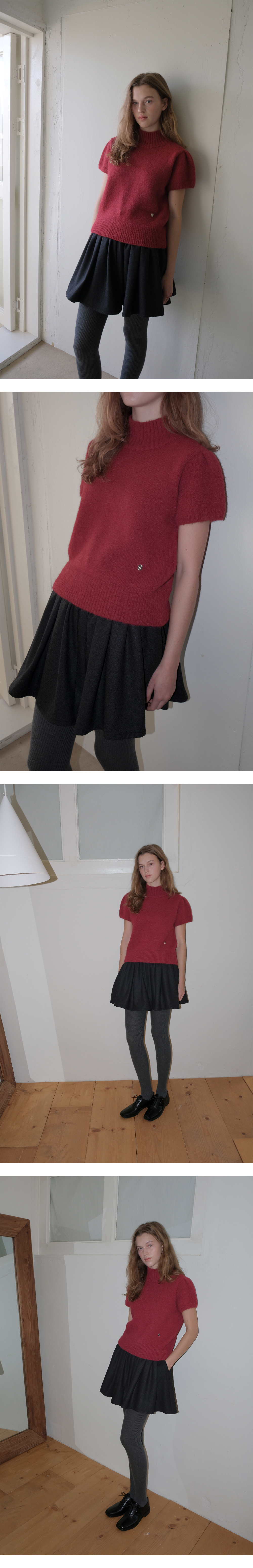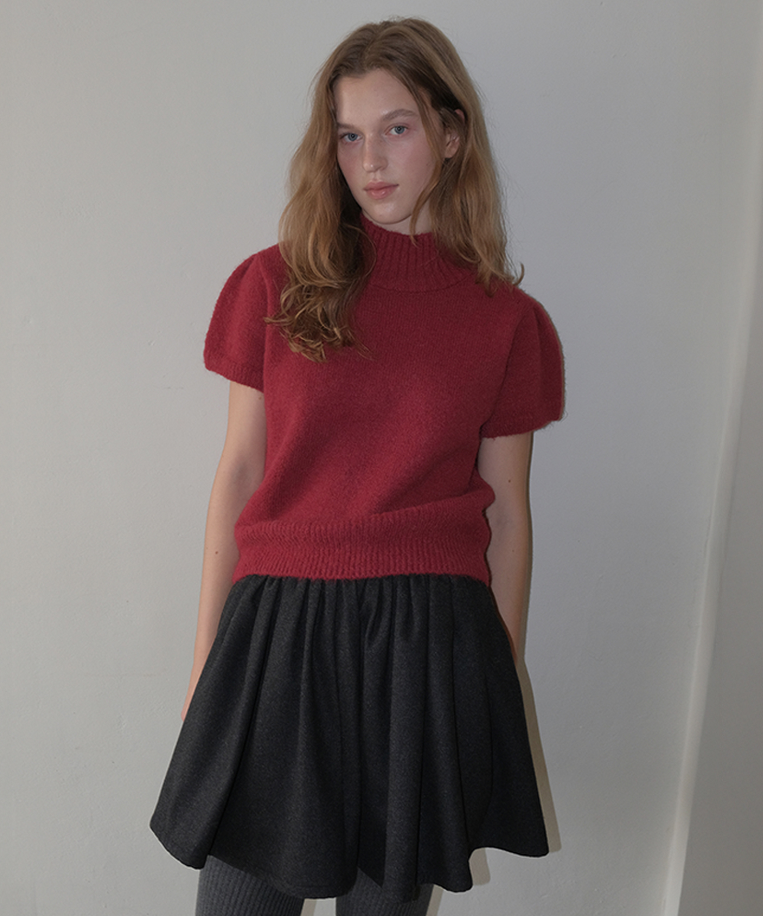 Turtleneck Emma Half Puff Knit - Vintage Red