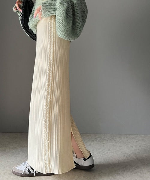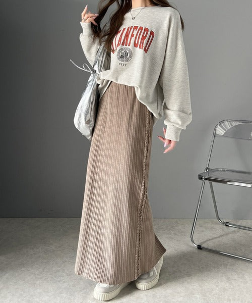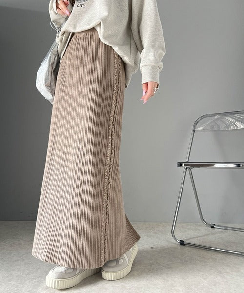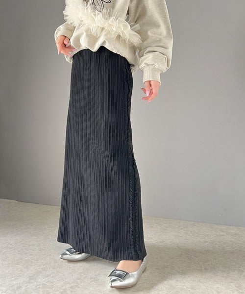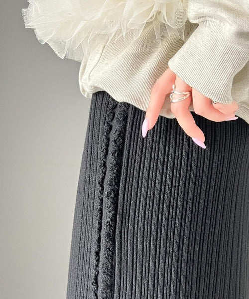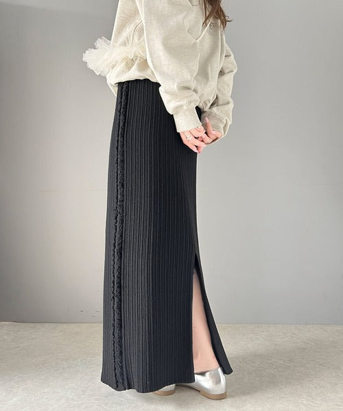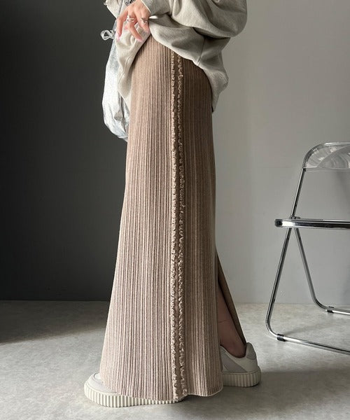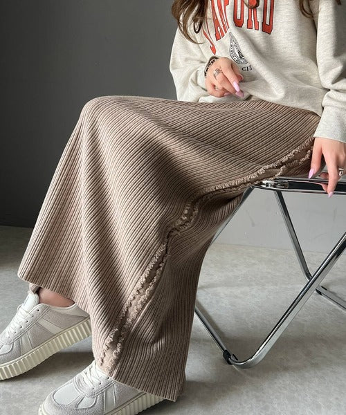 【mily bilet】カジュアルに可愛く!サイドフリンジメランジニットスカート mi1259004