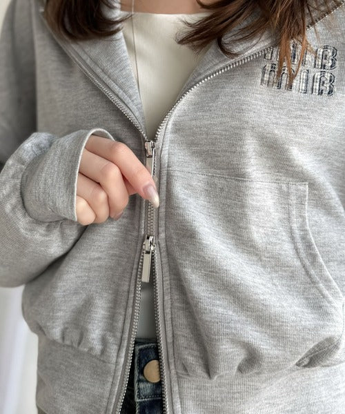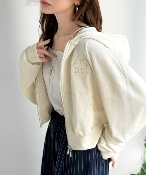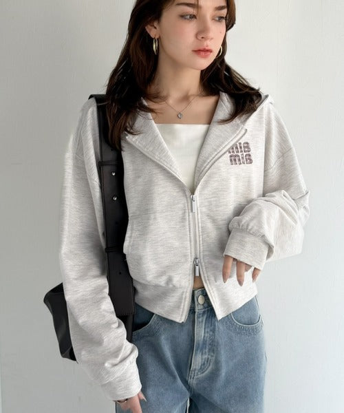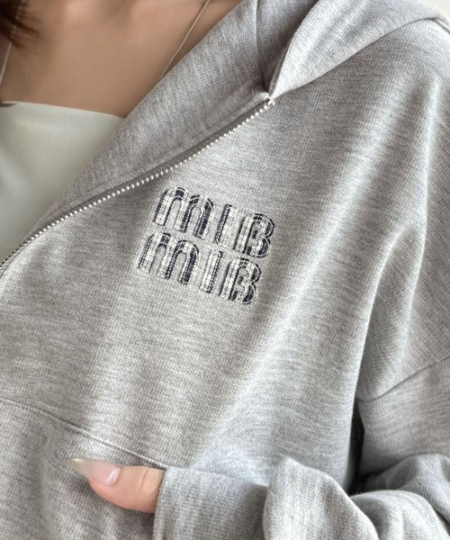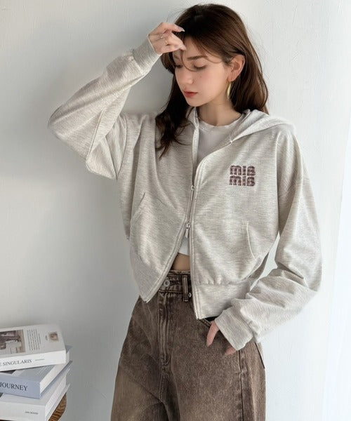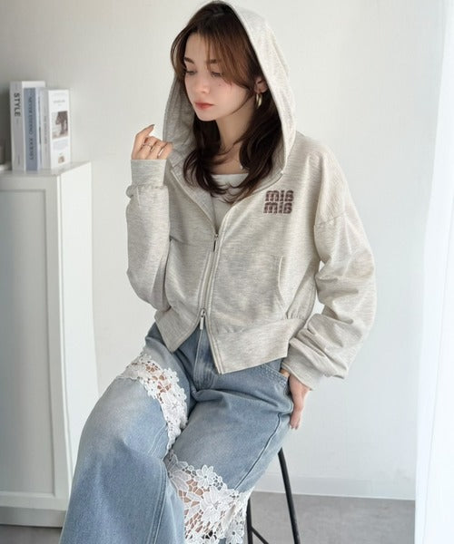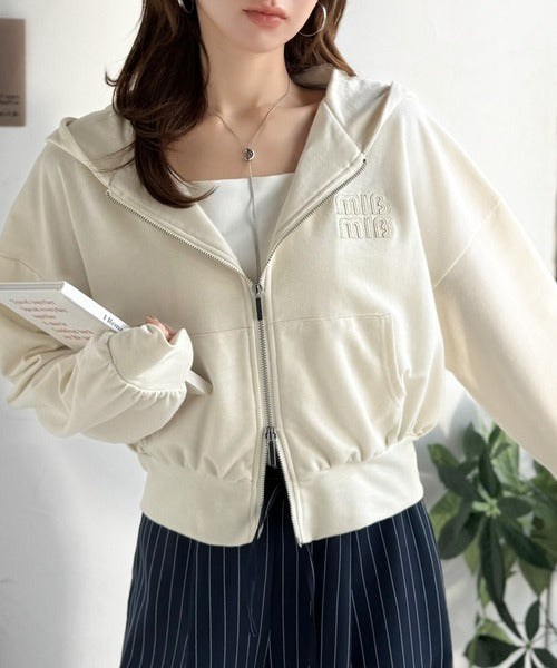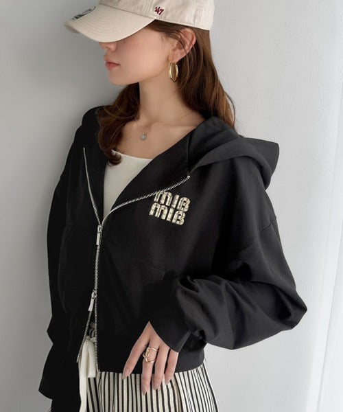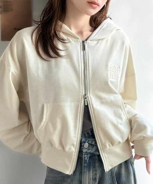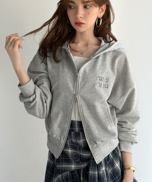 【mily bilet】1枚は持っておきたい!垢抜け必至。胸元ワッペン付きダブルジップパーカー(長袖) mi1329090