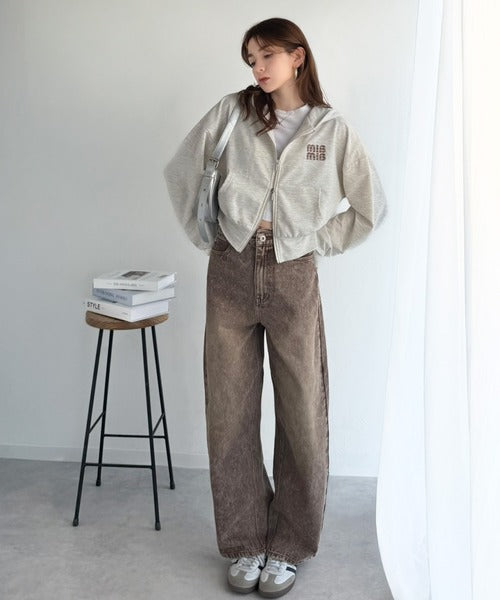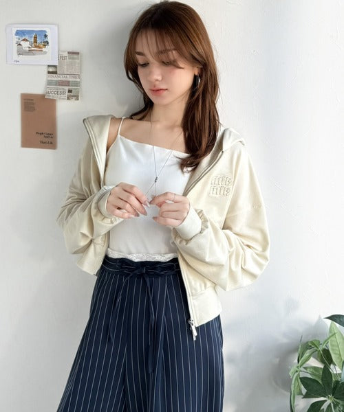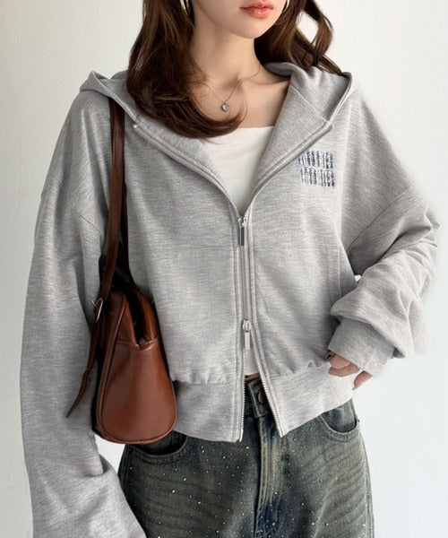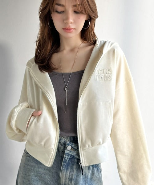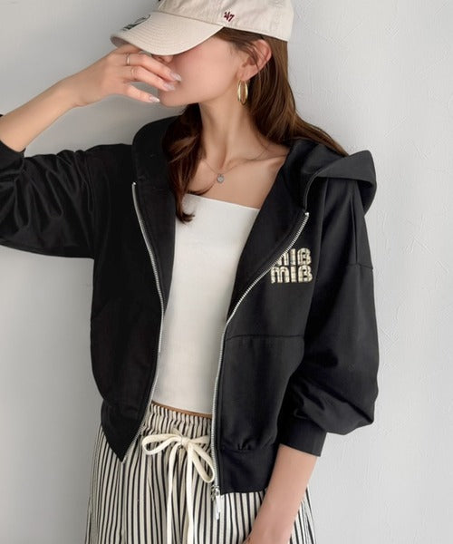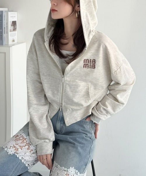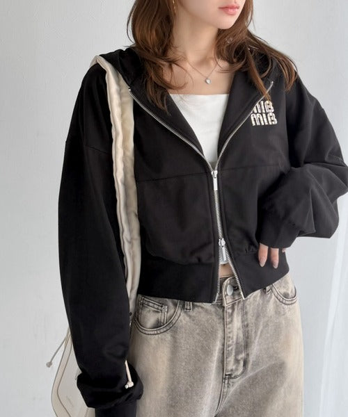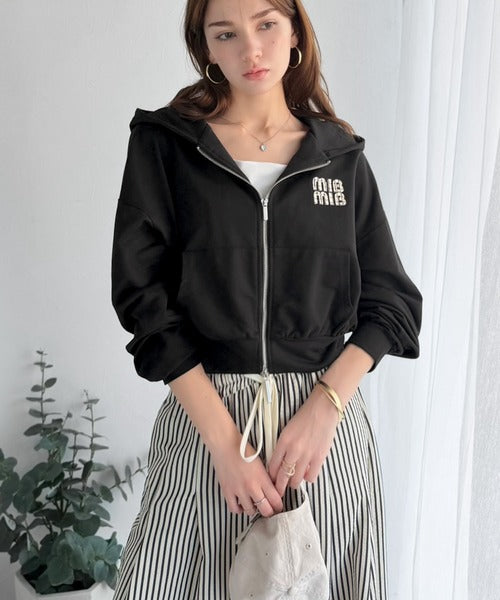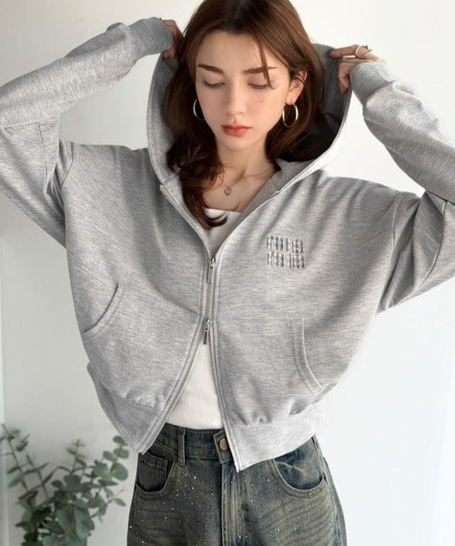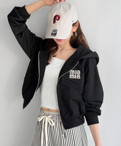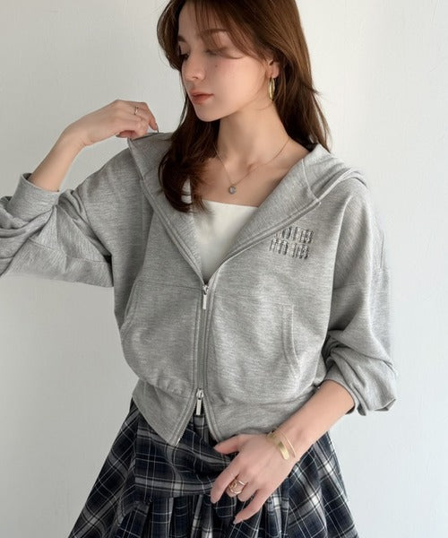 【mily bilet】1枚は持っておきたい!垢抜け必至。胸元ワッペン付きダブルジップパーカー(長袖) mi1329090