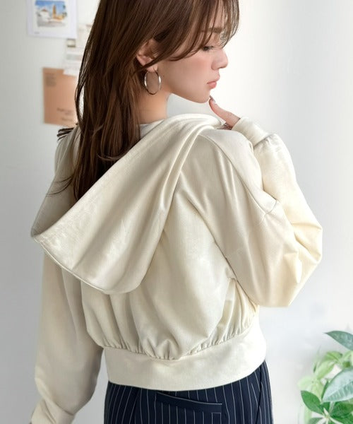 ふんわり軽い薄手素材が嬉しいトレンドのショート丈パーカー♪
