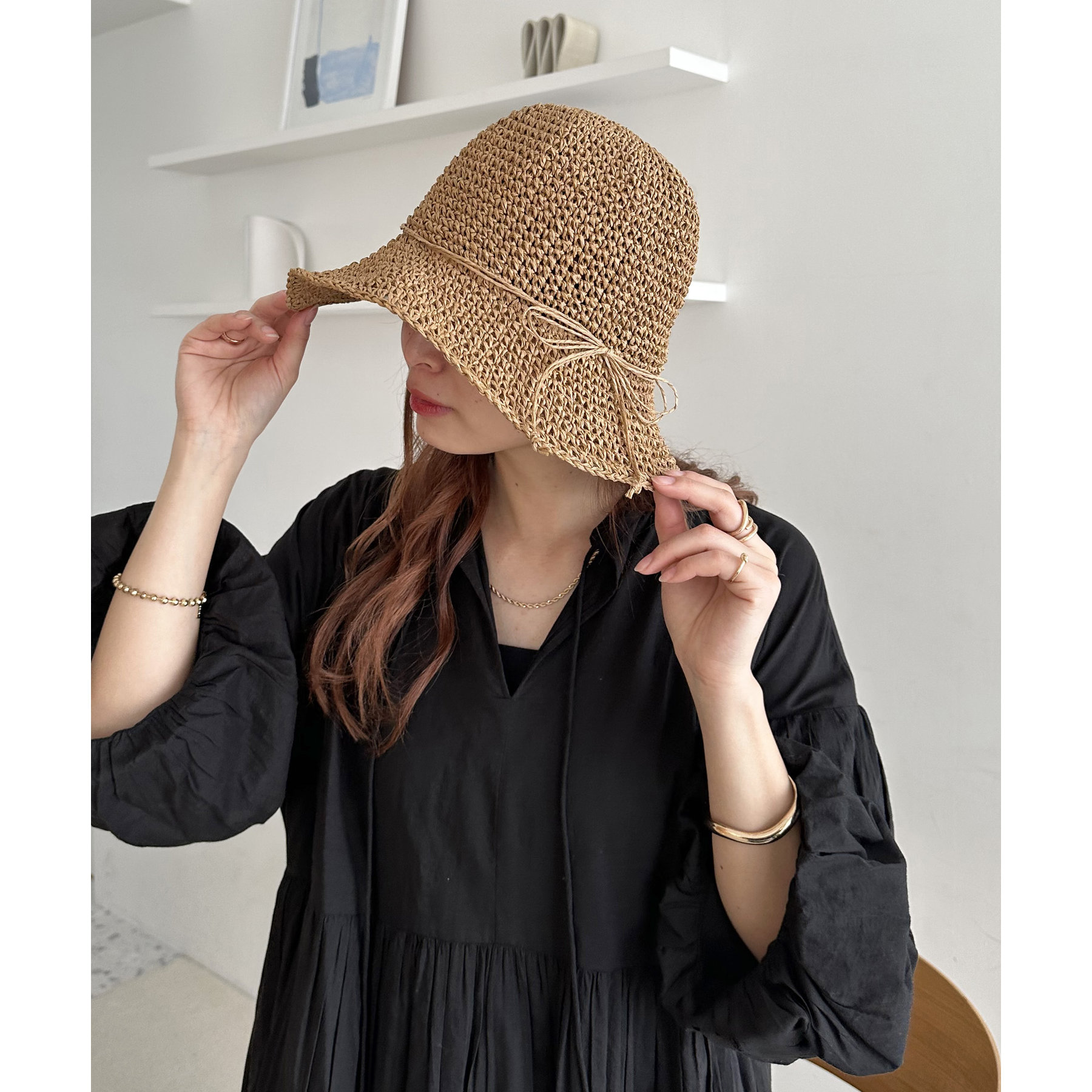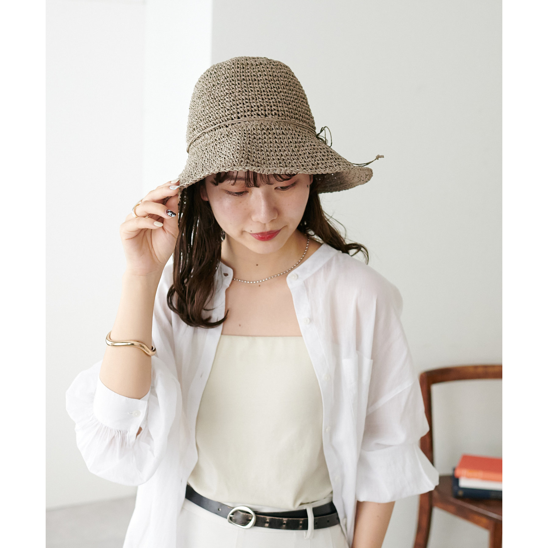 シンプルで使いやすい、細編みデザインのペーパーハット。無駄のないすっきりとしたフォルムが、ナチュラルな大人の装いにぴったりです。どんなコーデにもなじみやすい無地のデザインで、ワンピースやTシャツスタイルにも、さりげなく季節感をプラス◎