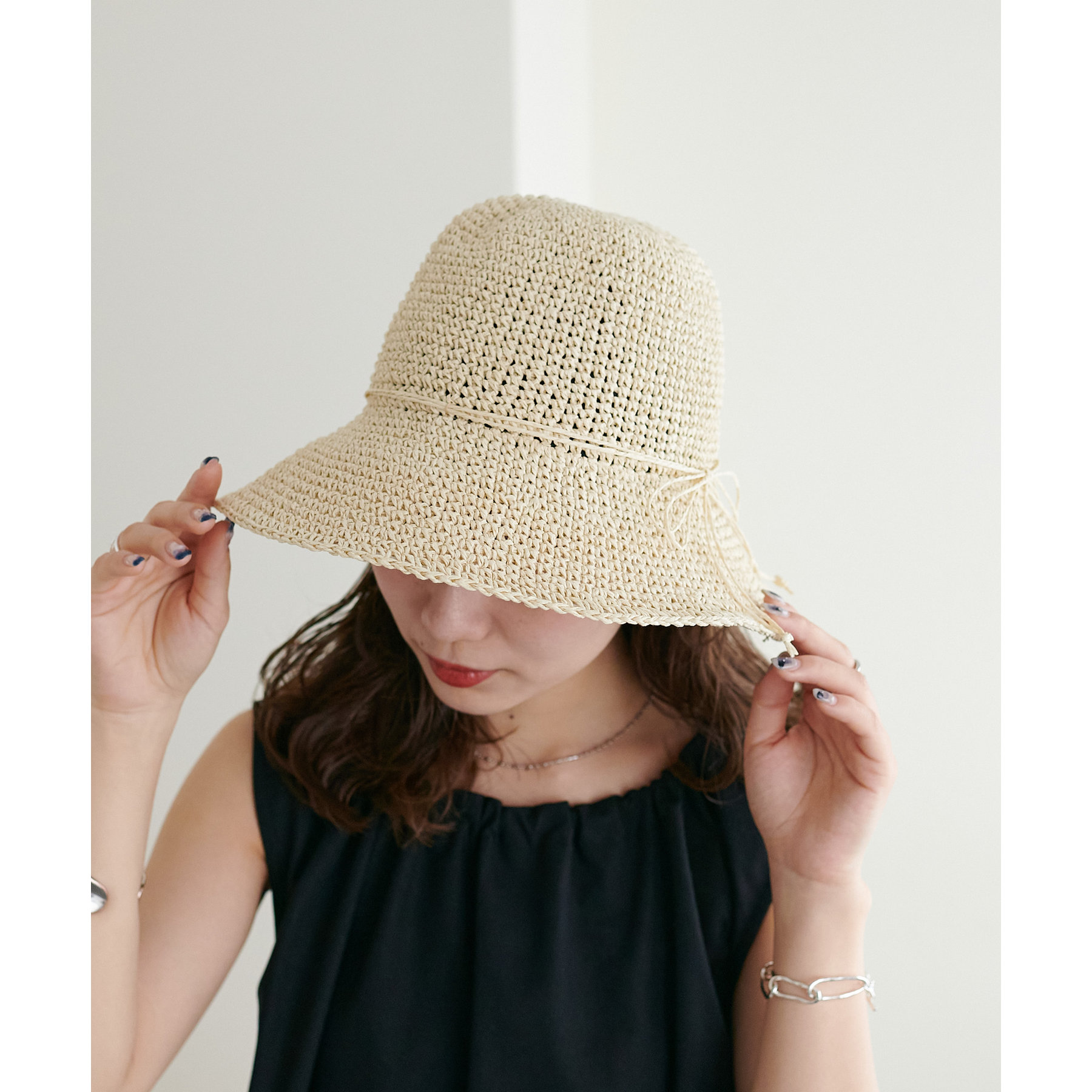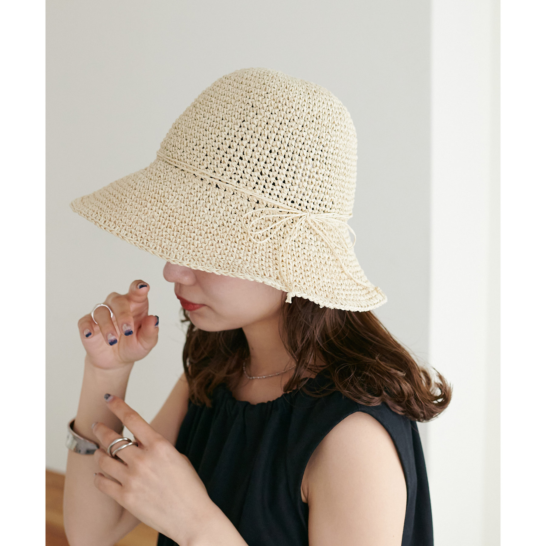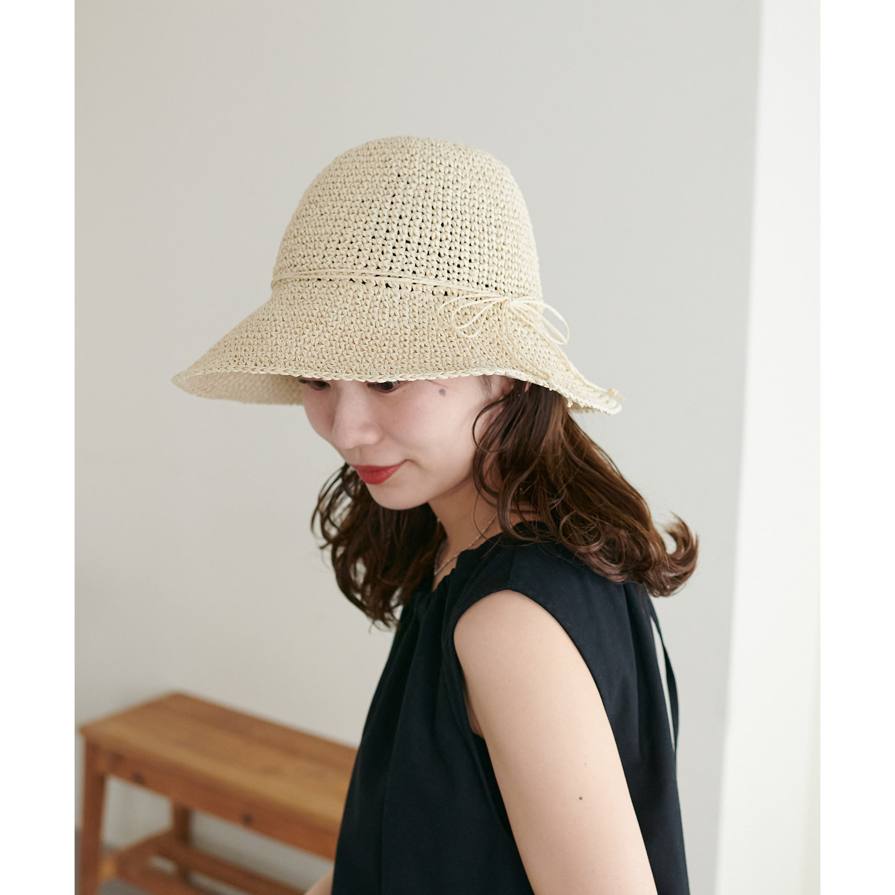 夏コーデにぴったりな、大人かわいい細編みペーパーハット。