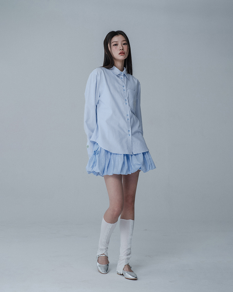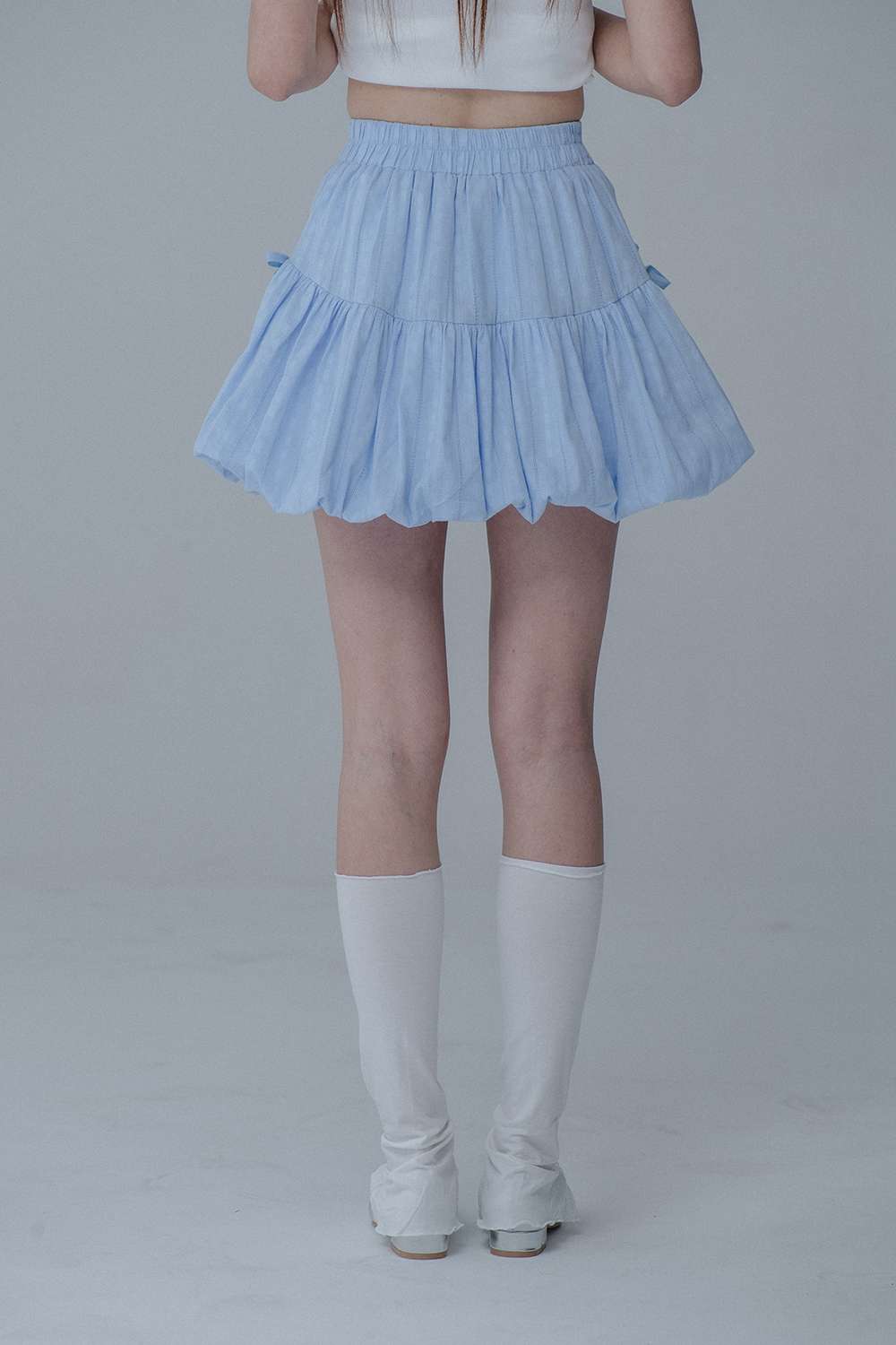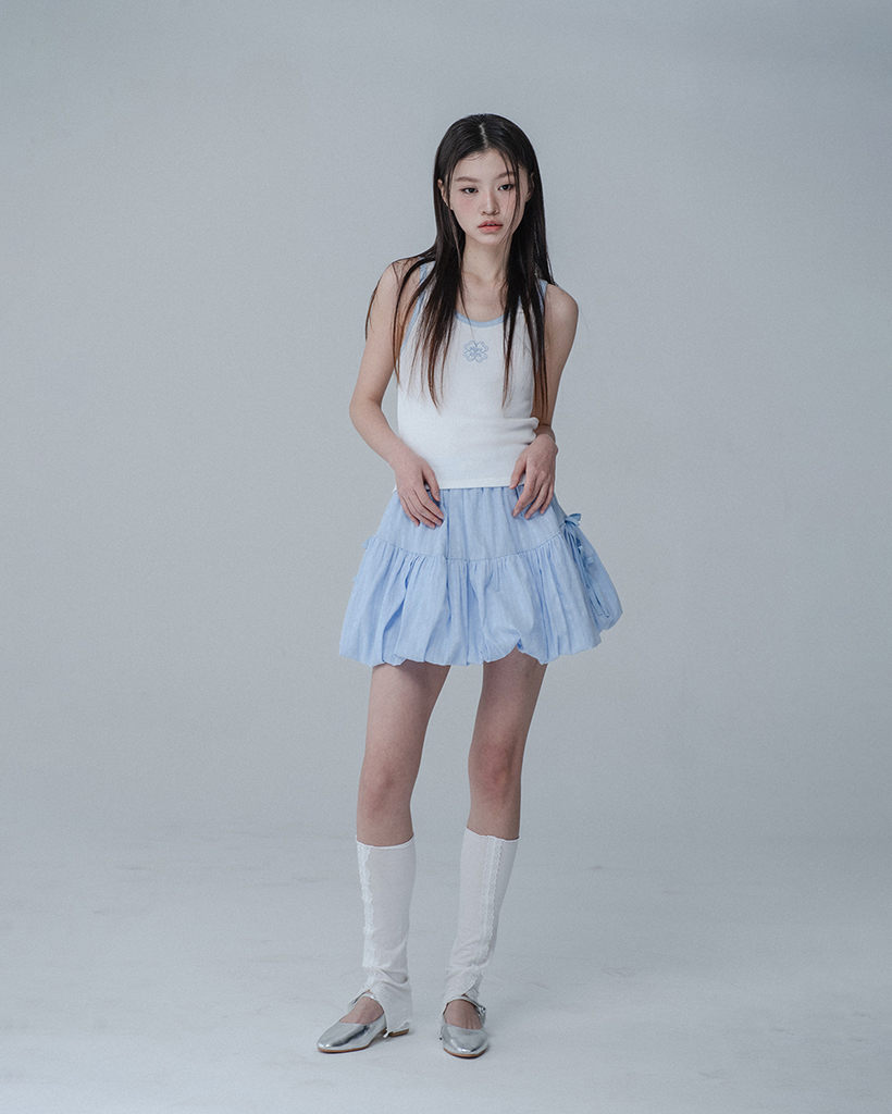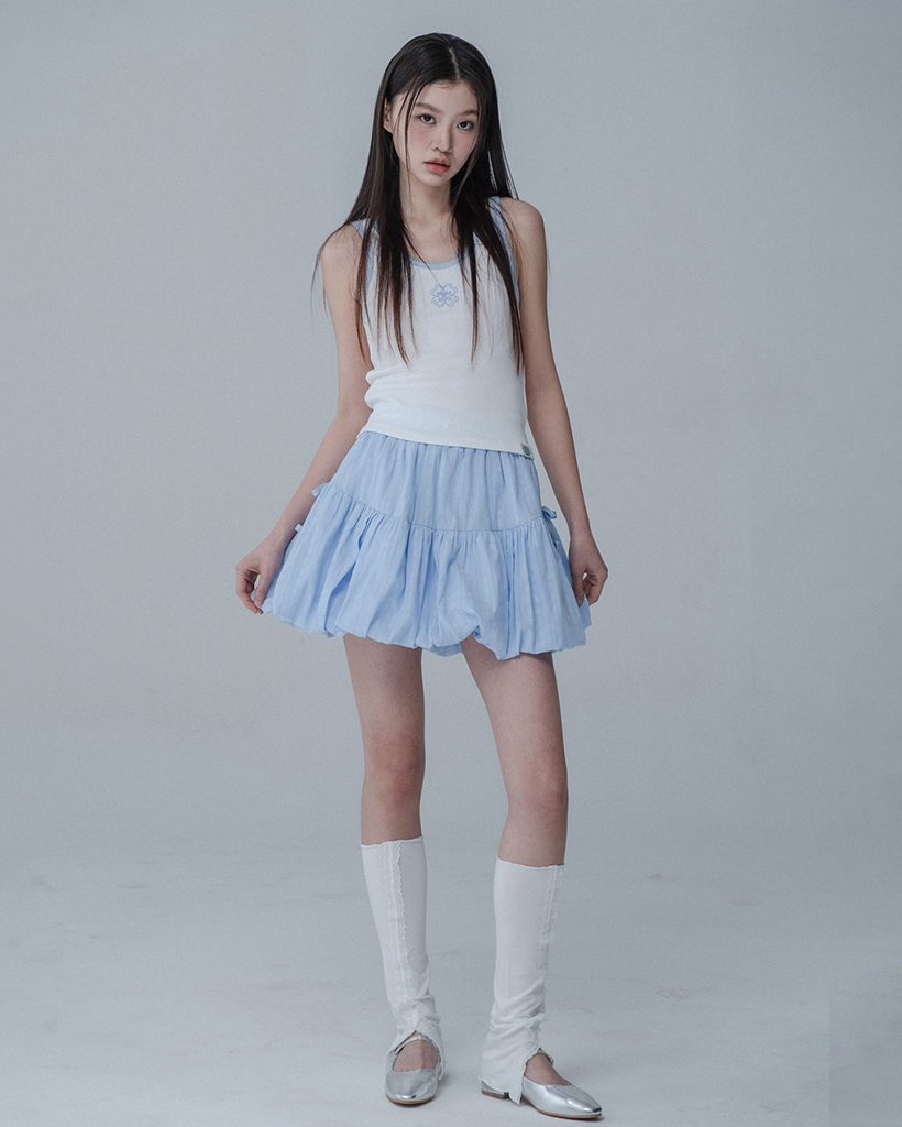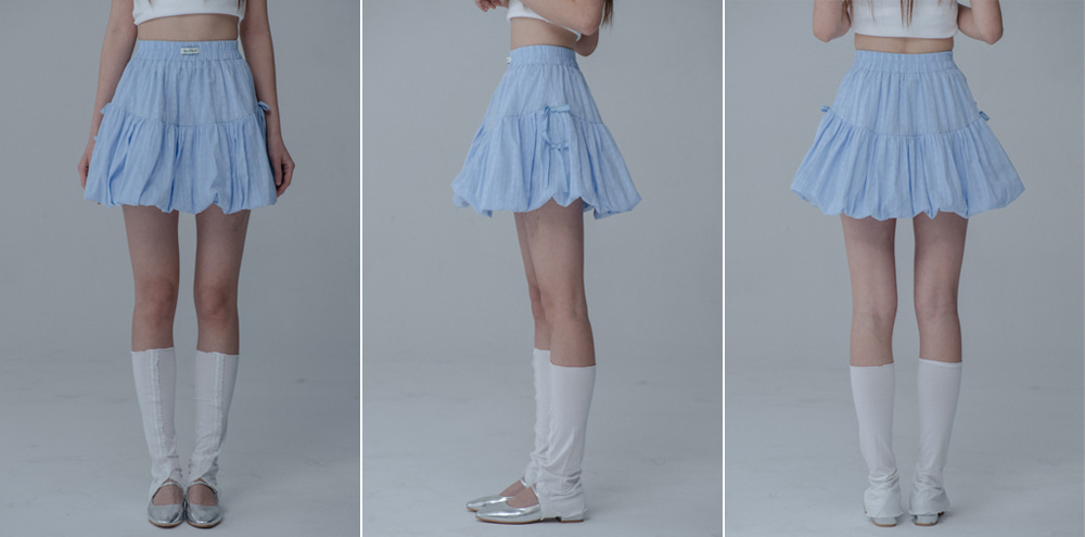 BALLOON RIBBON BANDING SKIRT PANTS_SKY BLUE