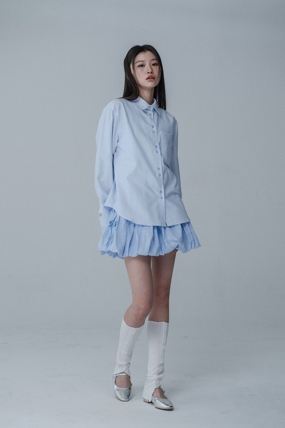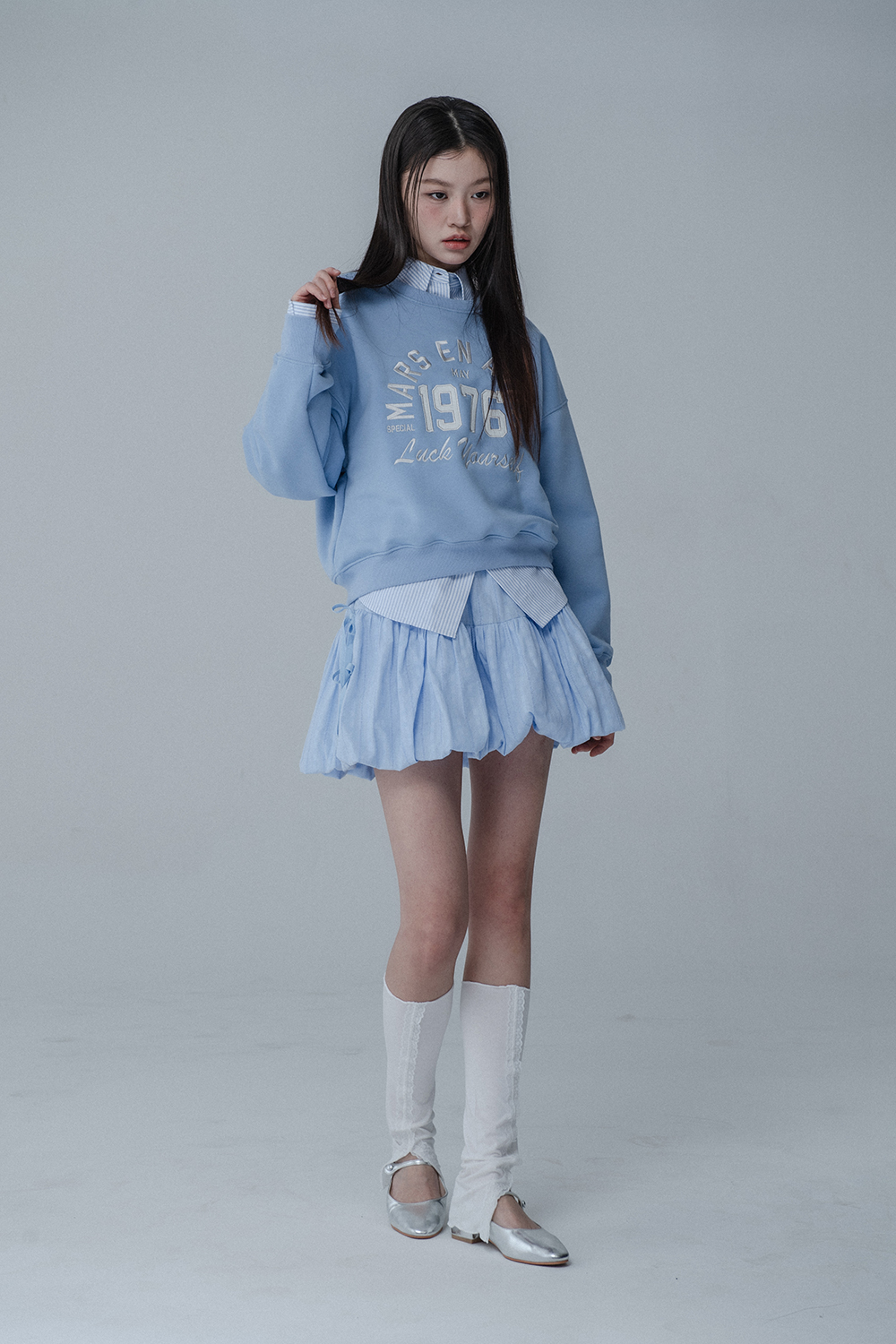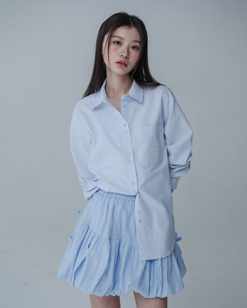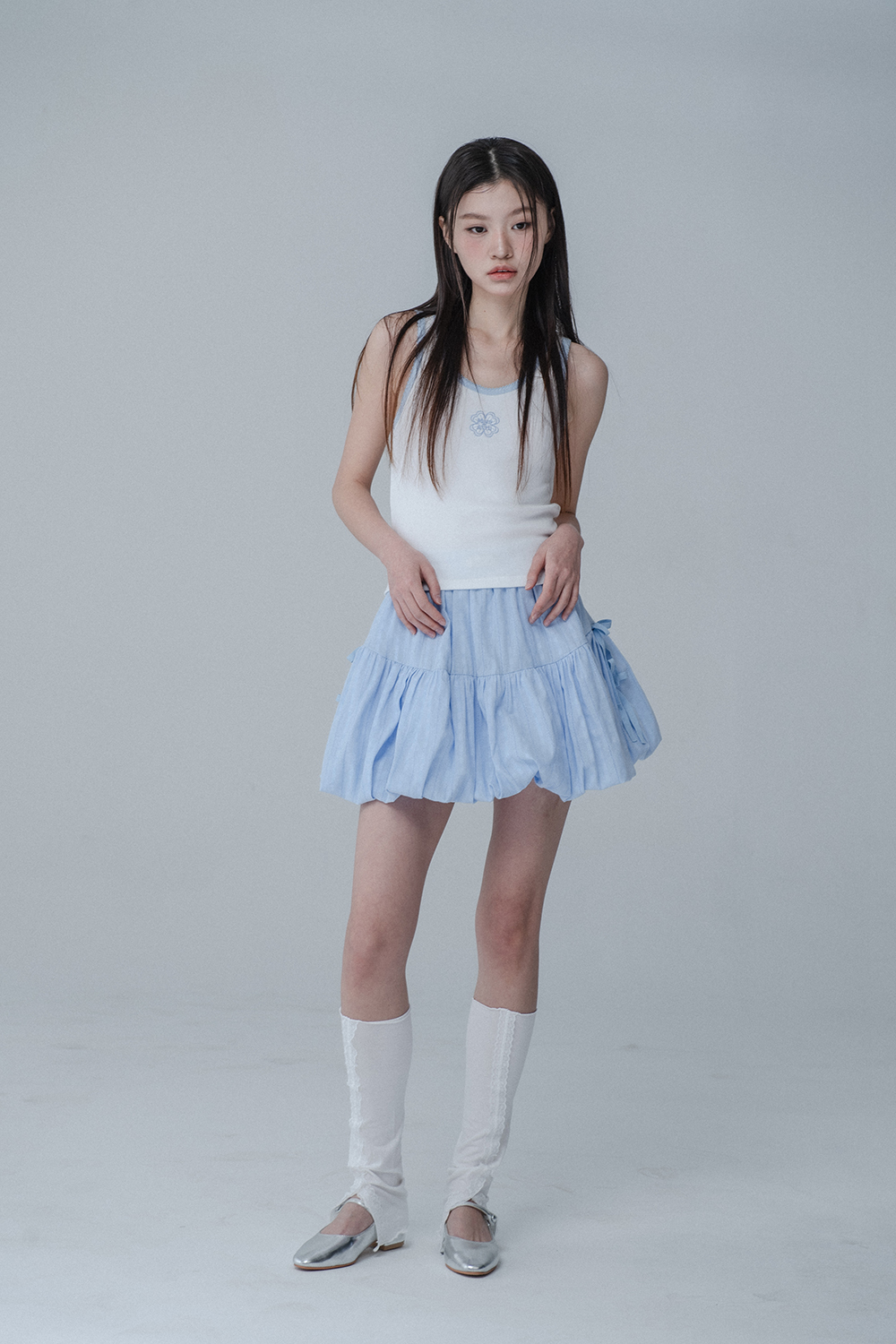BALLOON RIBBON BANDING SKIRT PANTS_SKY BLUE