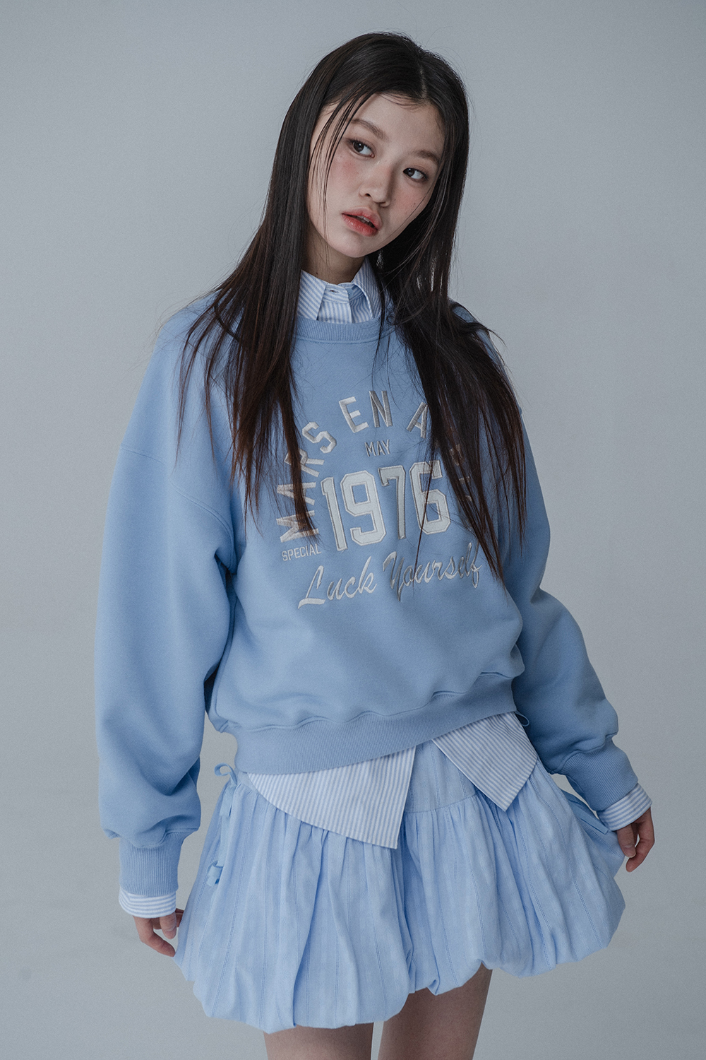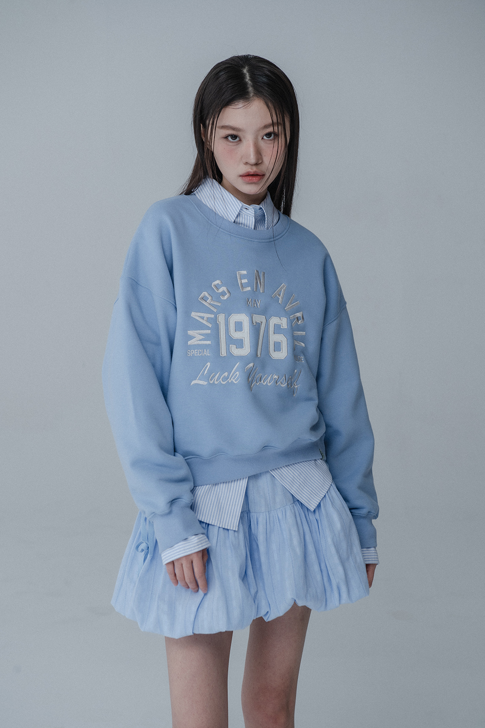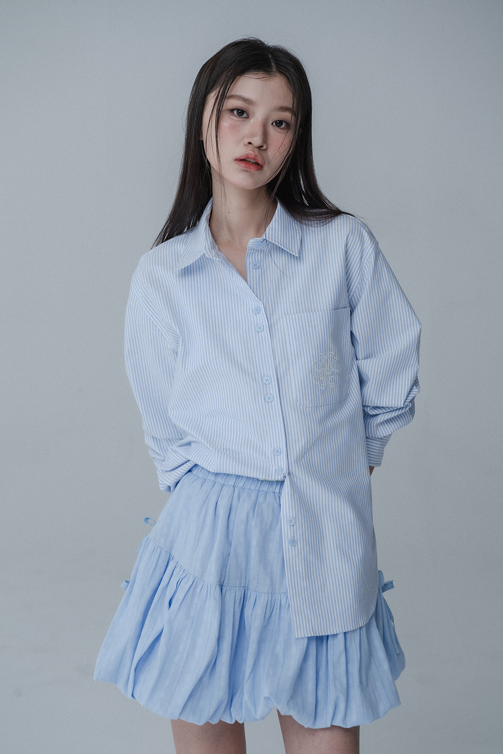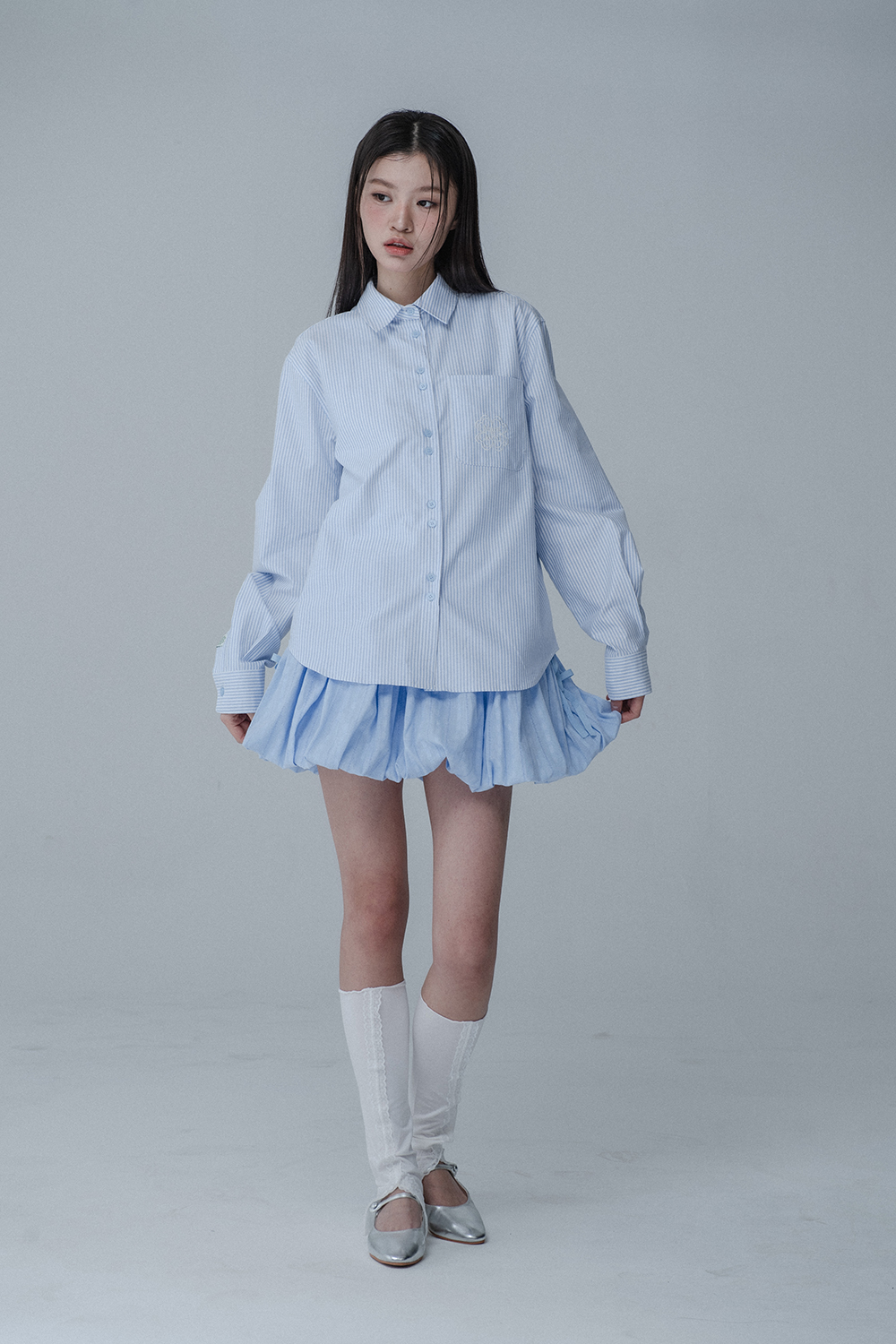 BALLOON RIBBON BANDING SKIRT PANTS_SKY BLUE