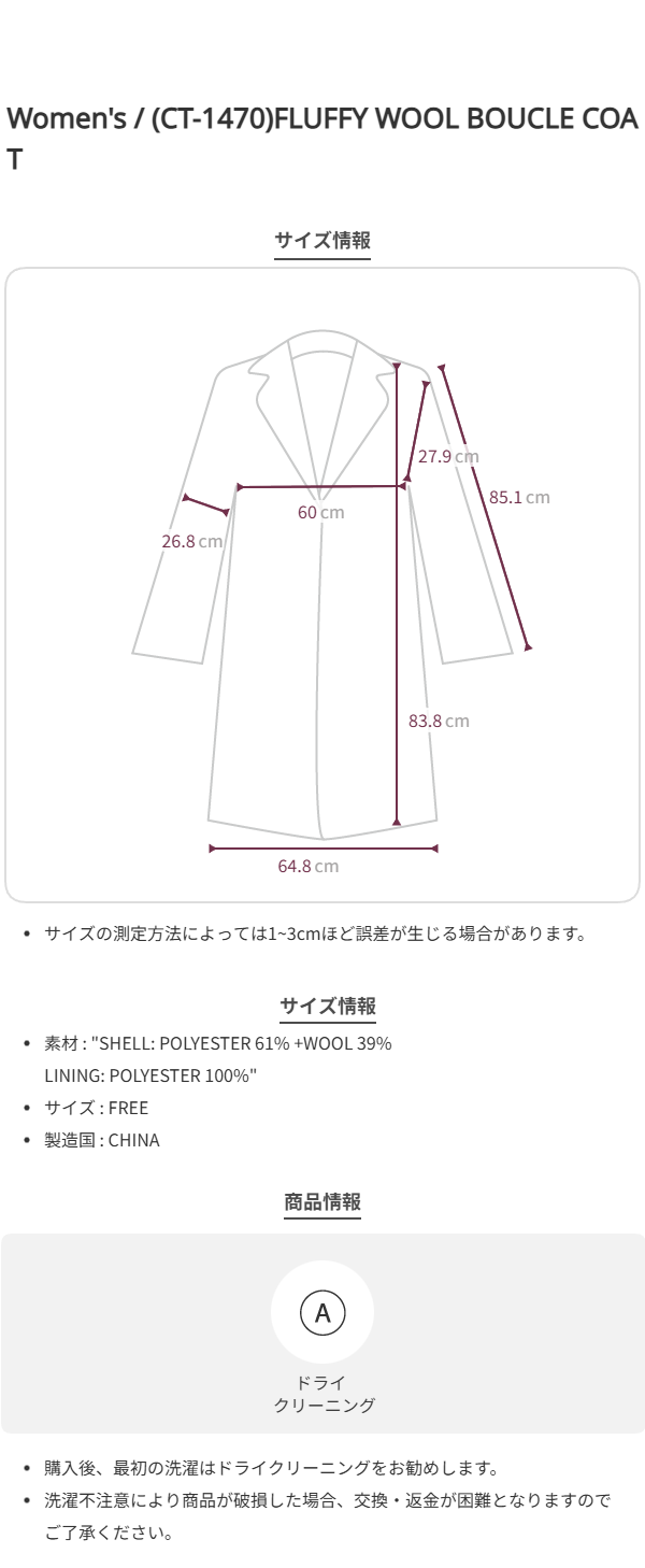 [yang x Atelier Nain] (CT-1470)FLUFFY WOOL BOUCLE COAT