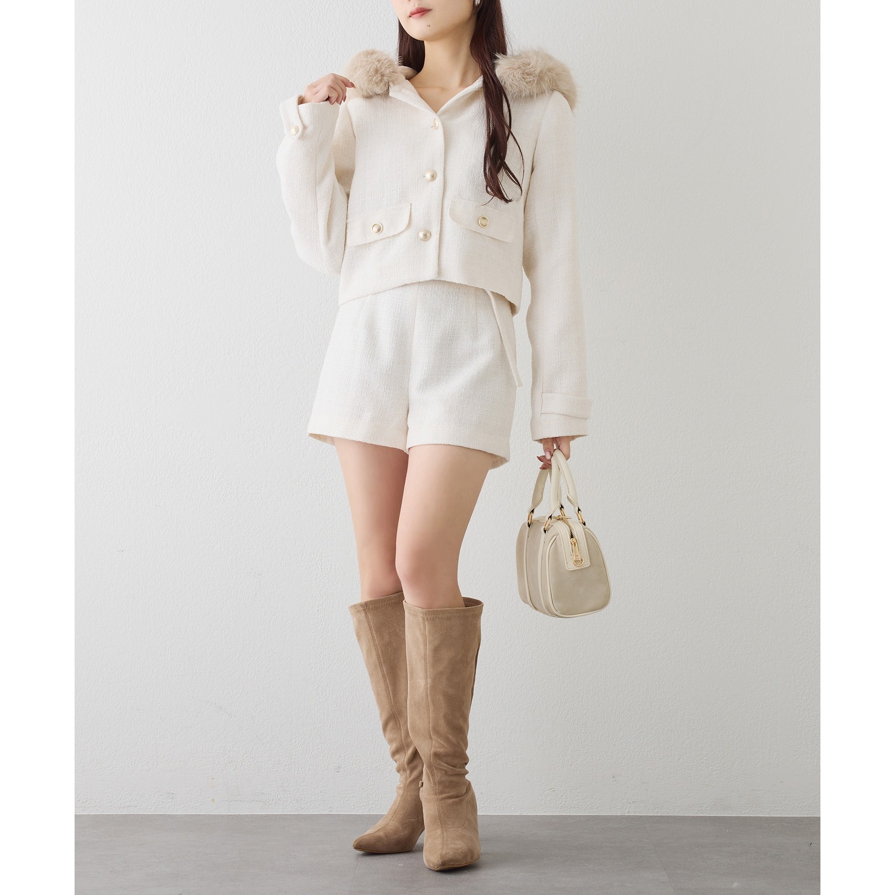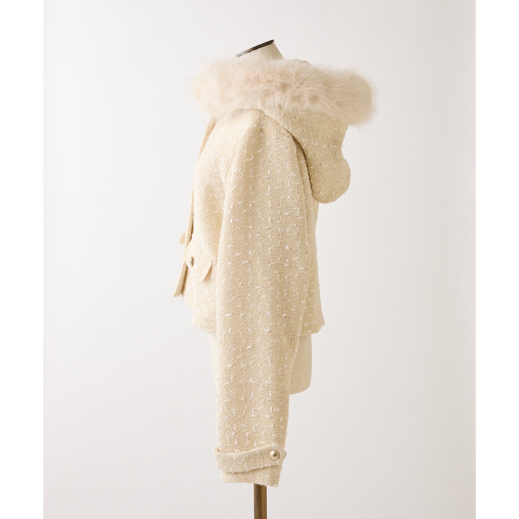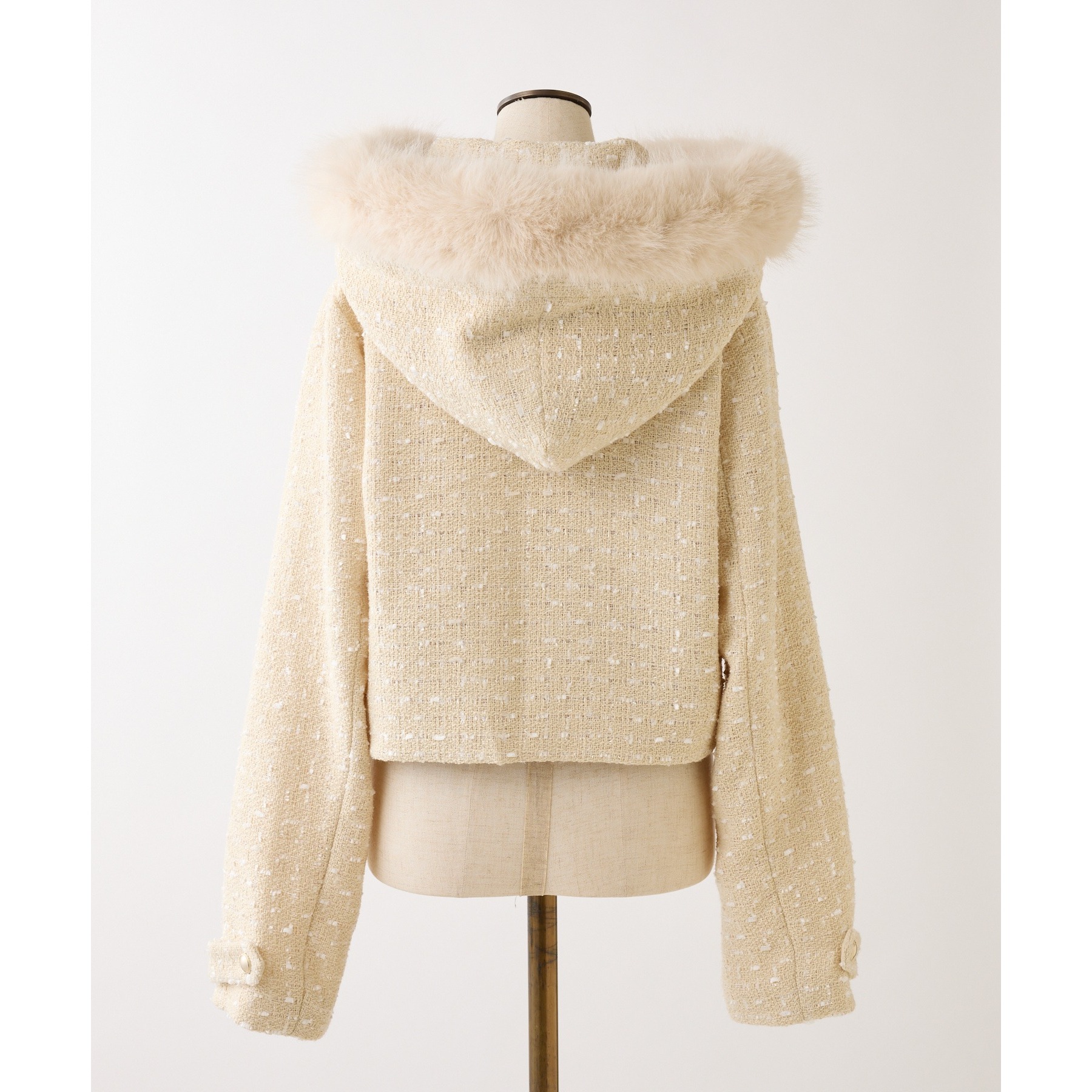 フェイクファーフード付きツイードジャケット【セットアップ可能】