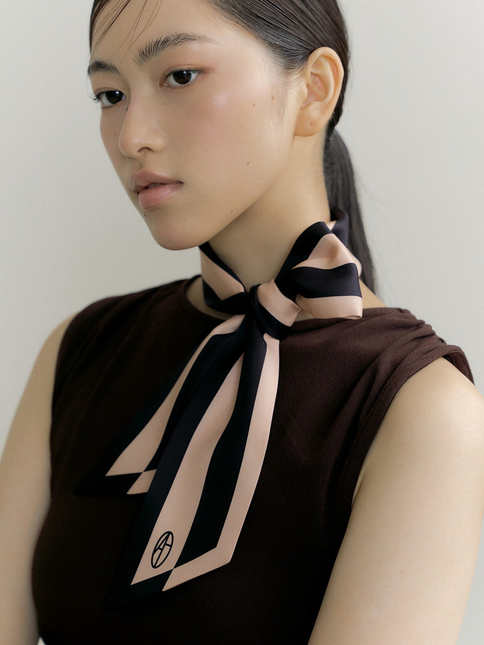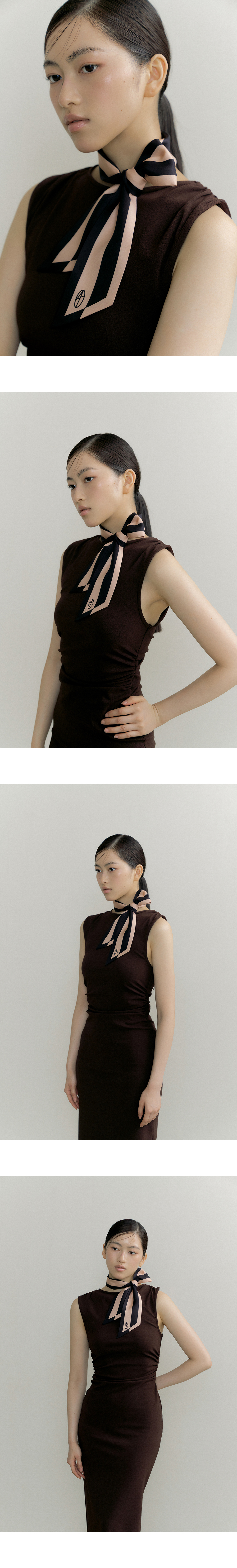 Frame Long Twilly Silk Scarf - Black/Beige