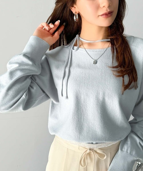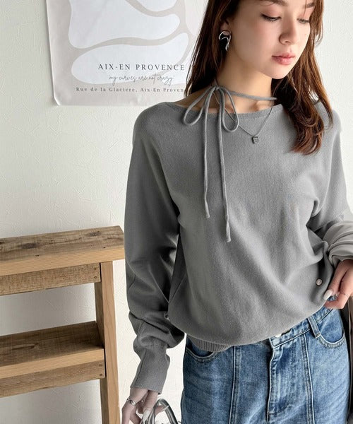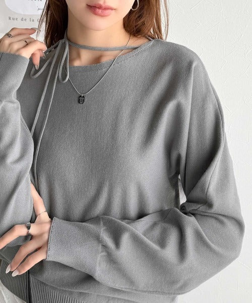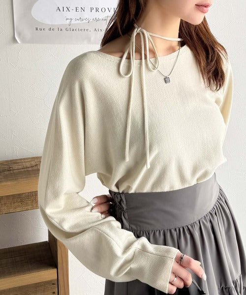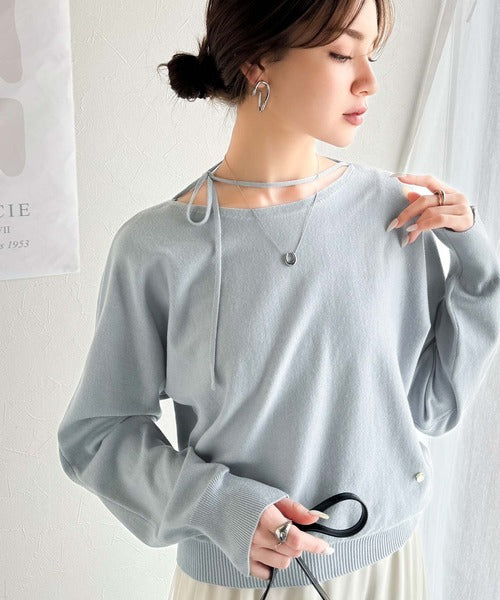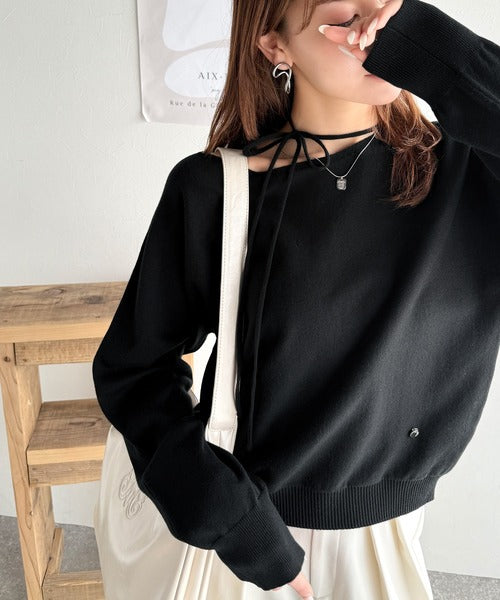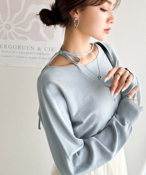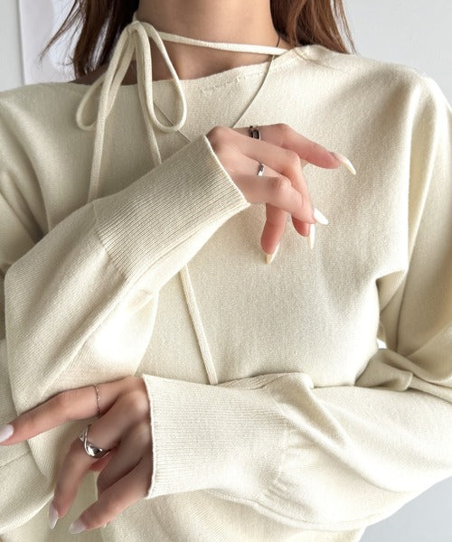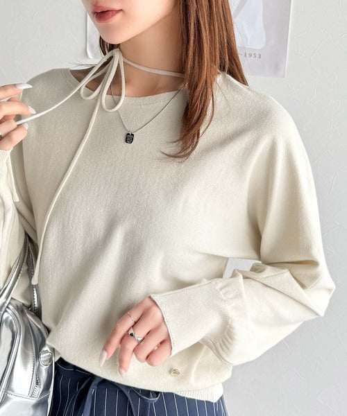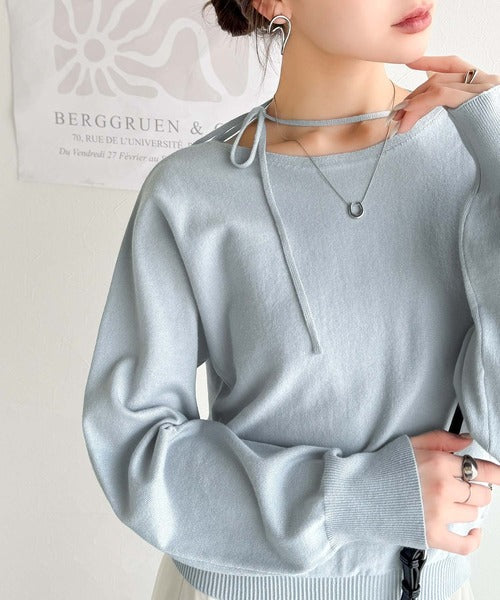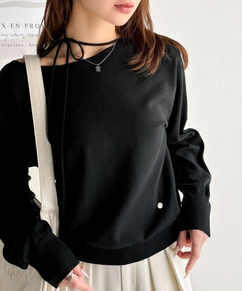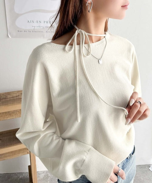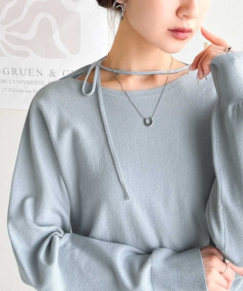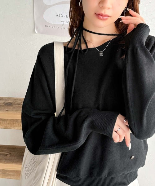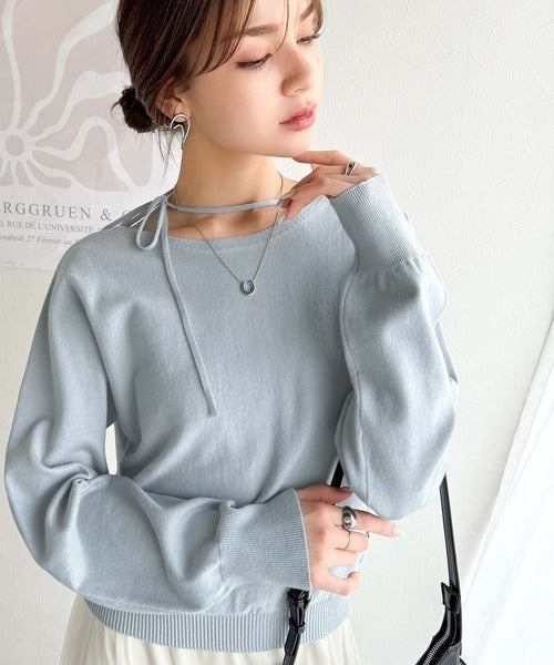 【mily bilet】レディライクなあざとニット。オフショル2WAYリボン紐付きニットプルオーバー mi1029112