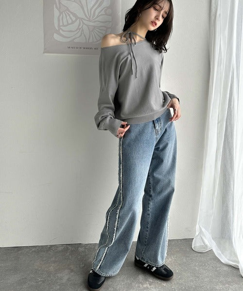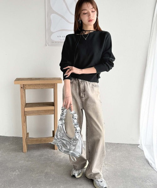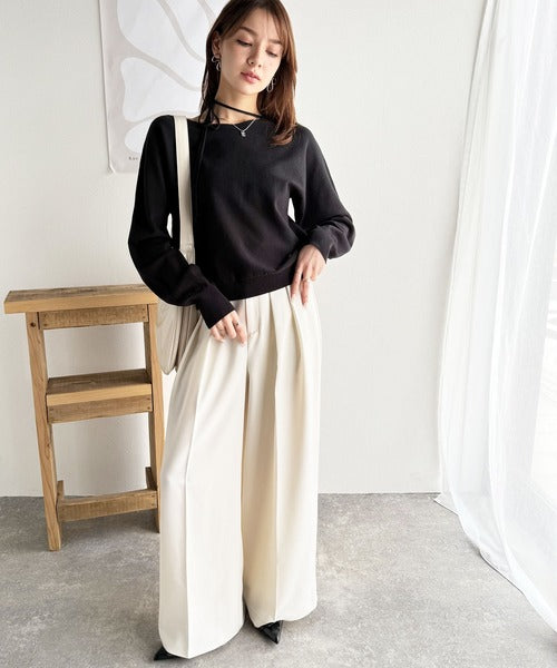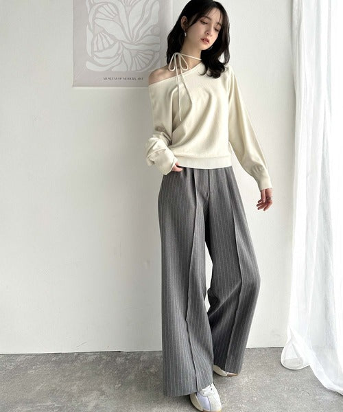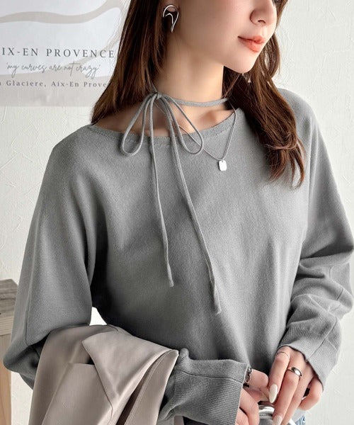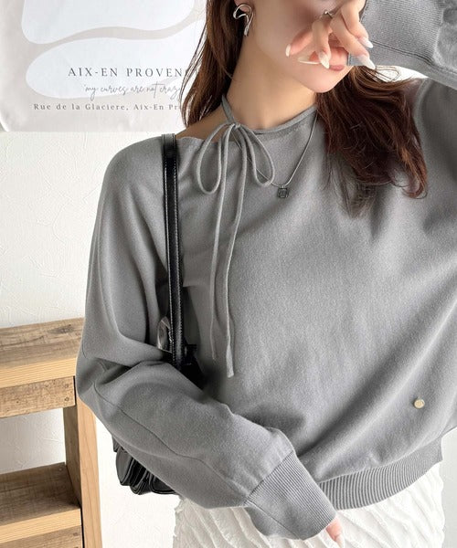 首元が広めのデザインなのでオフショルダーとしても着用できます。