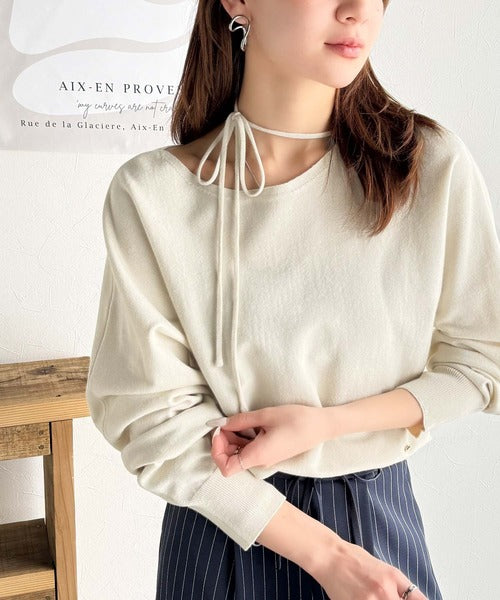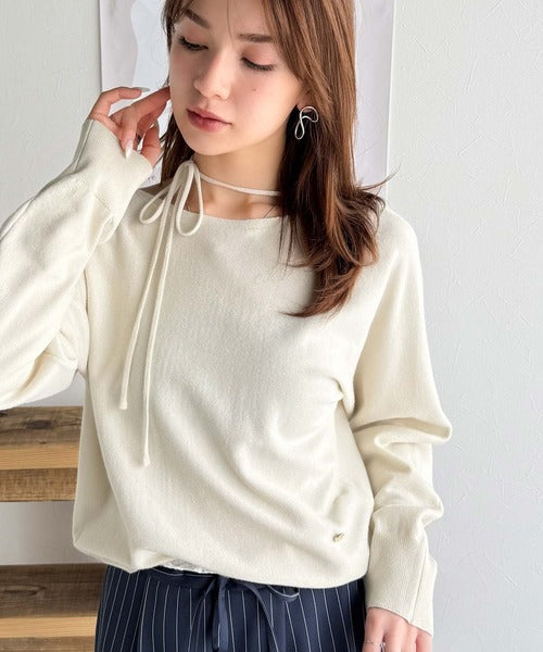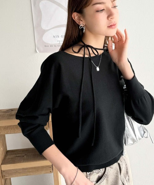 女性らしさ満点のリボンデザインがポイントのドルマンニット。