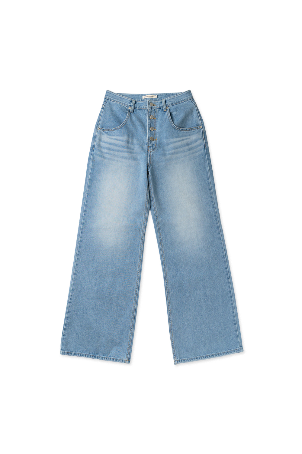 特徴的なディテールを主役に、ワイドでヴィンテージライクなシルエットに仕上げ、自然なウォッシュ加工を施したライトブルーカラーが軽やかでリラックスした雰囲気を演出します。