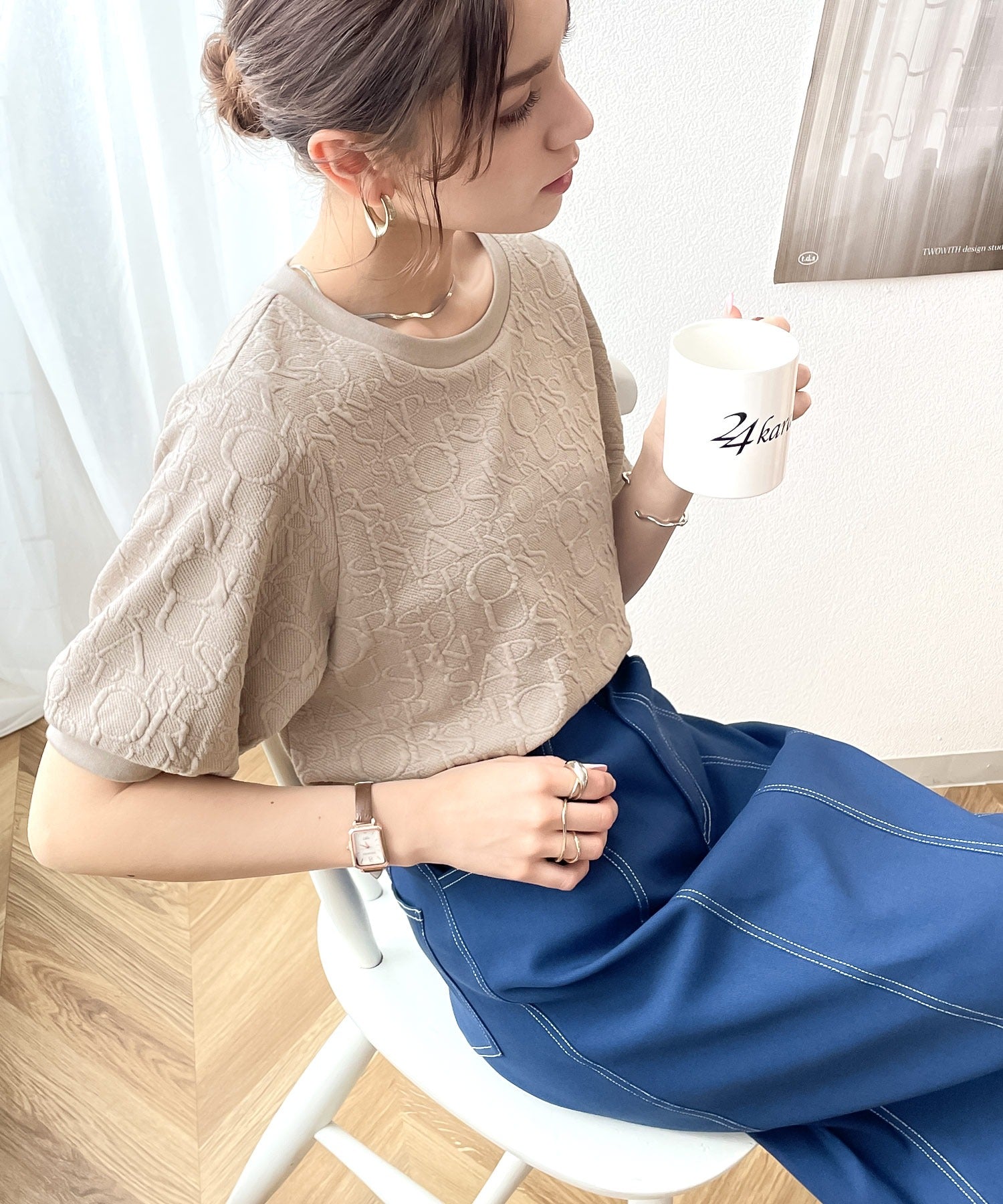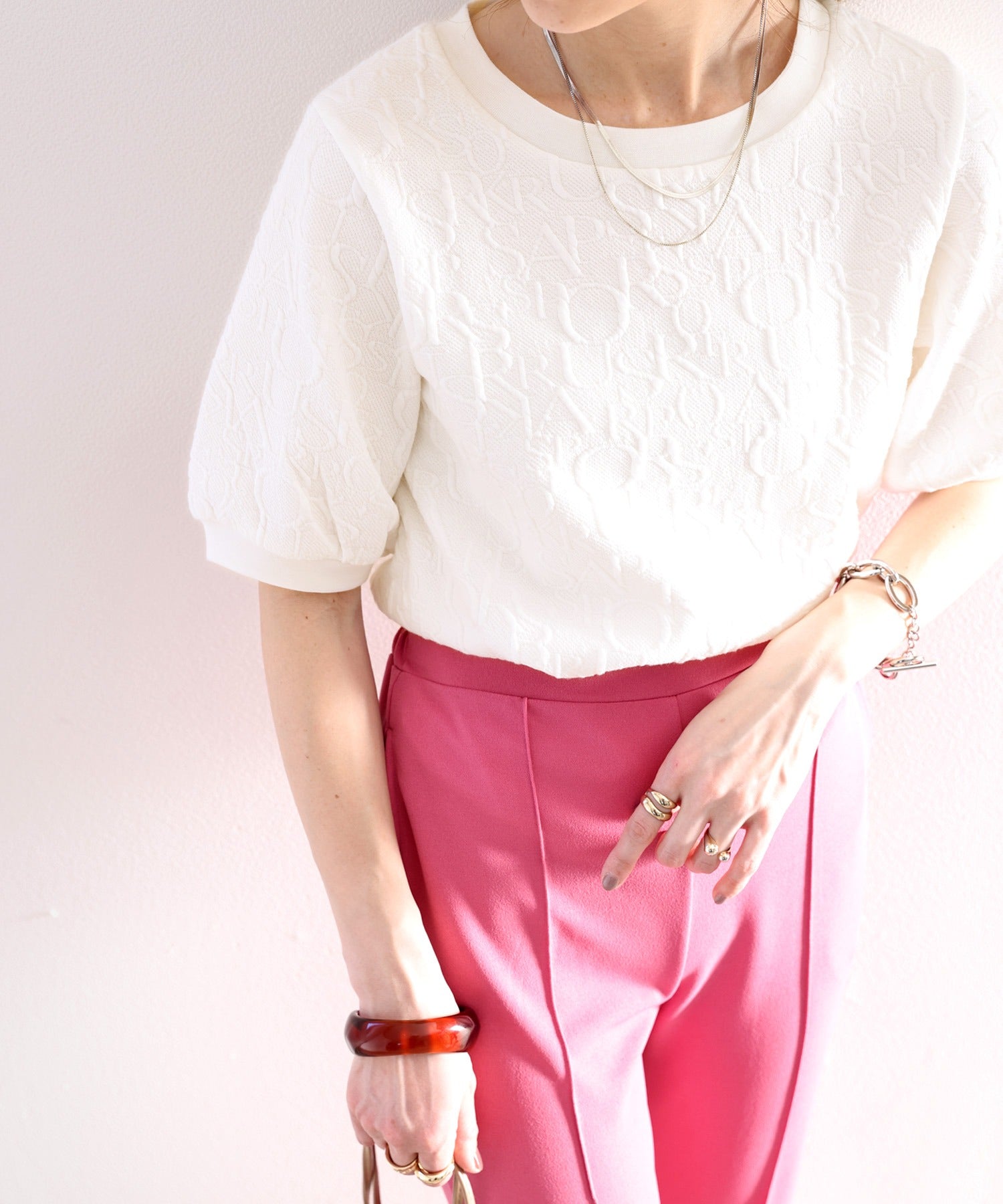 半袖のポワン袖が抜け感増し。