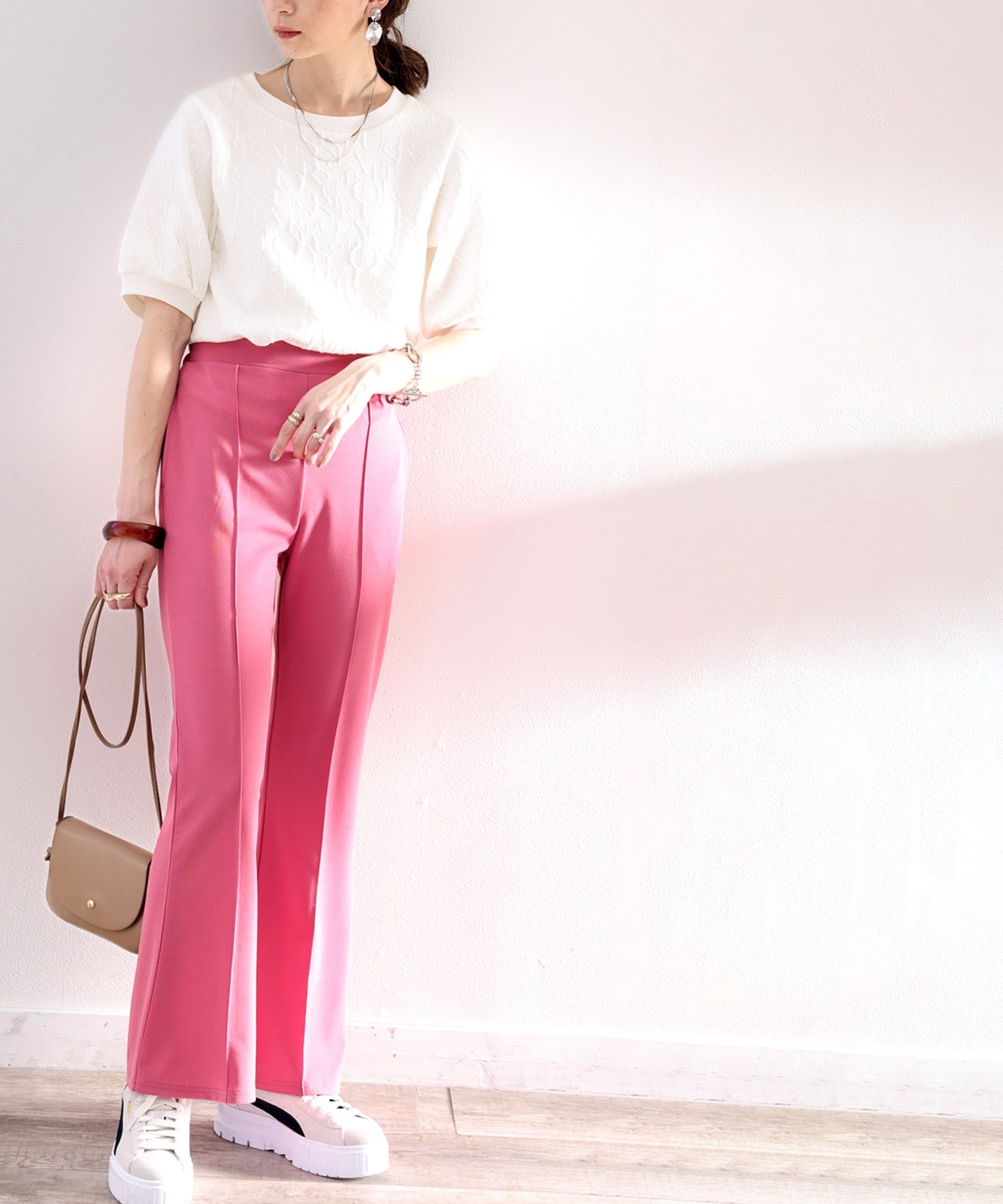 印象的なトップスだから、ボトムスは選ばずにどんなコーデにも合う優れもの。