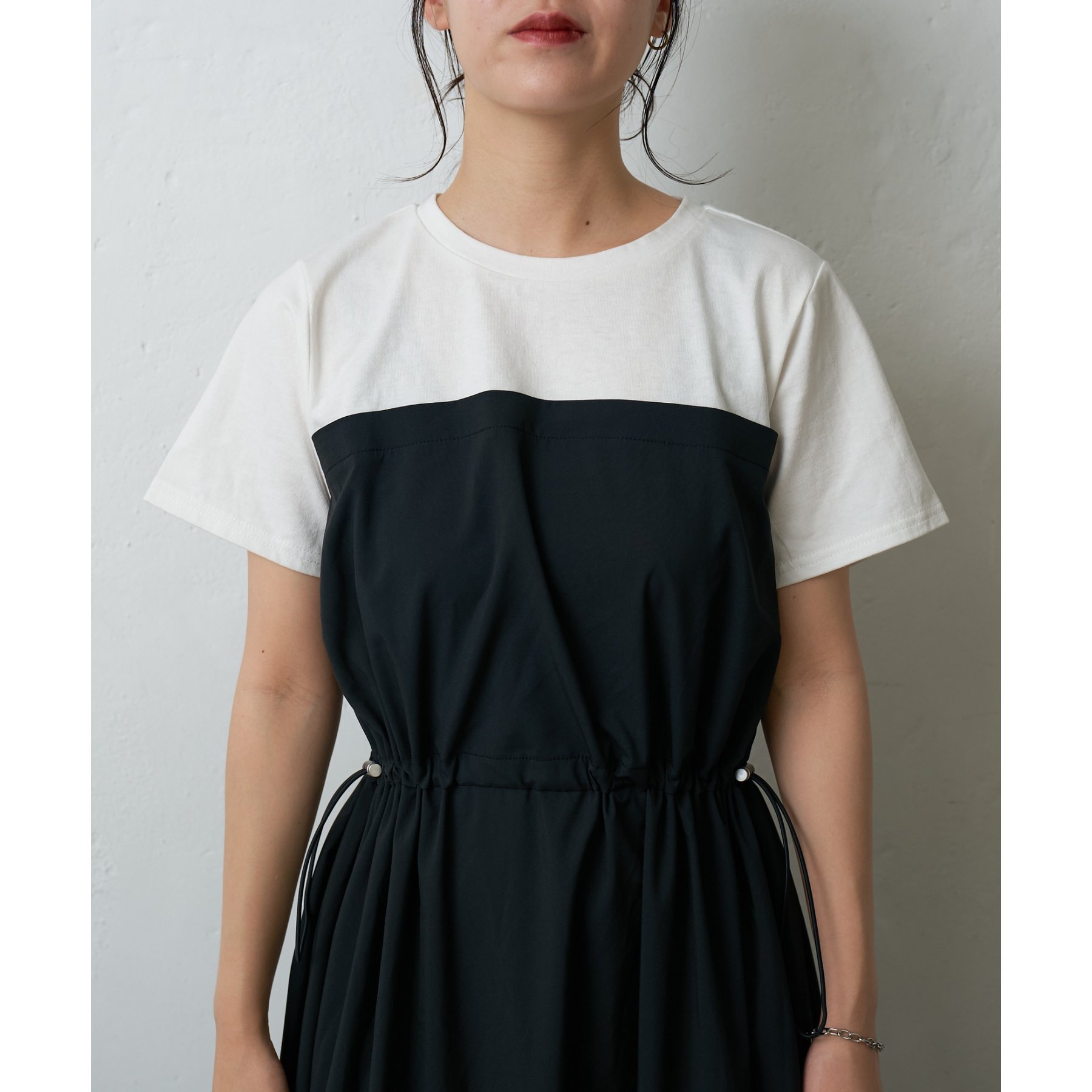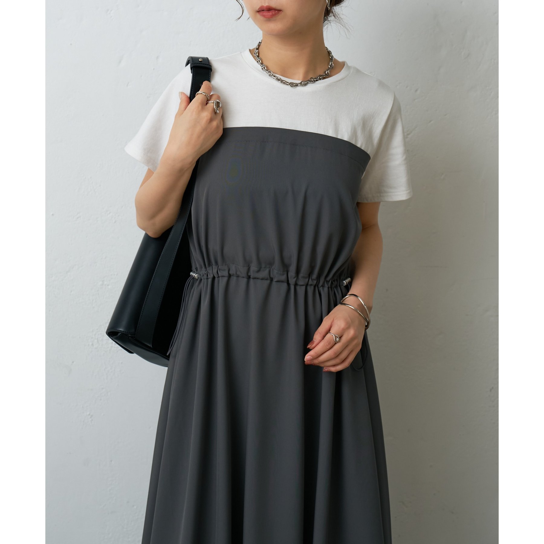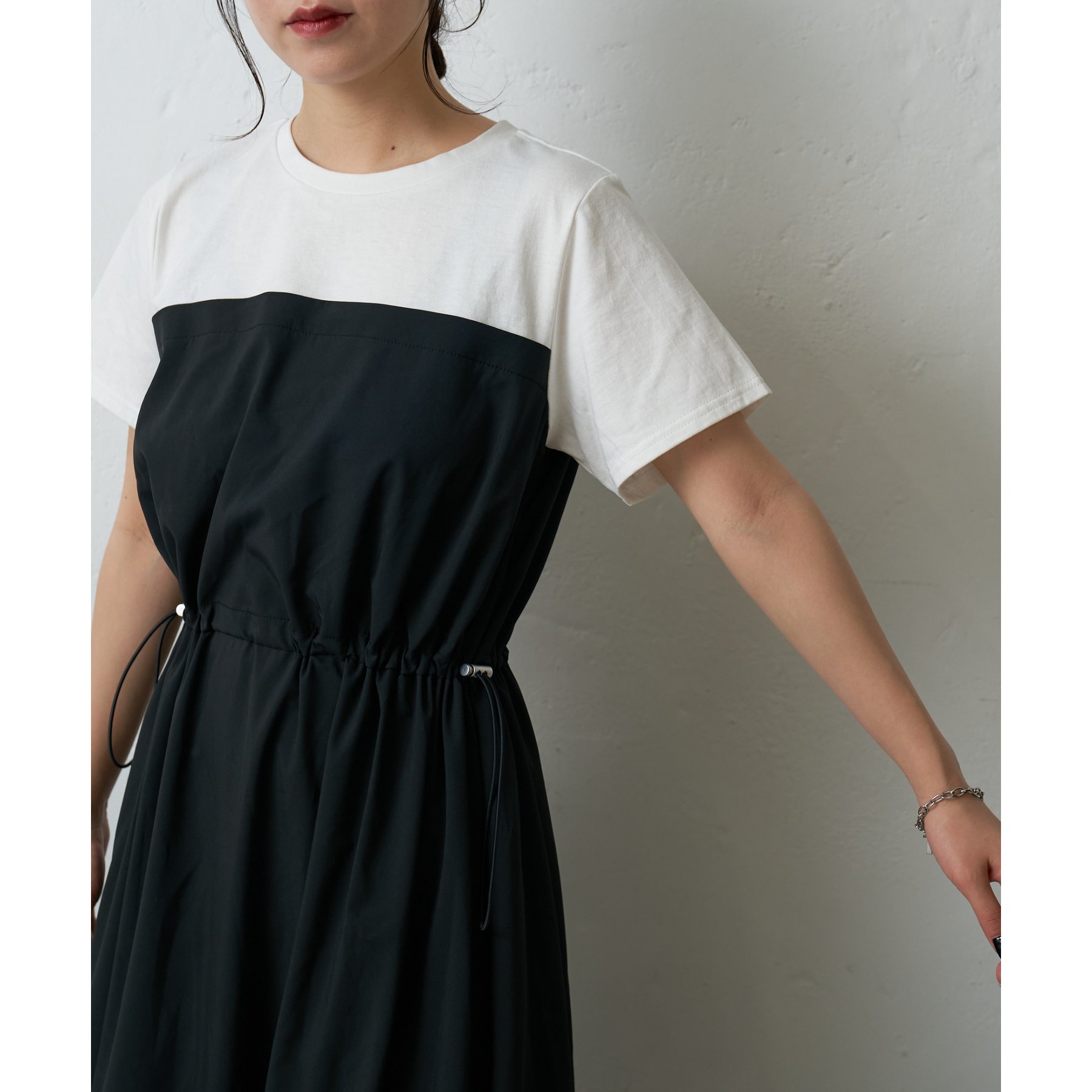 トップスとスカートを組み合わせたドッキングデザインが目を引くワンピース。