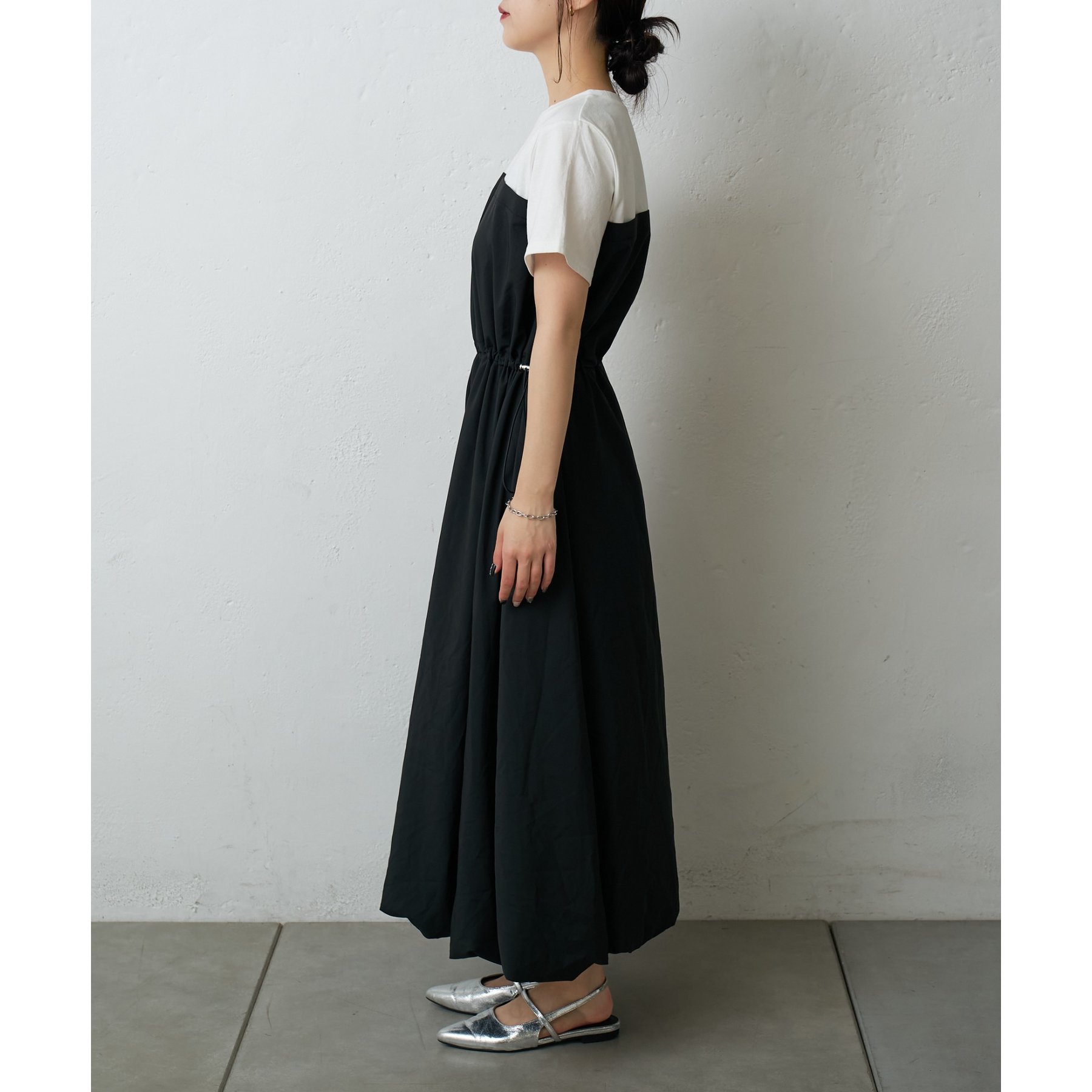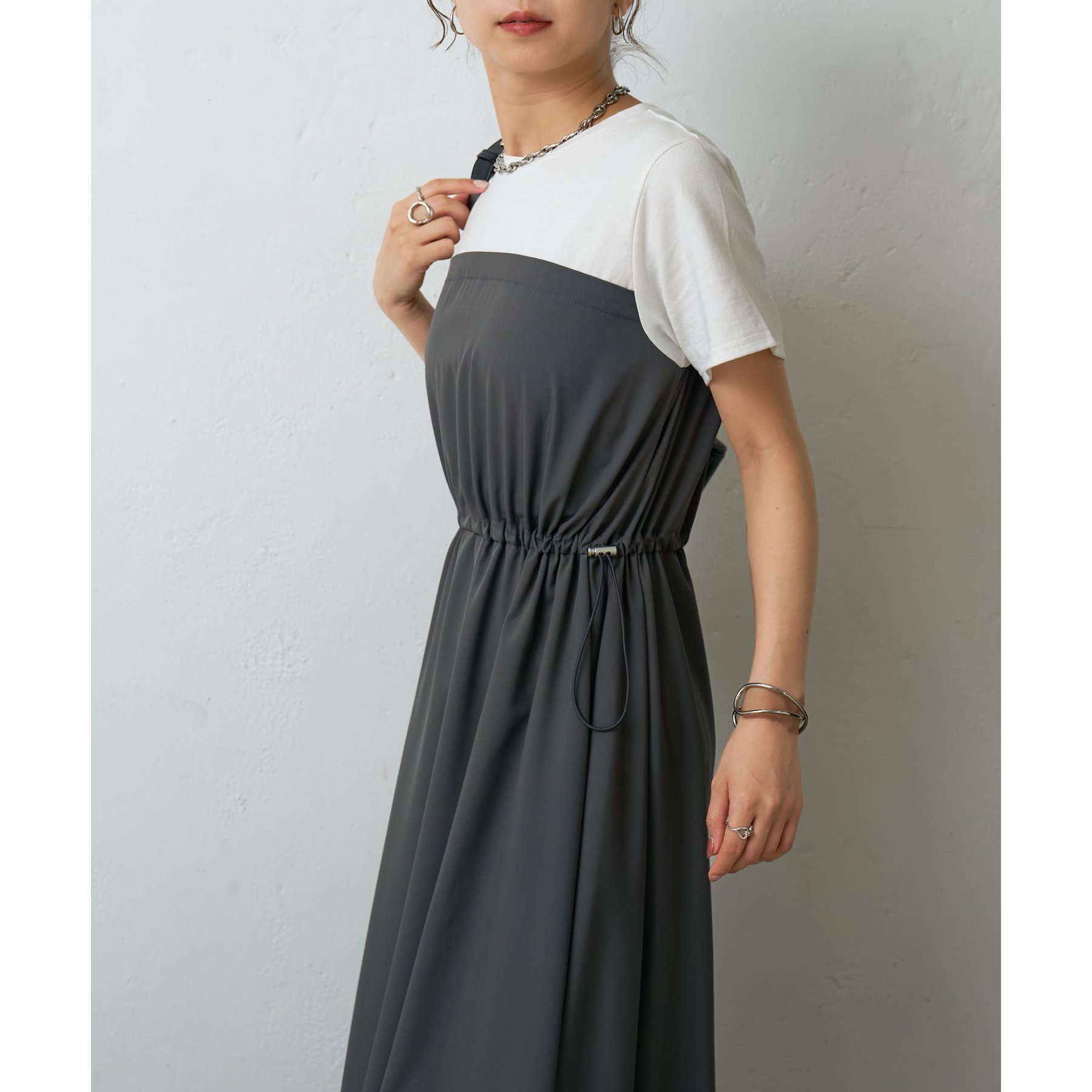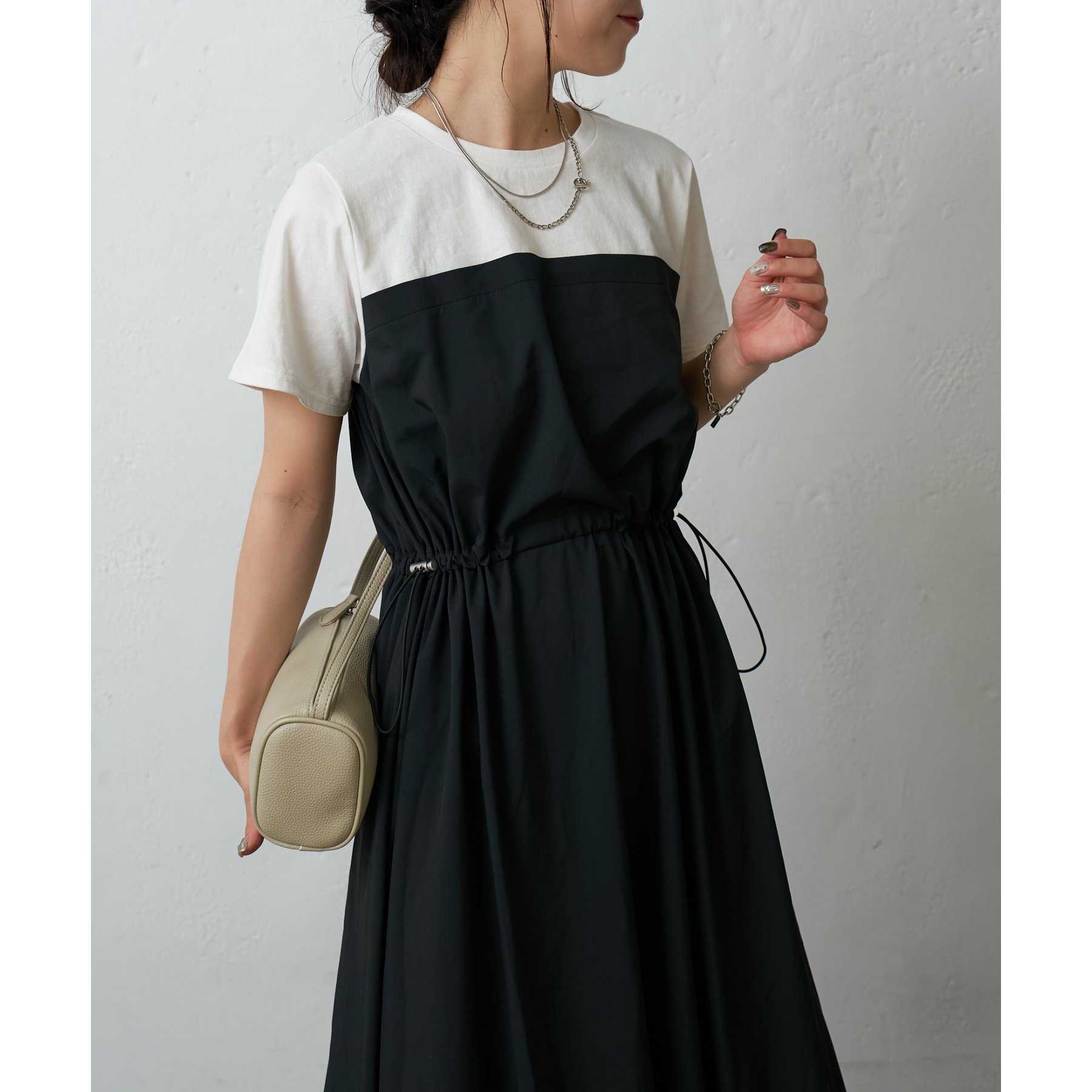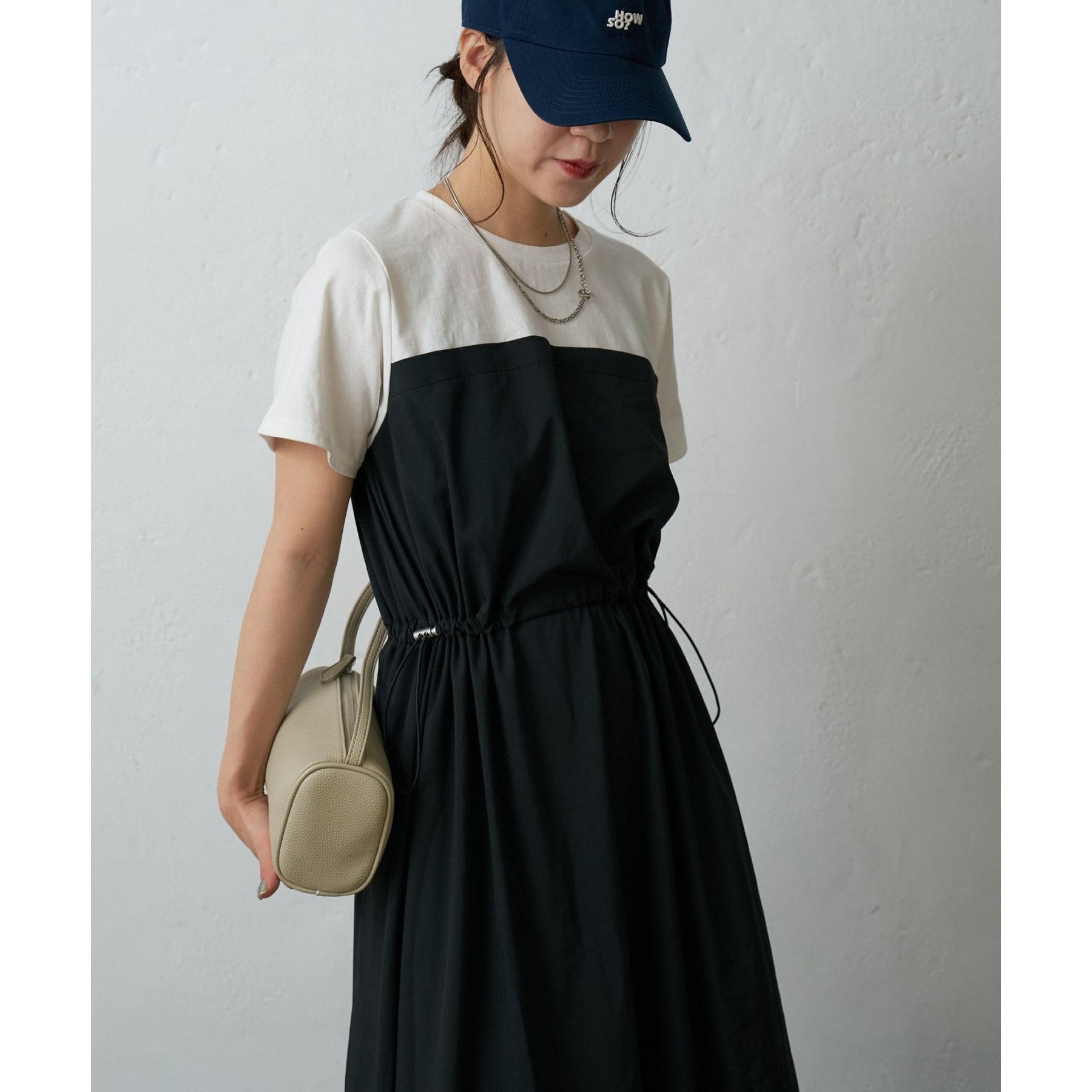 トップスとスカートを組み合わせたドッキングデザインが目を引くワンピース。