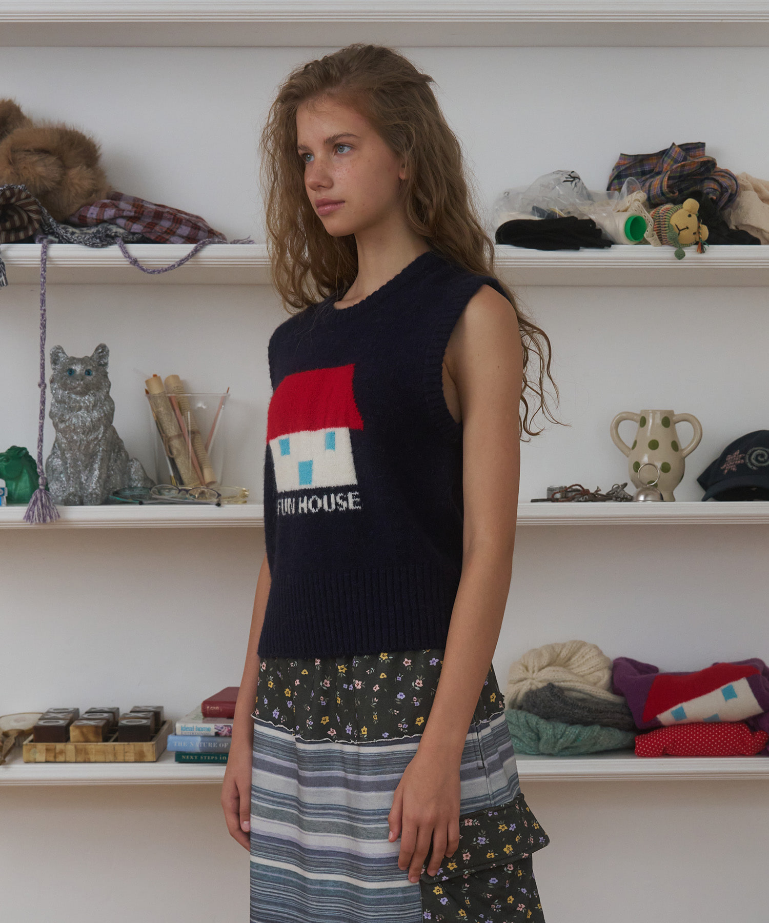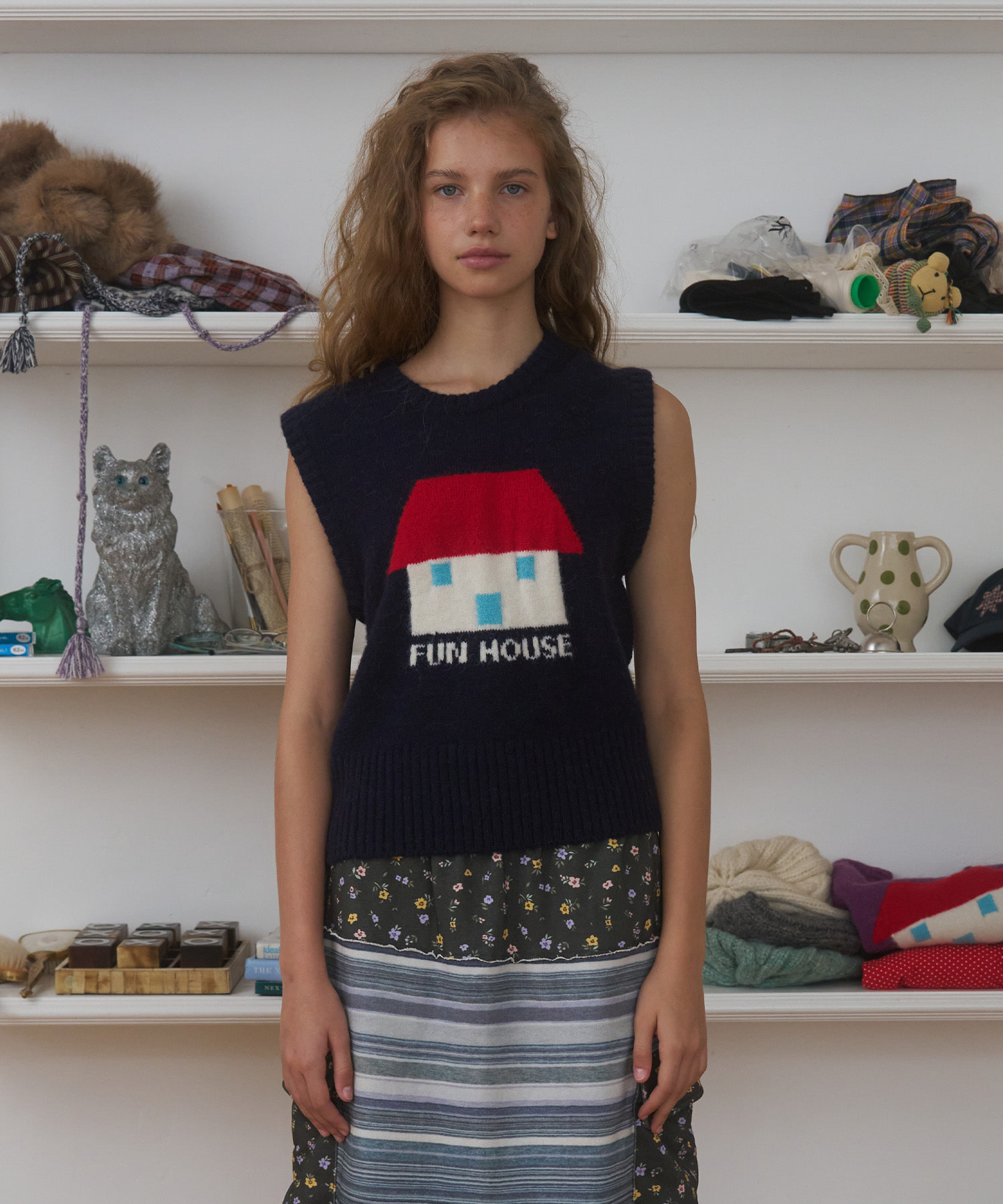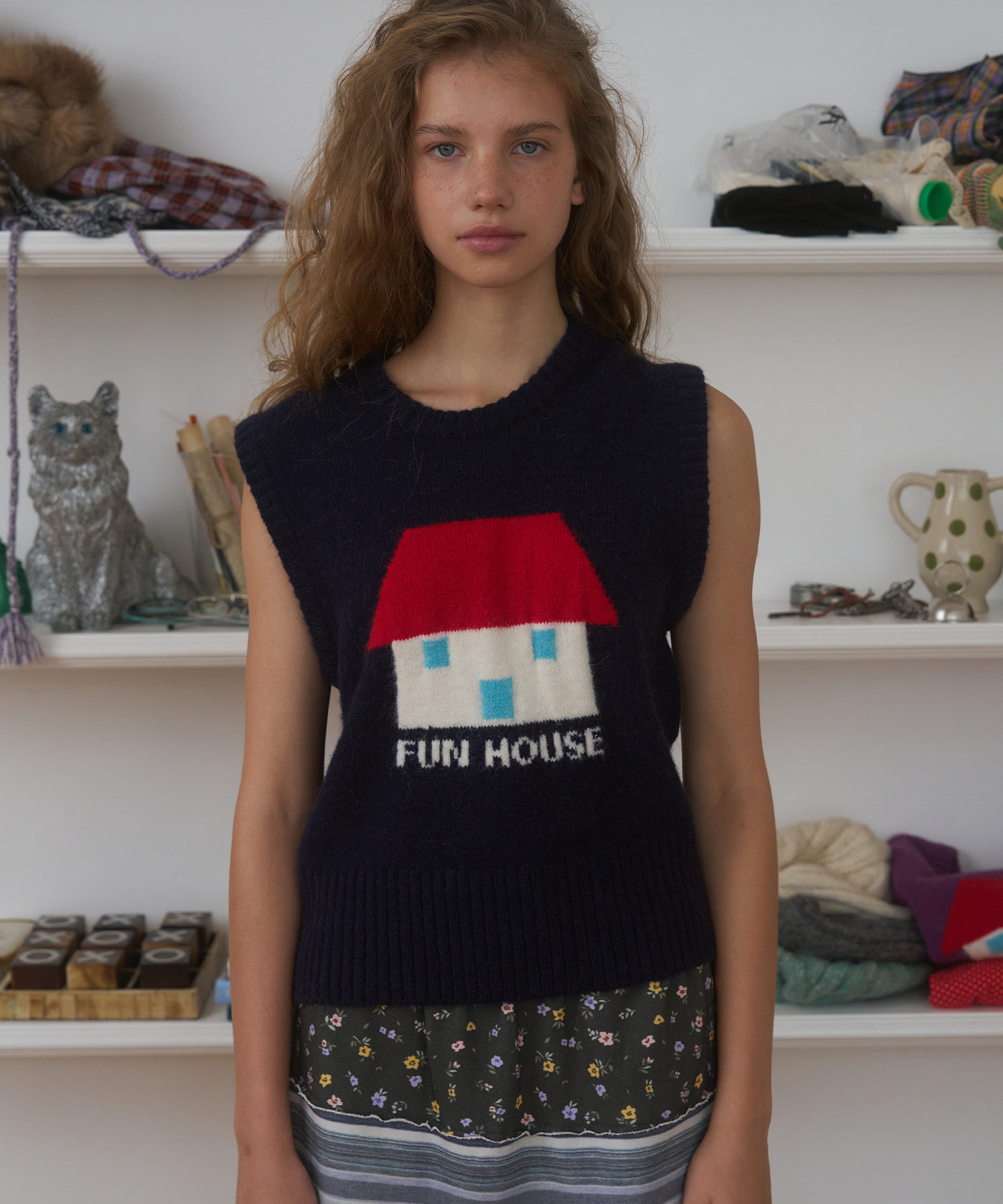 Fun House Knit Vest, Navy