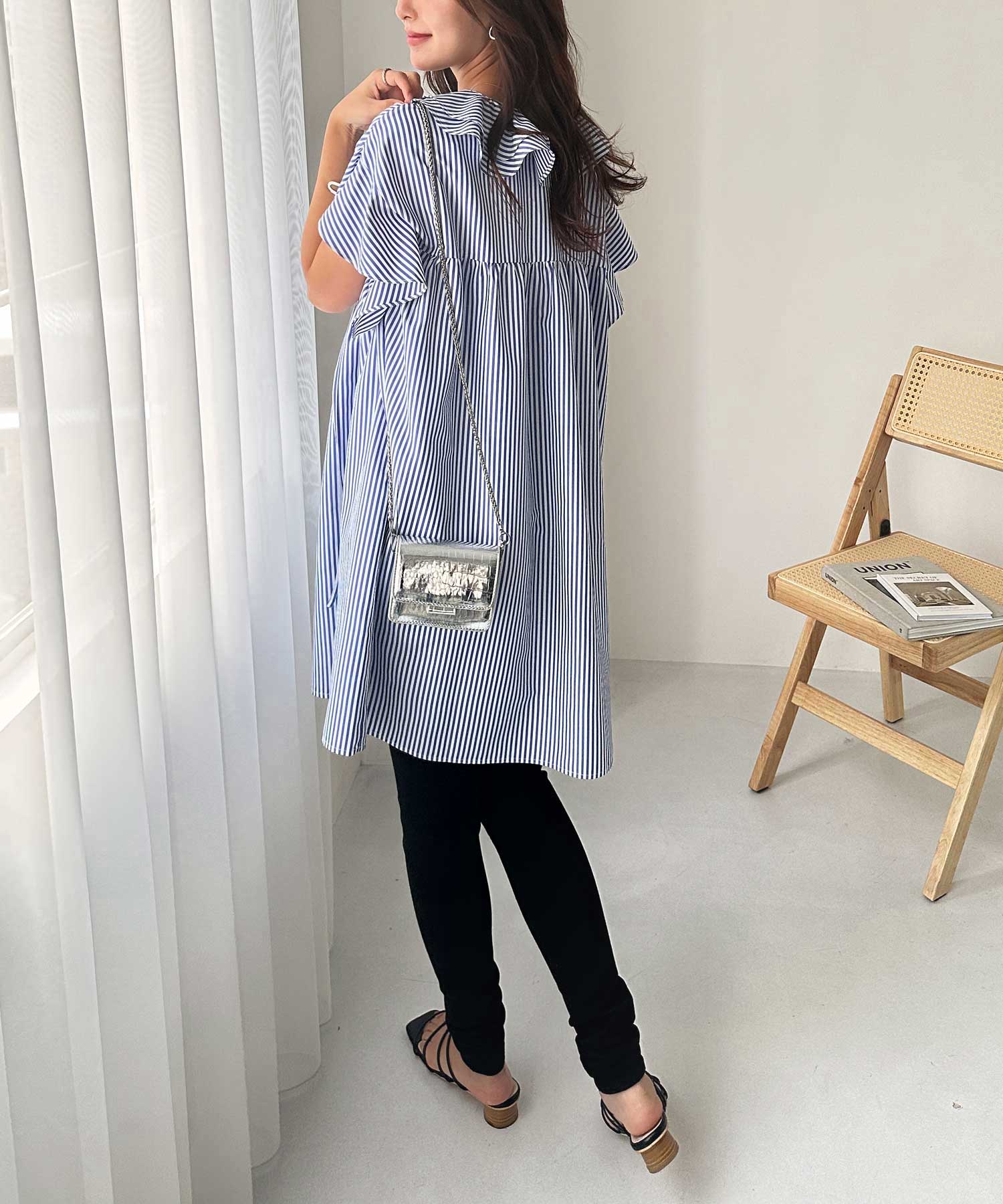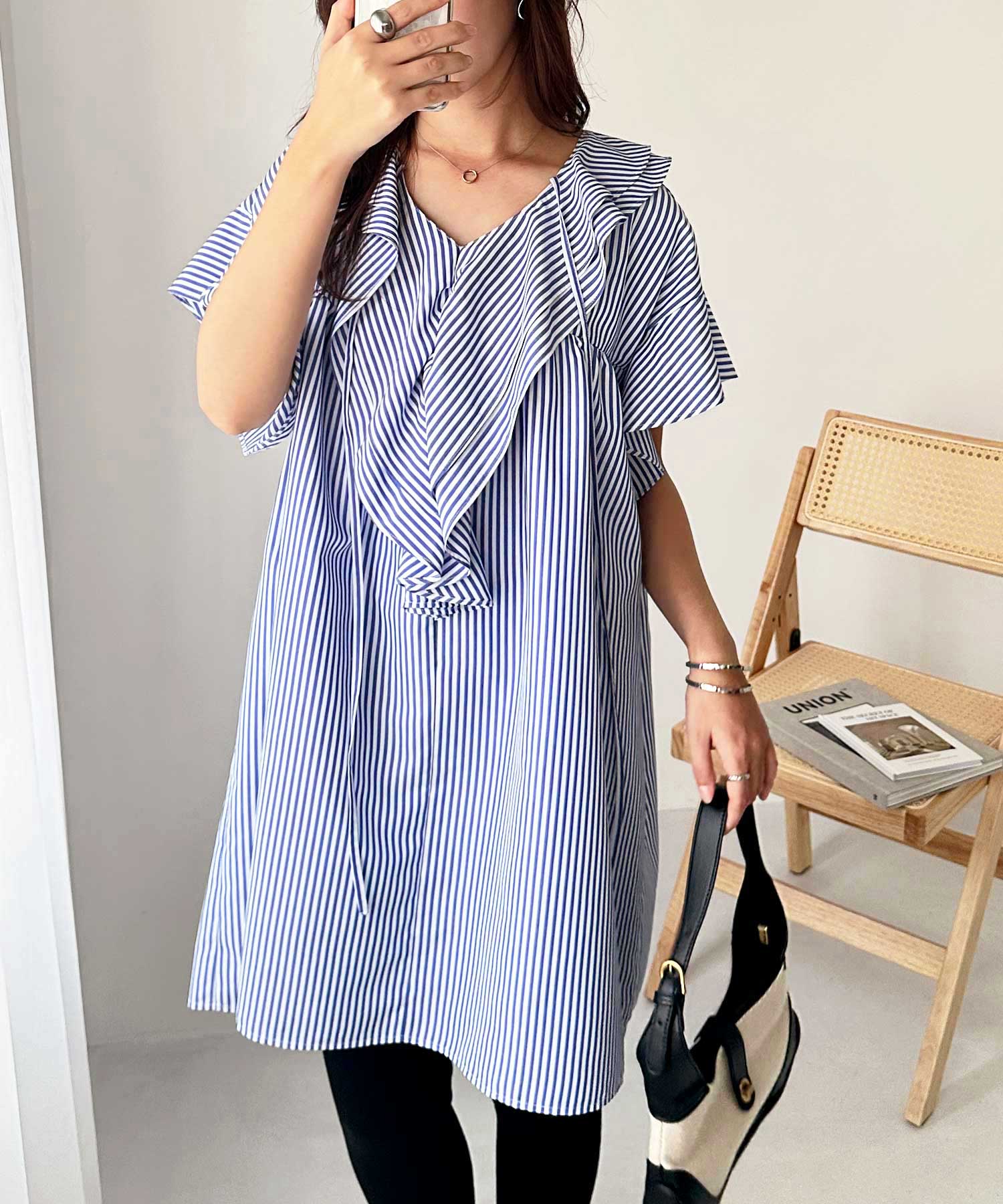 ビッグカラーフリルハーフスリーブミニワンピース