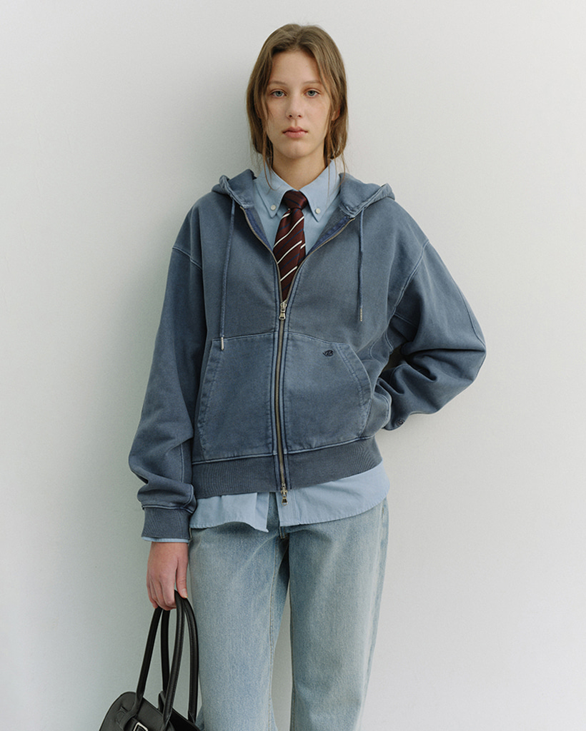 UNISEX GARMENT DYED ZIP-UP HOODIE NAVY_UDTS6A114N2
