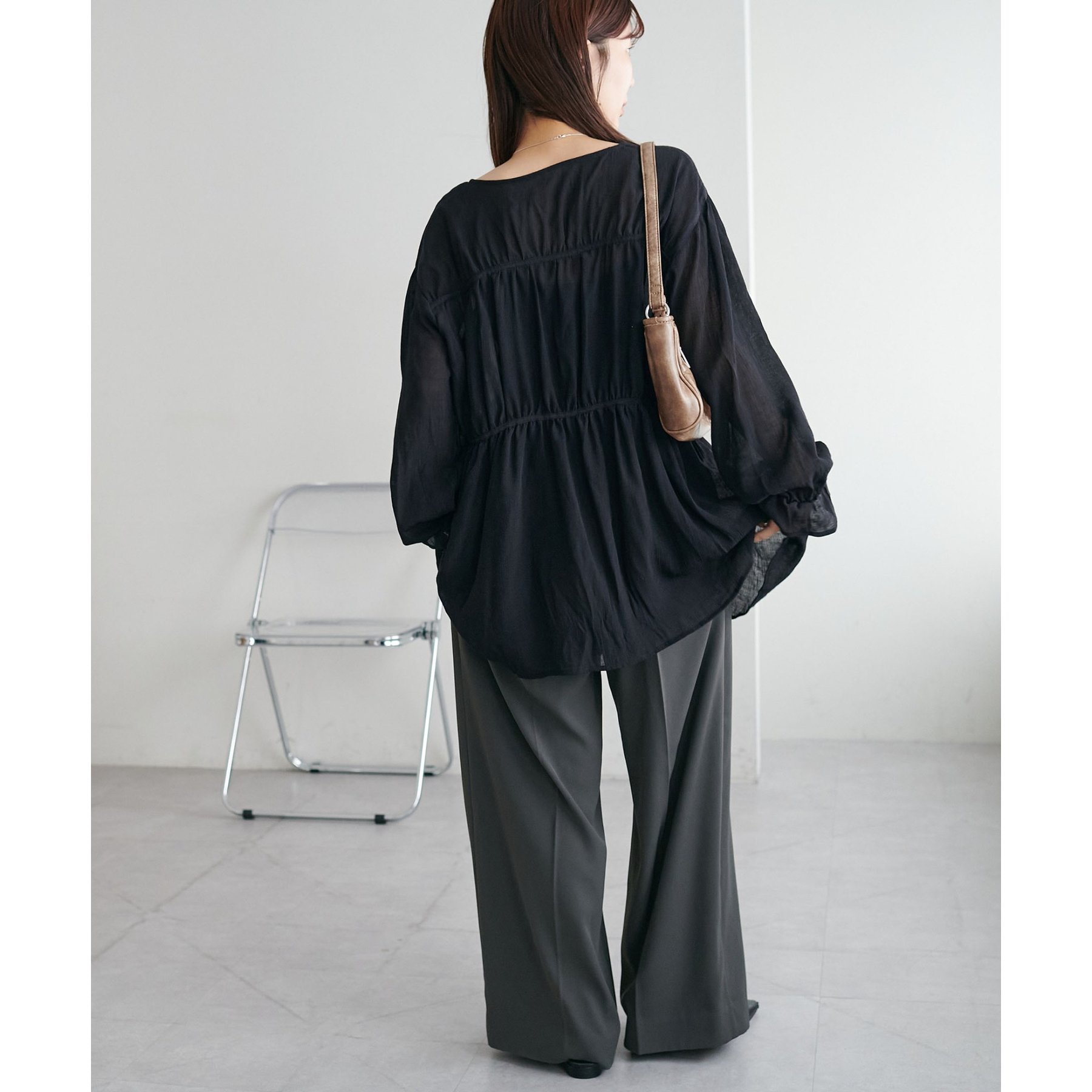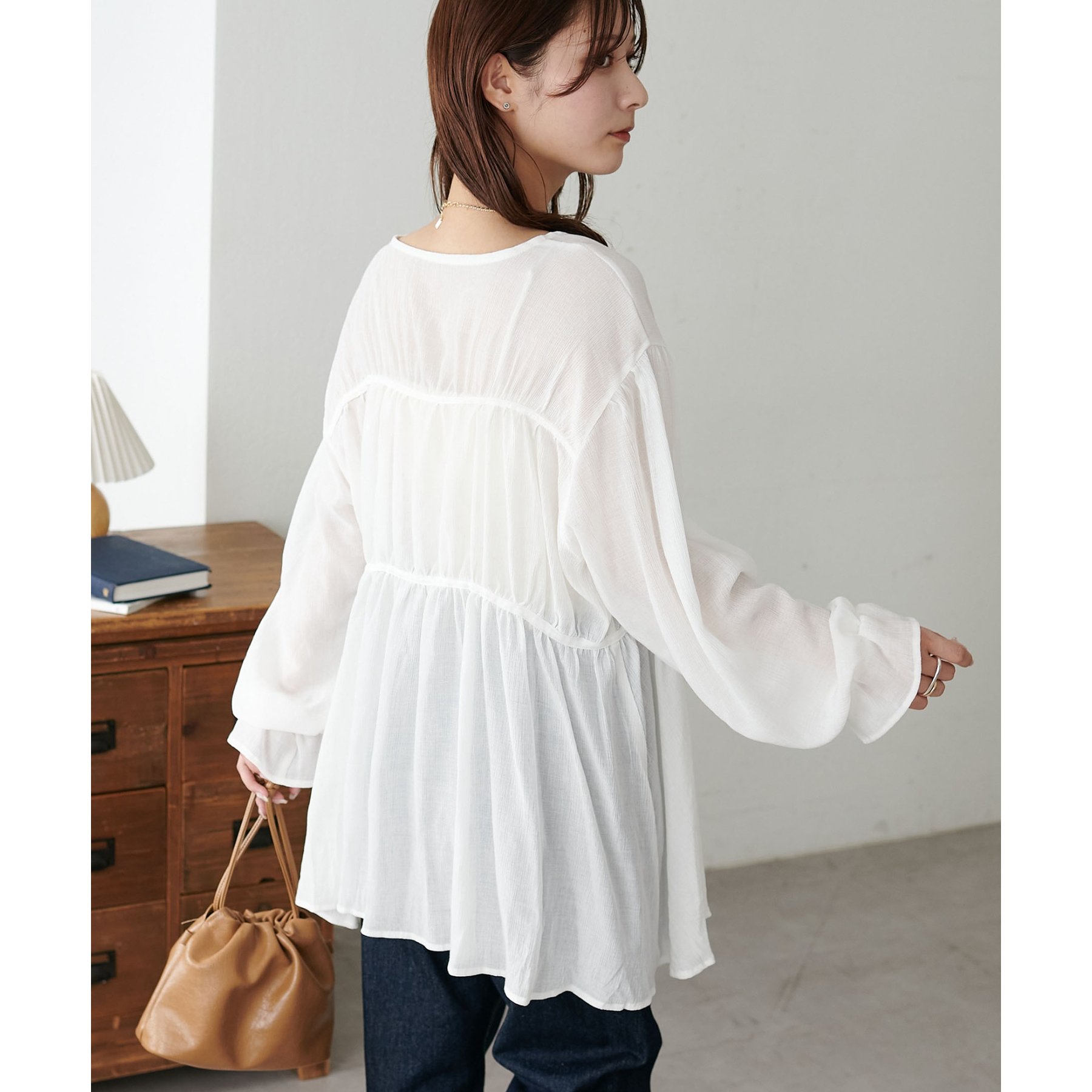 さりげない透け感と、ふんわり広がるシルエットが魅力のブラウス♪