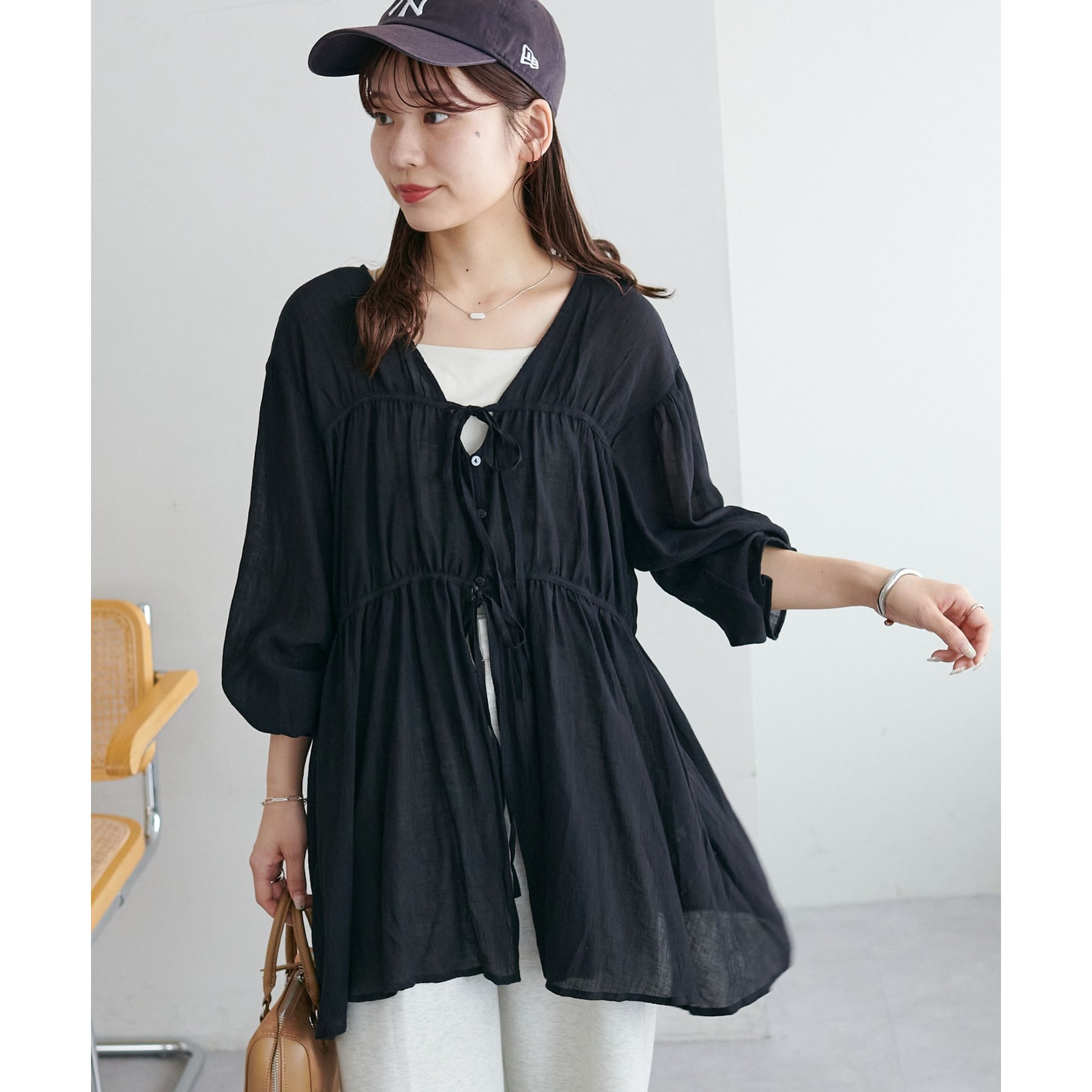 ・軽やかな素材でさっと羽織るだけで抜け感のあるコーデに
