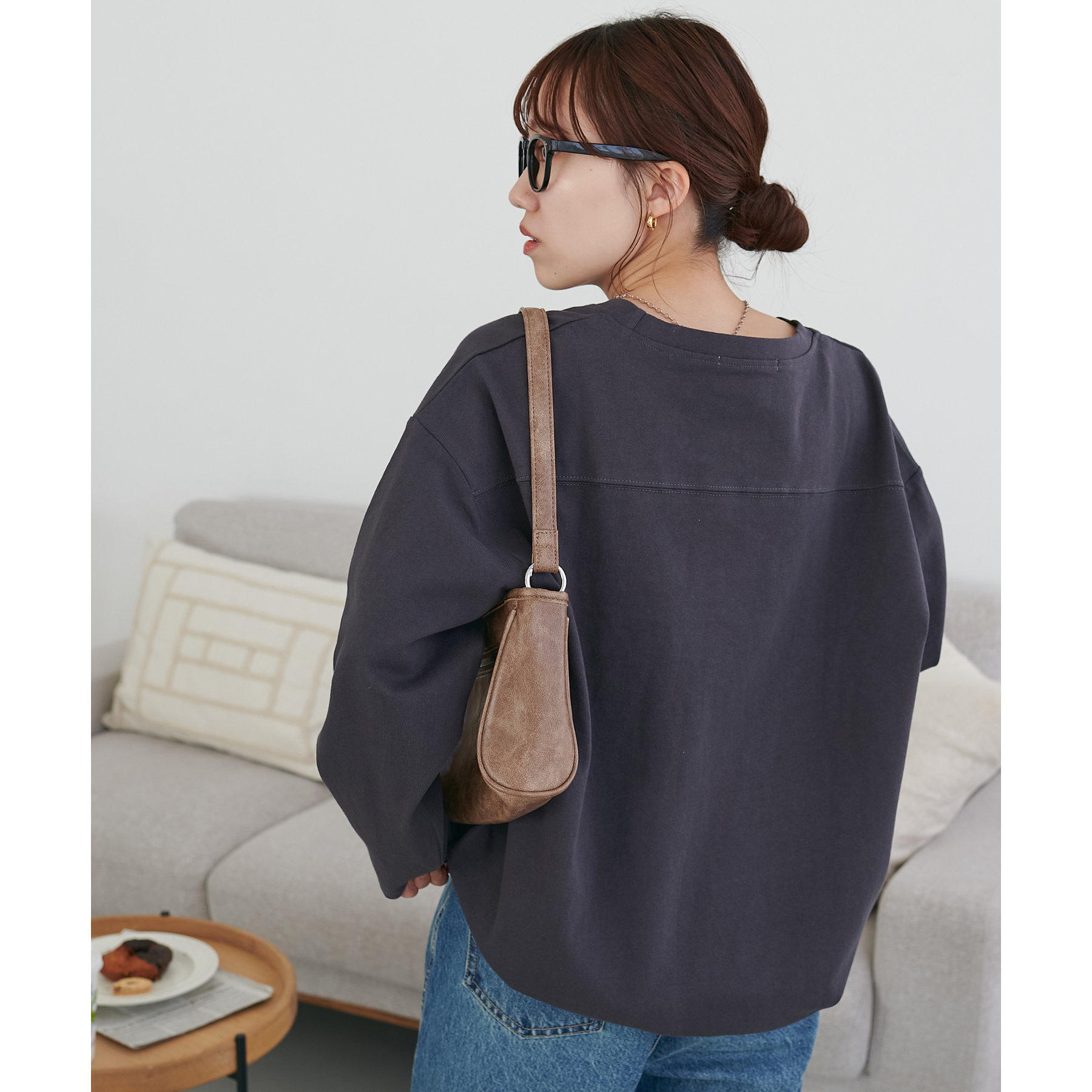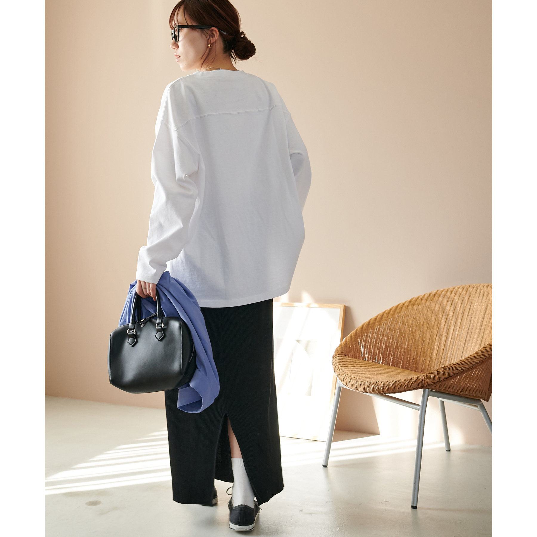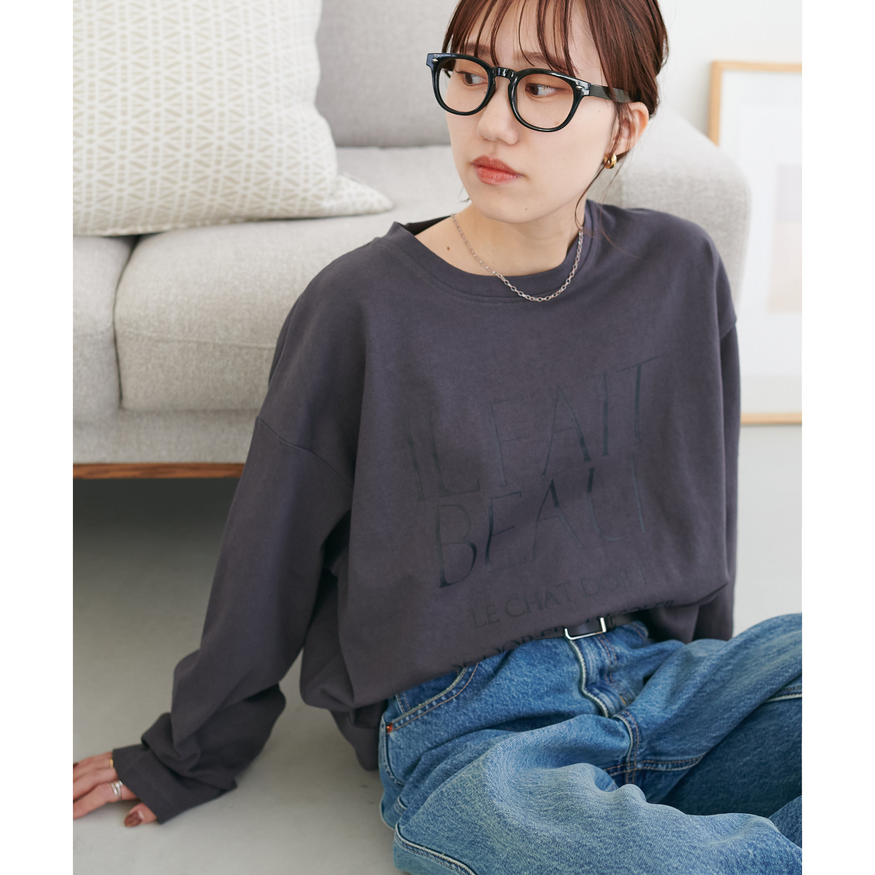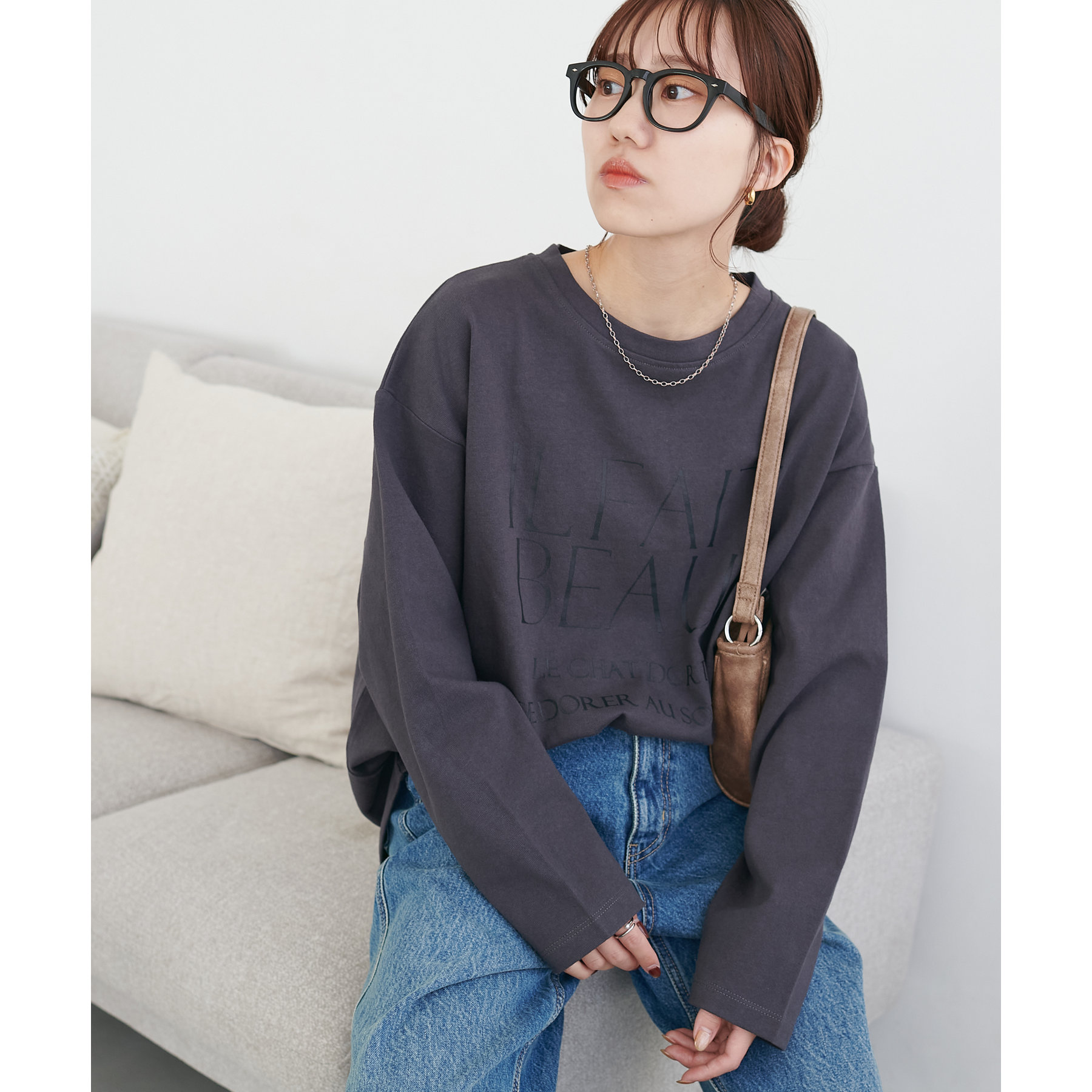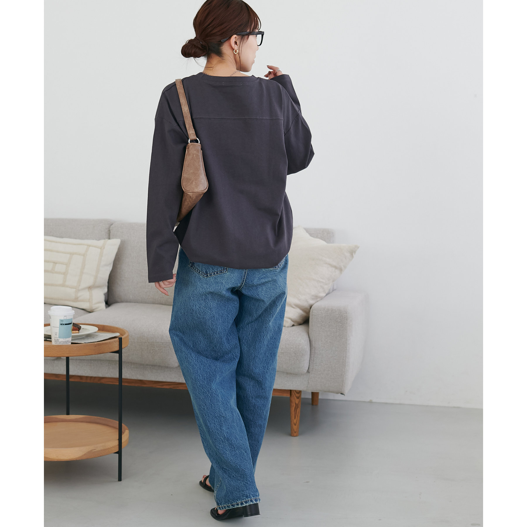 袖や身幅にゆとりがあるので、ロンT特有のぴったり感がなく、リラックスして着られます。