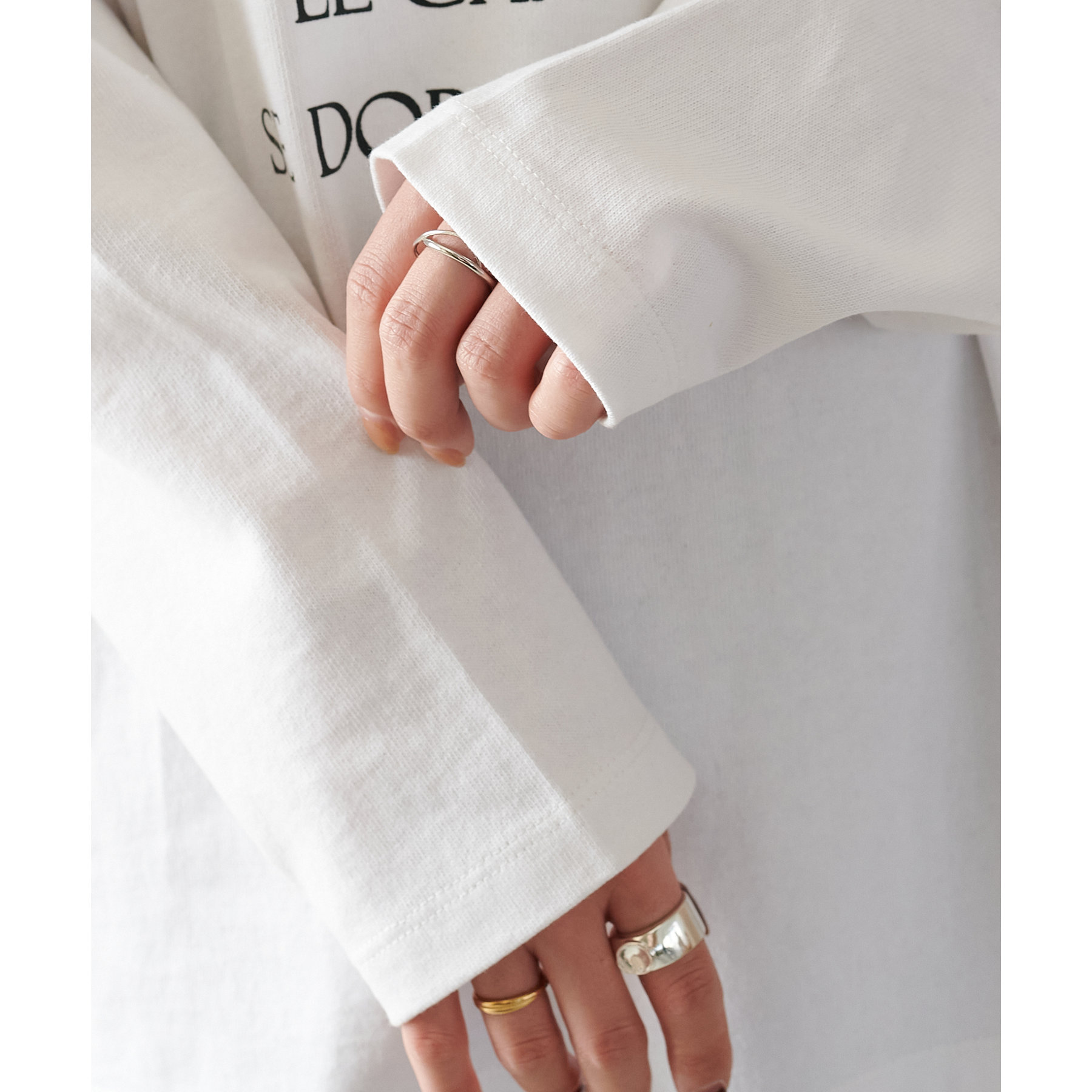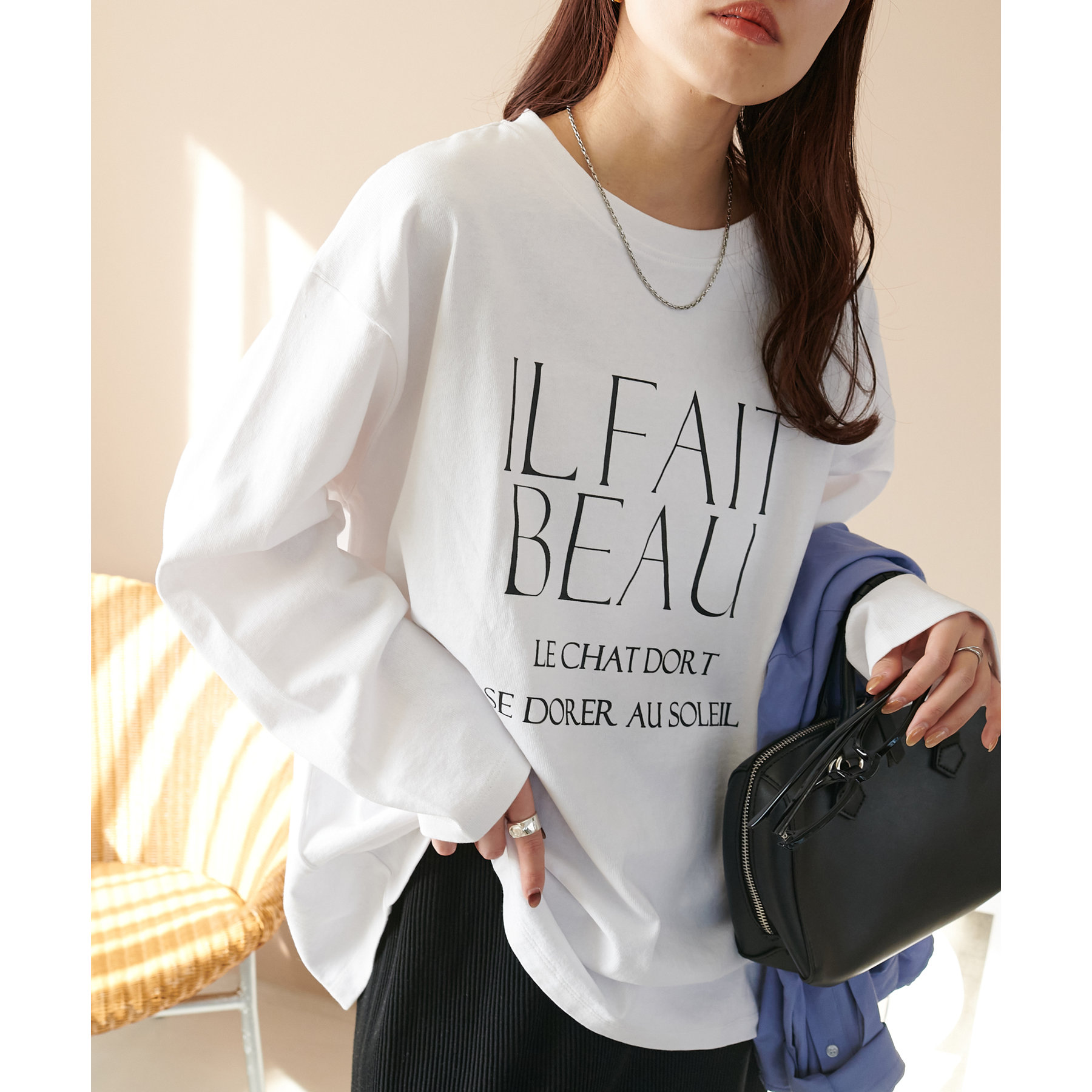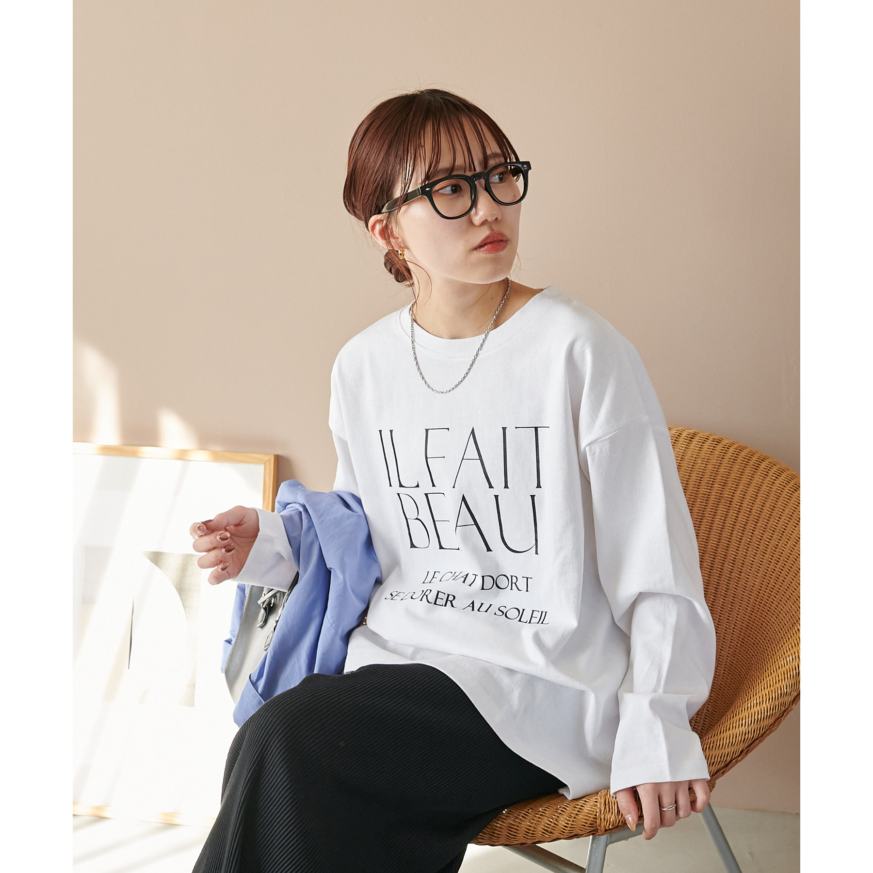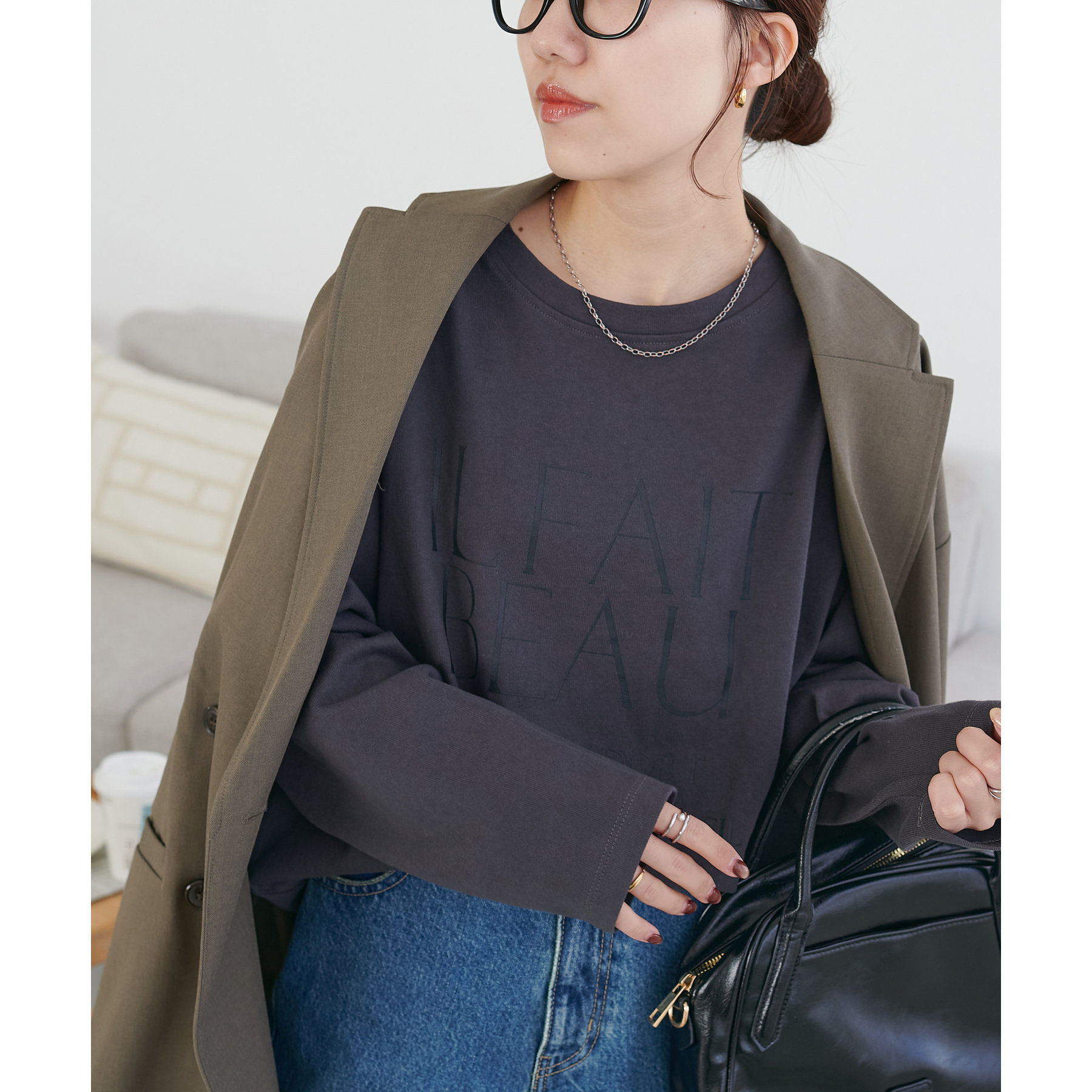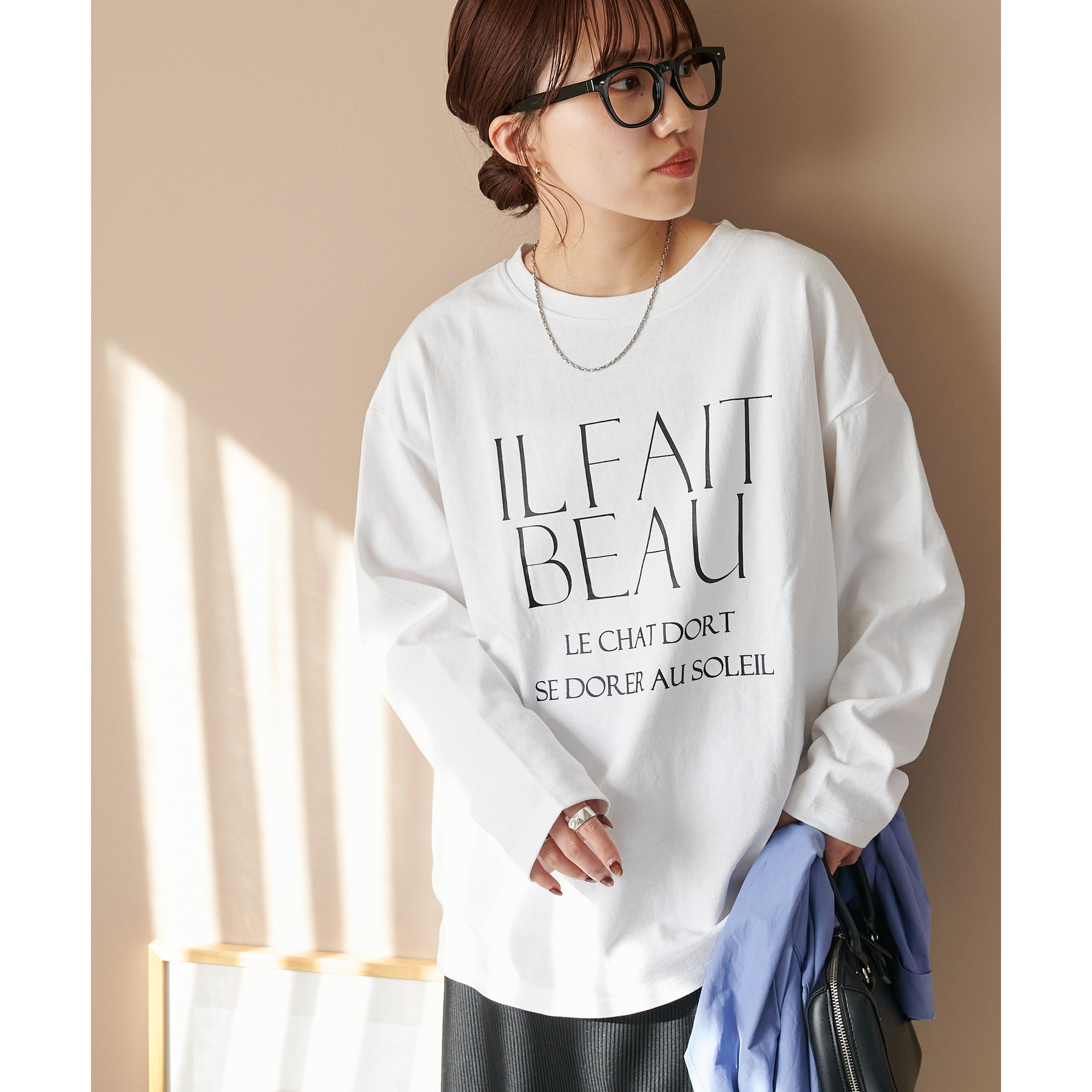 袖や身幅にゆとりがあるので、ロンT特有のぴったり感がなく、リラックスして着られます。