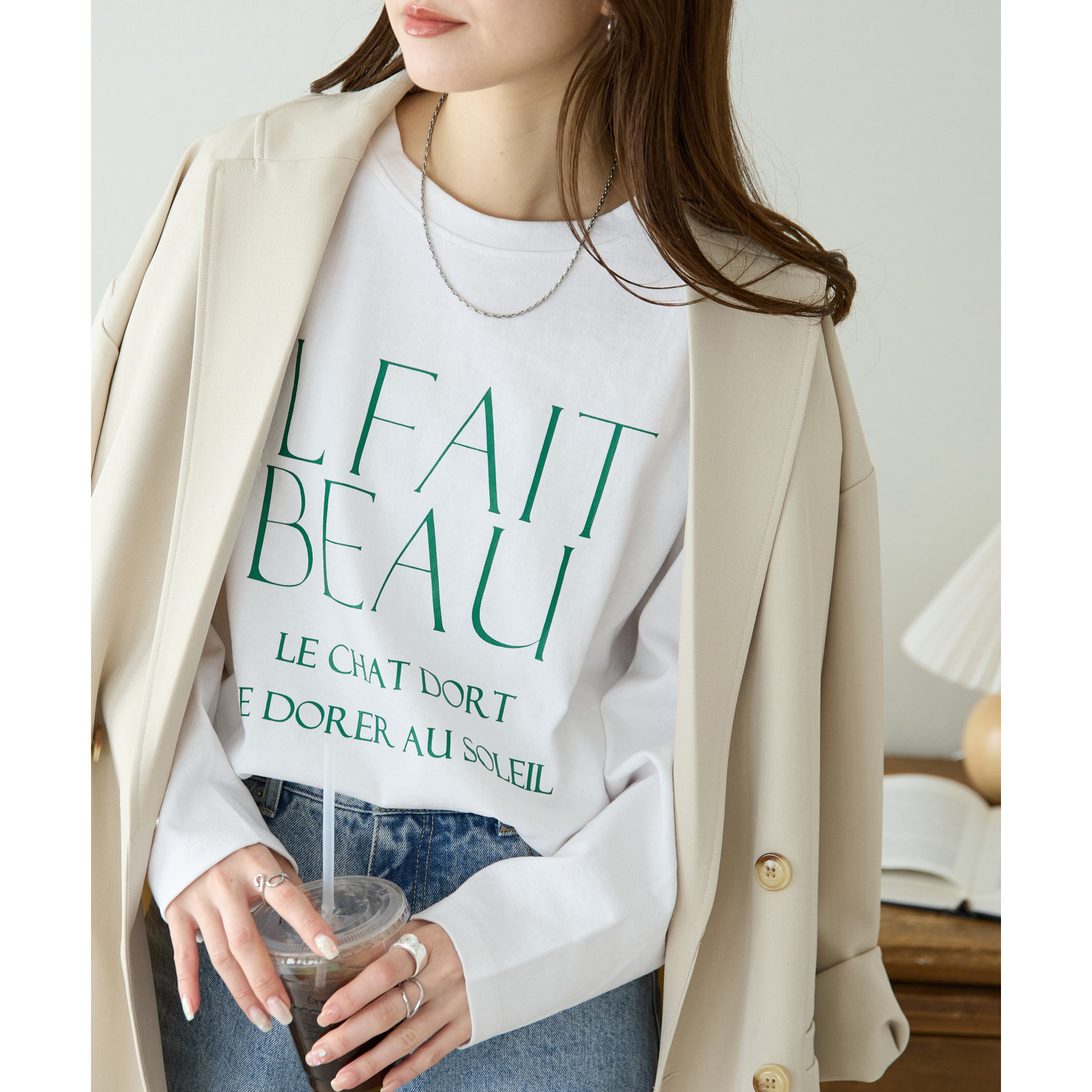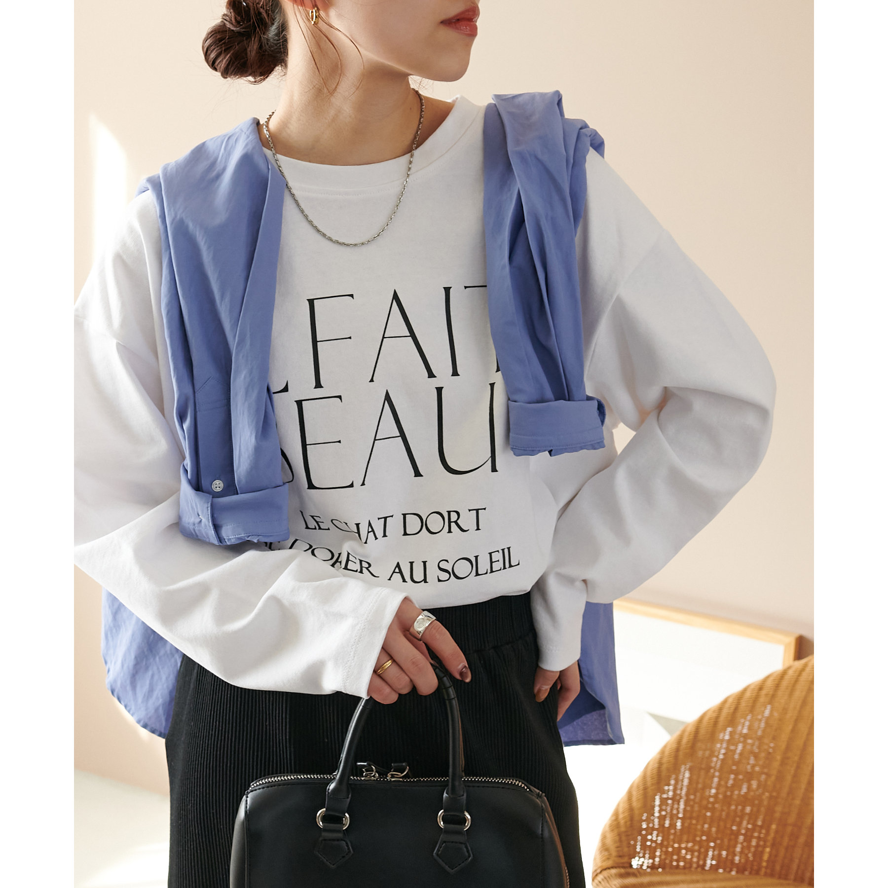 ジャケットやカーディガンのインナーとしても映える万能ロンTです。
