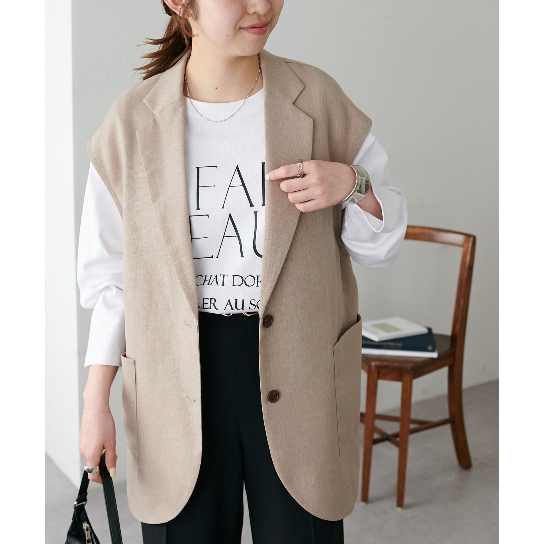 程よいゆとりのあるシルエットで、リラックス感がありながらもラフすぎない印象に。