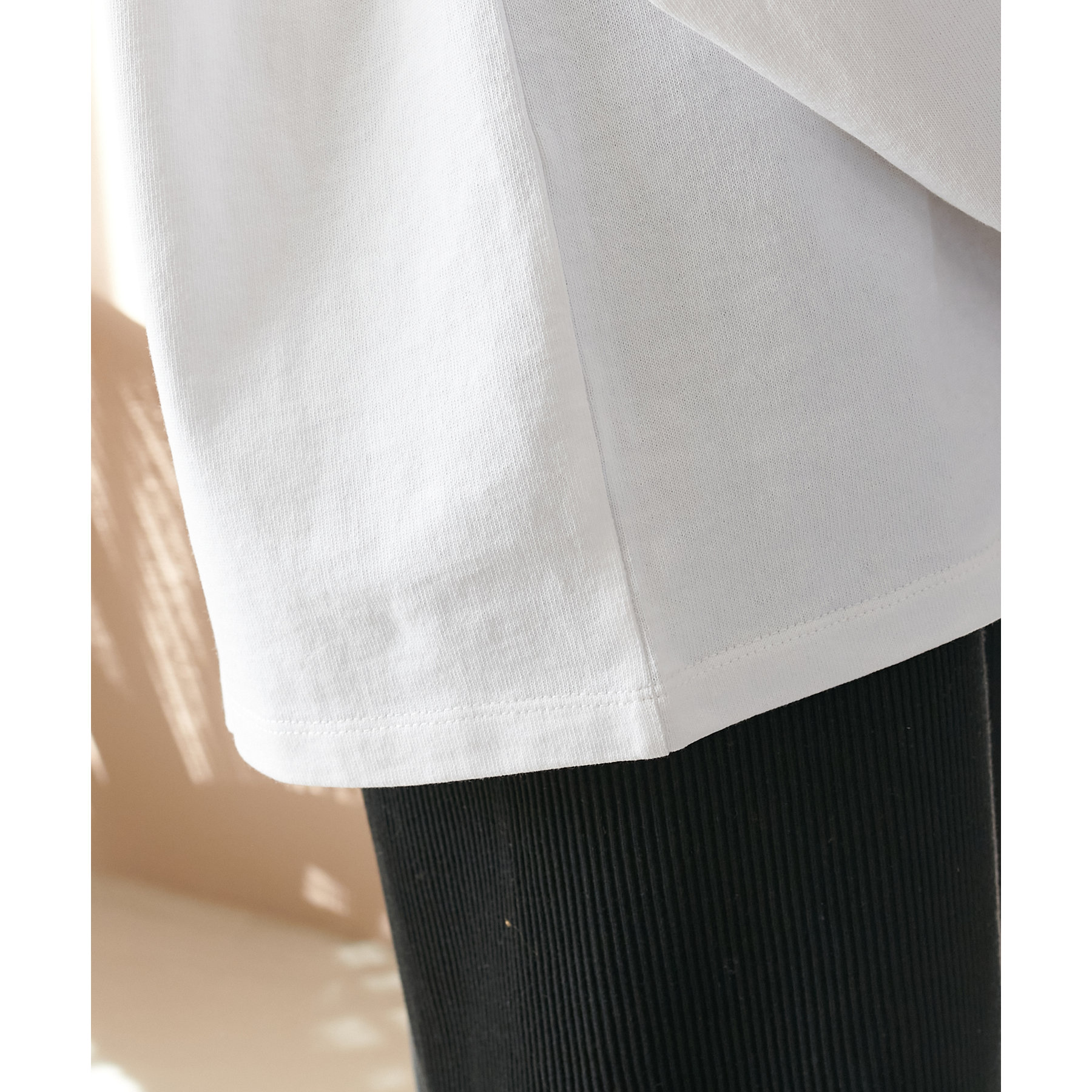 柔らかな素材感で肌あたりが良く、1枚でも快適な着心地。