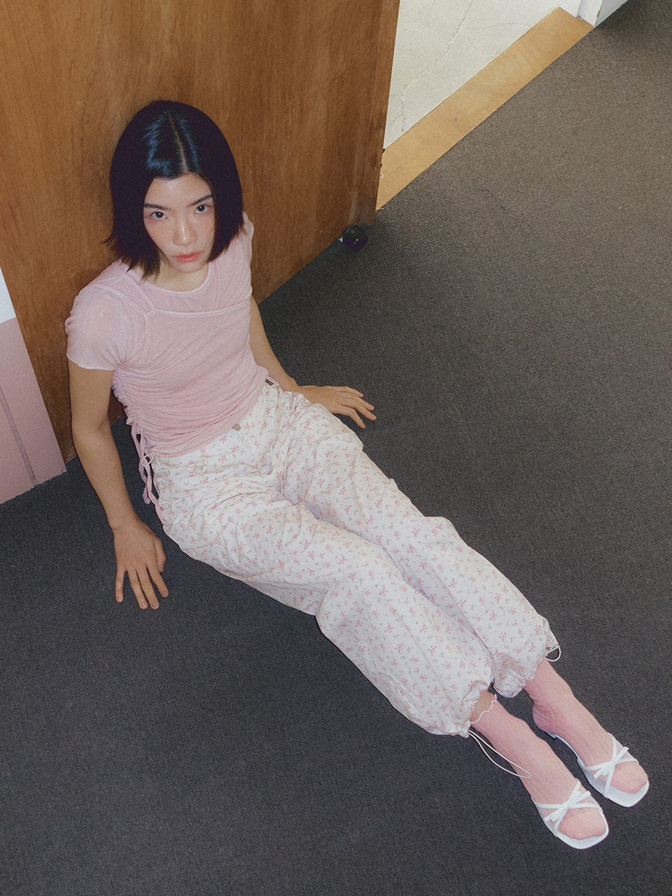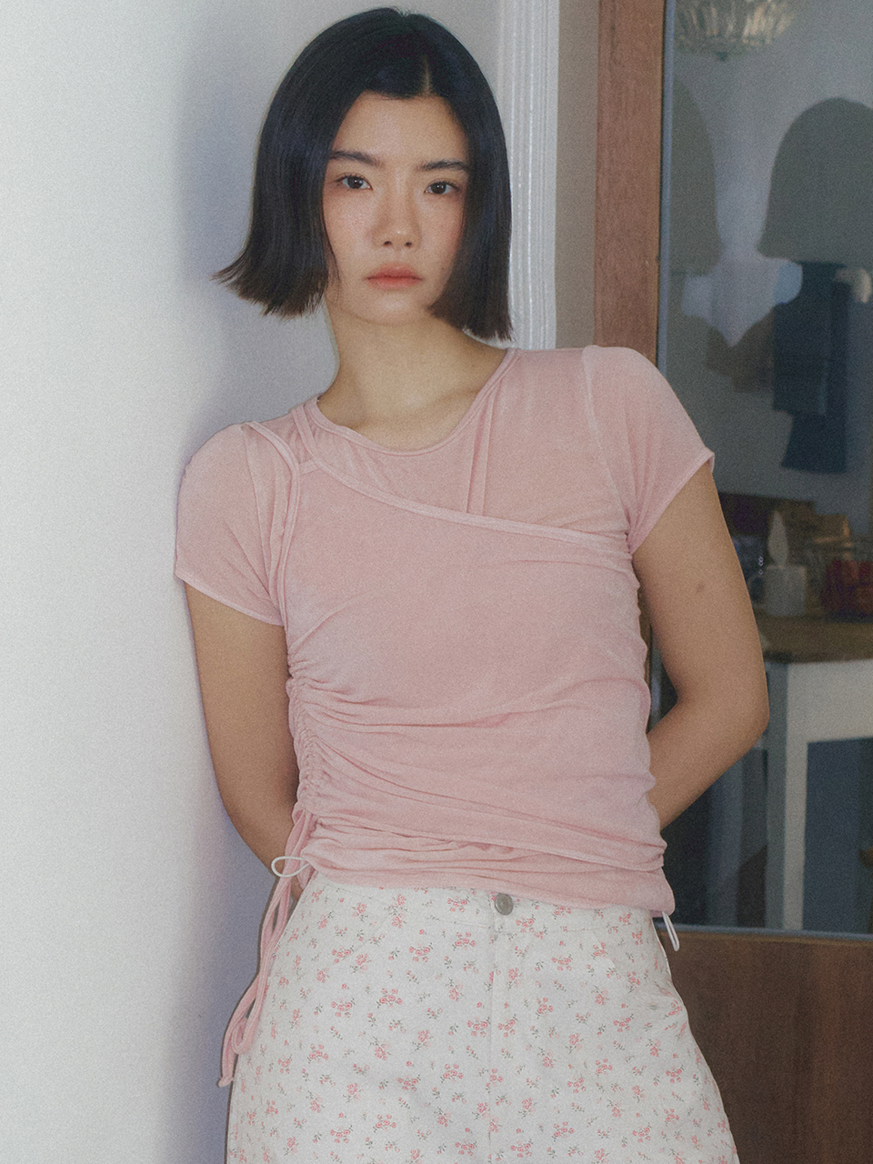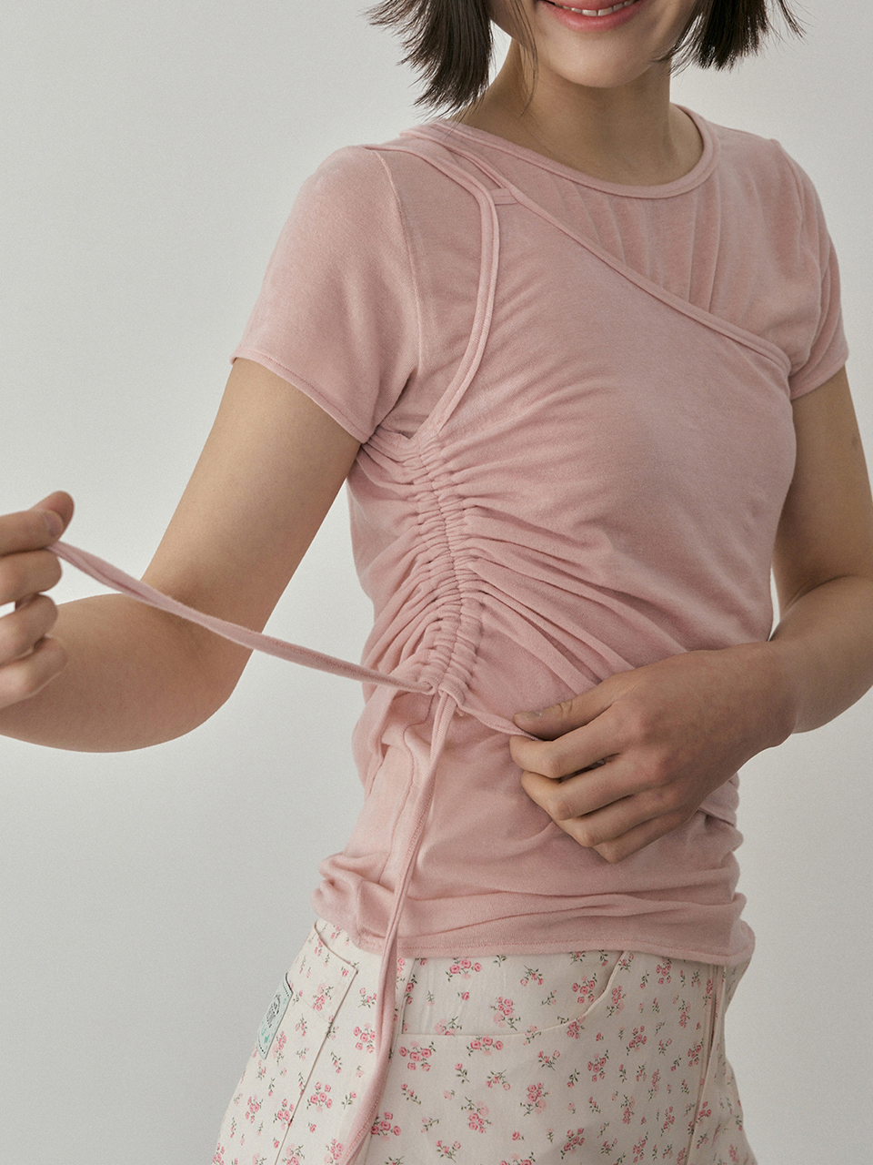 ASP SHIRRING SLEEVELESS WITH T-SHIRTS BABY PINK